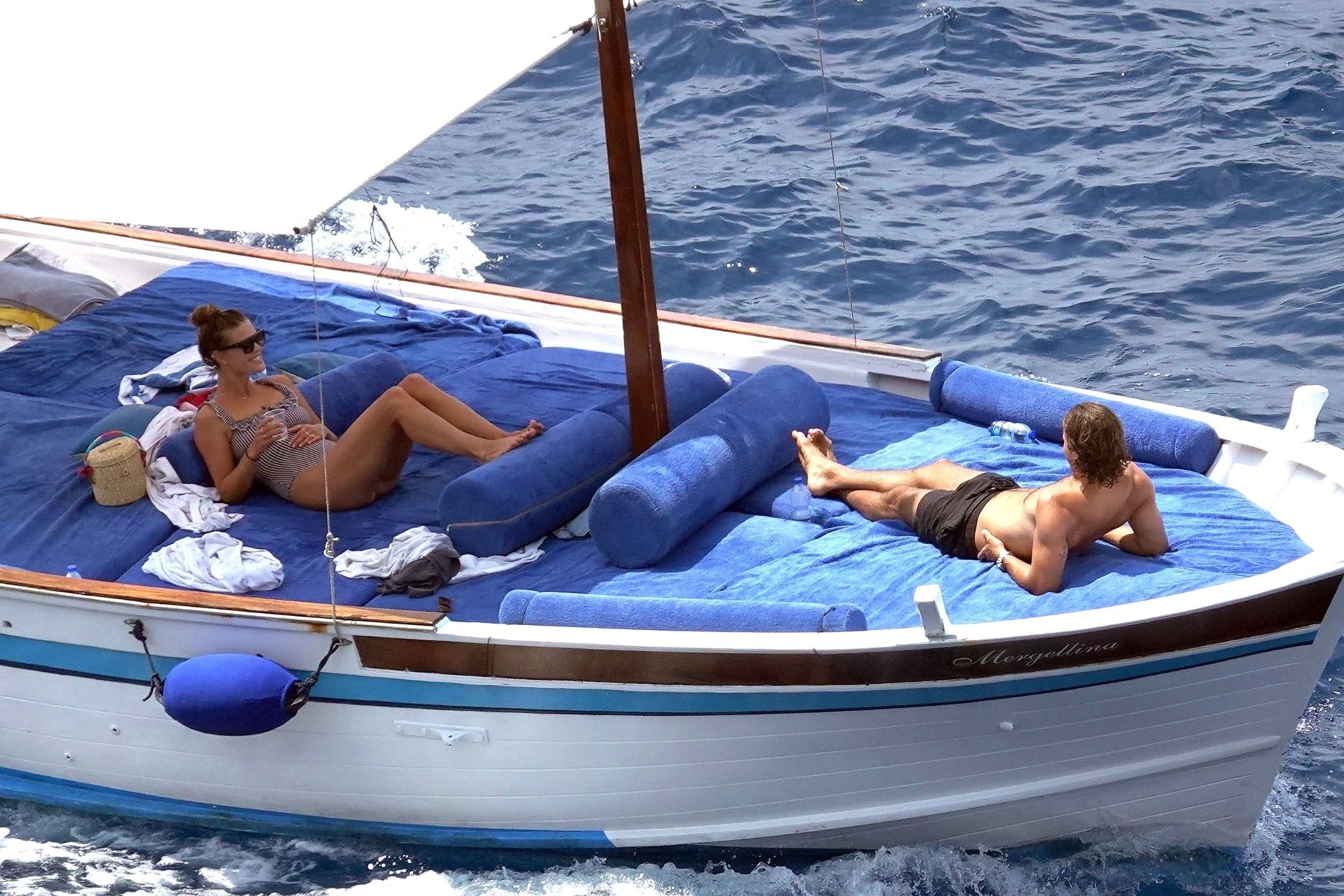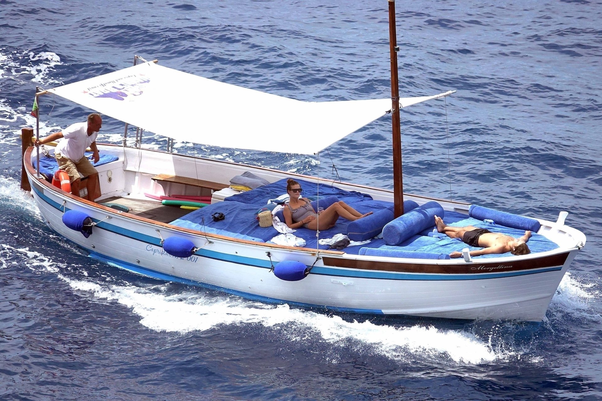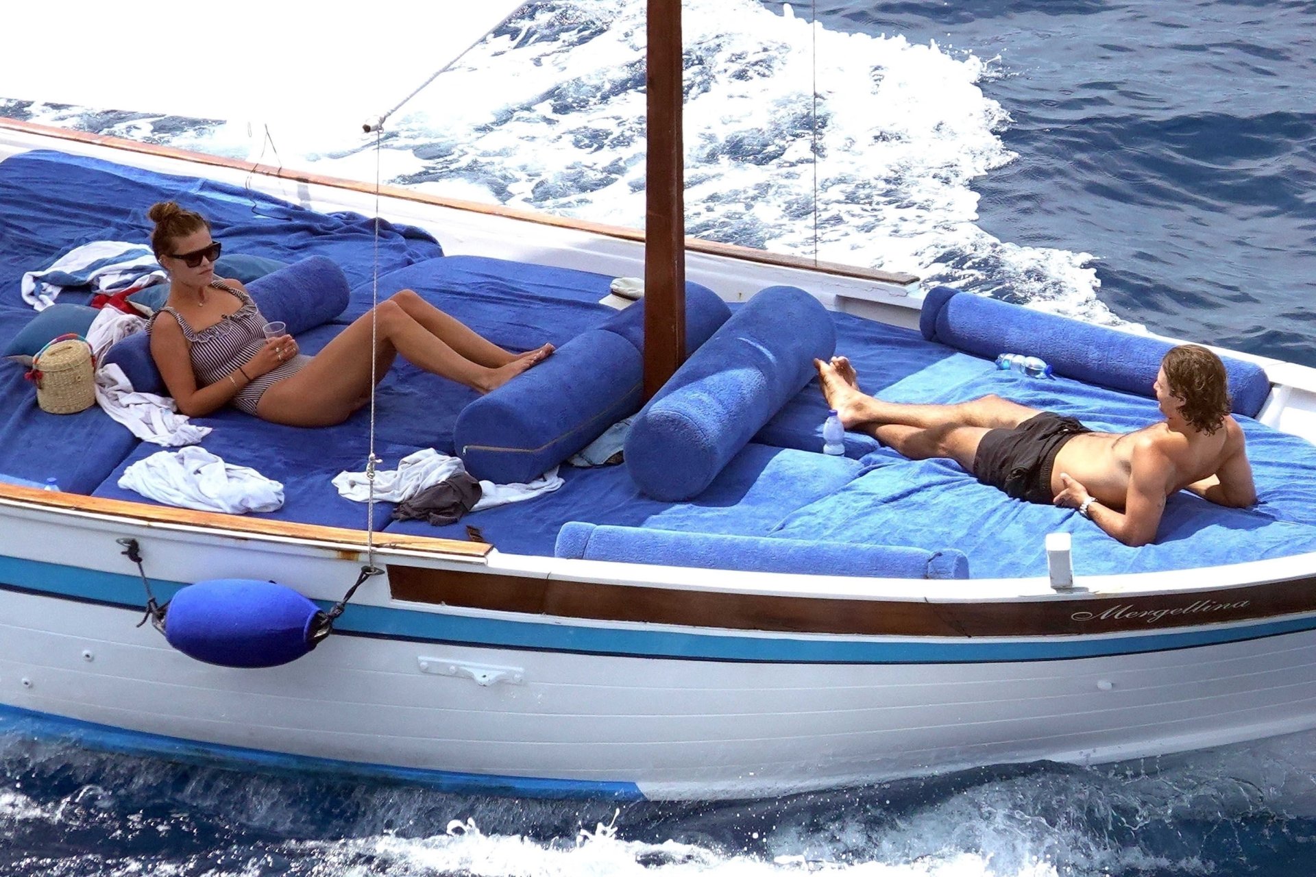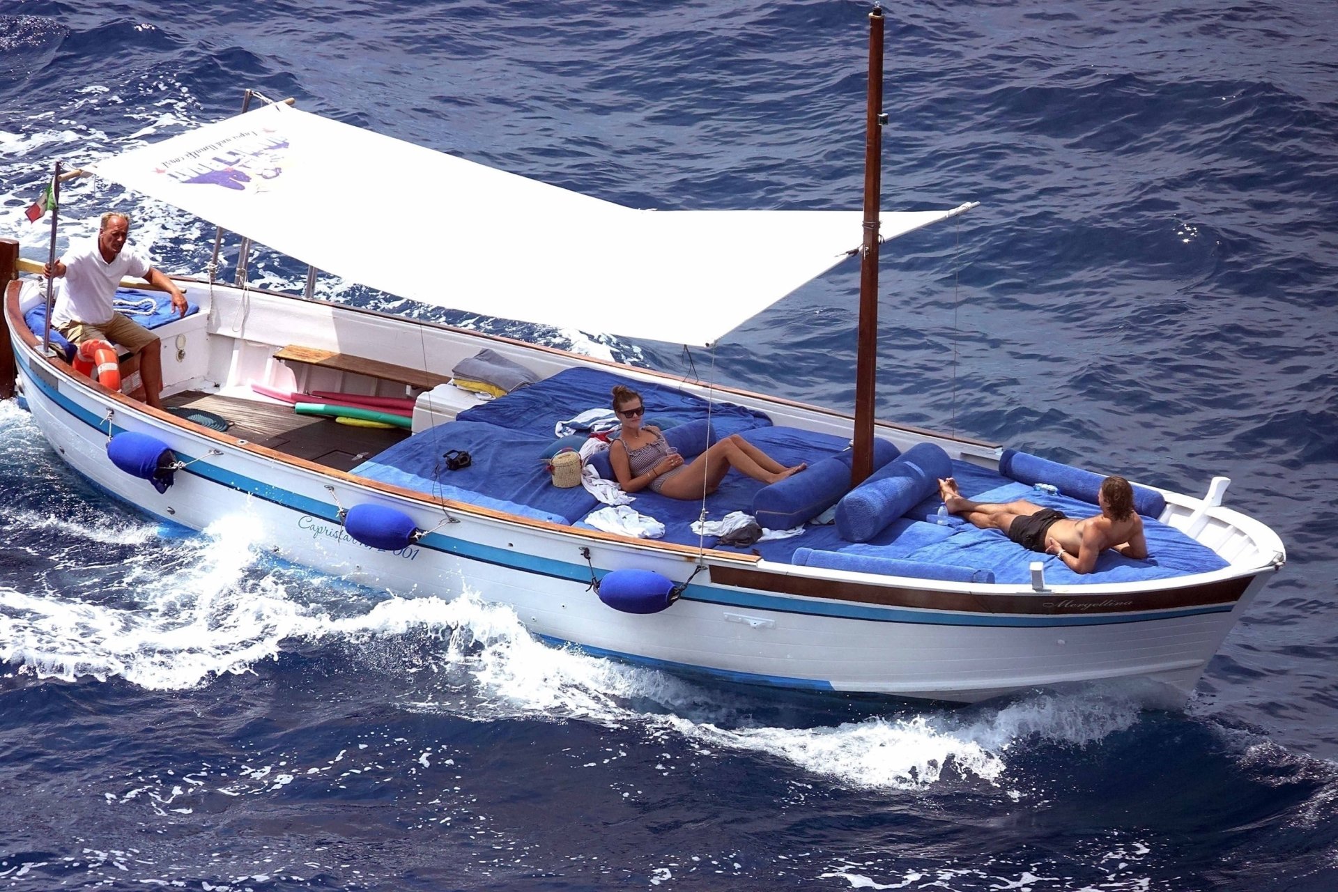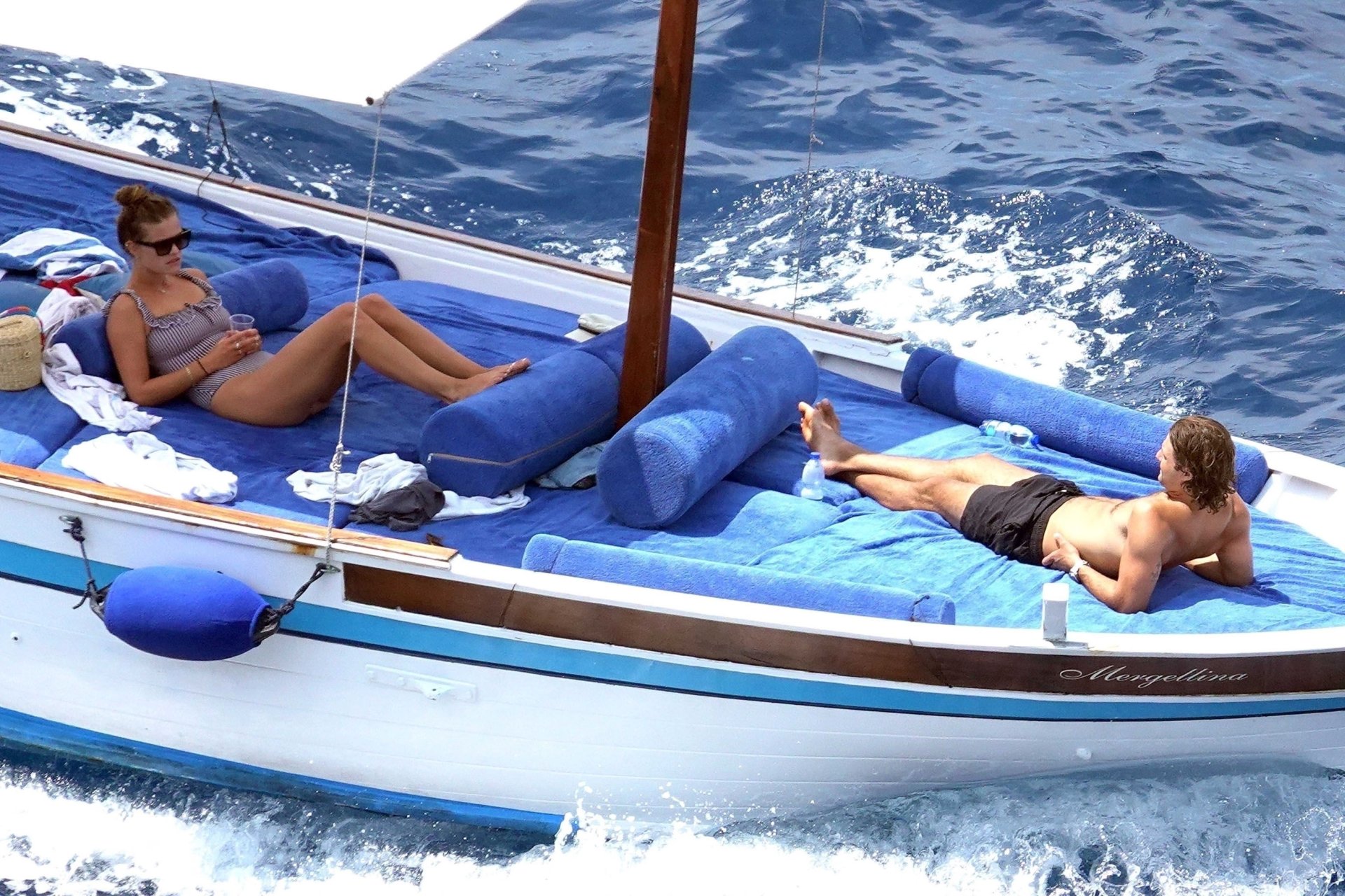 Датская модель Нина Агдал (26) прижимается к своему парню, сыну Кристи Бринкли — Джеку Бринкли-Куку. Влюбленная пара отдыхает на своей лодке, наслаждаясь итальянским солнцем на Капри.