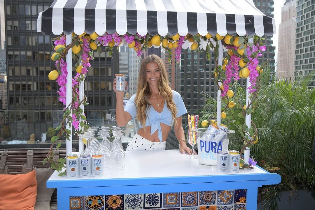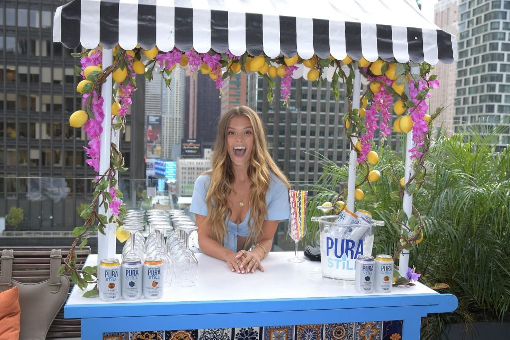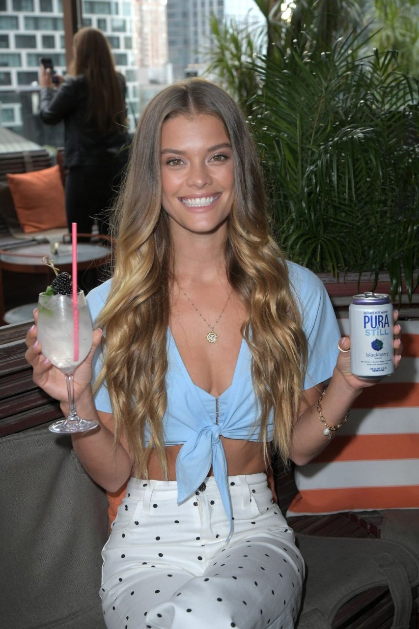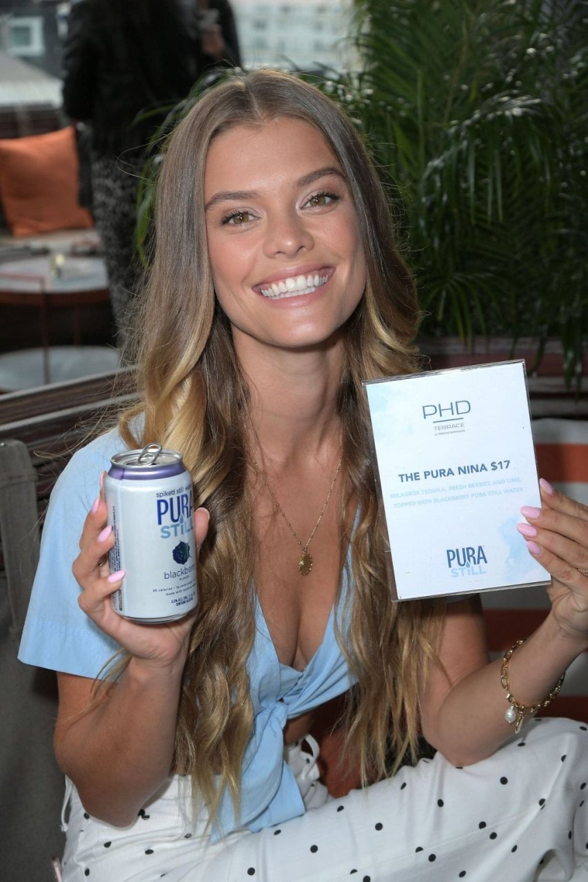 Nina Agdal была замечена на мероприятии Sip on Summer with Pura Still в Нью-Йорке, 27.08.2019. Известная модель продемонстрировала своё декольте, позируя в синем топе.