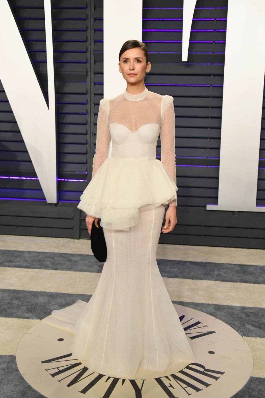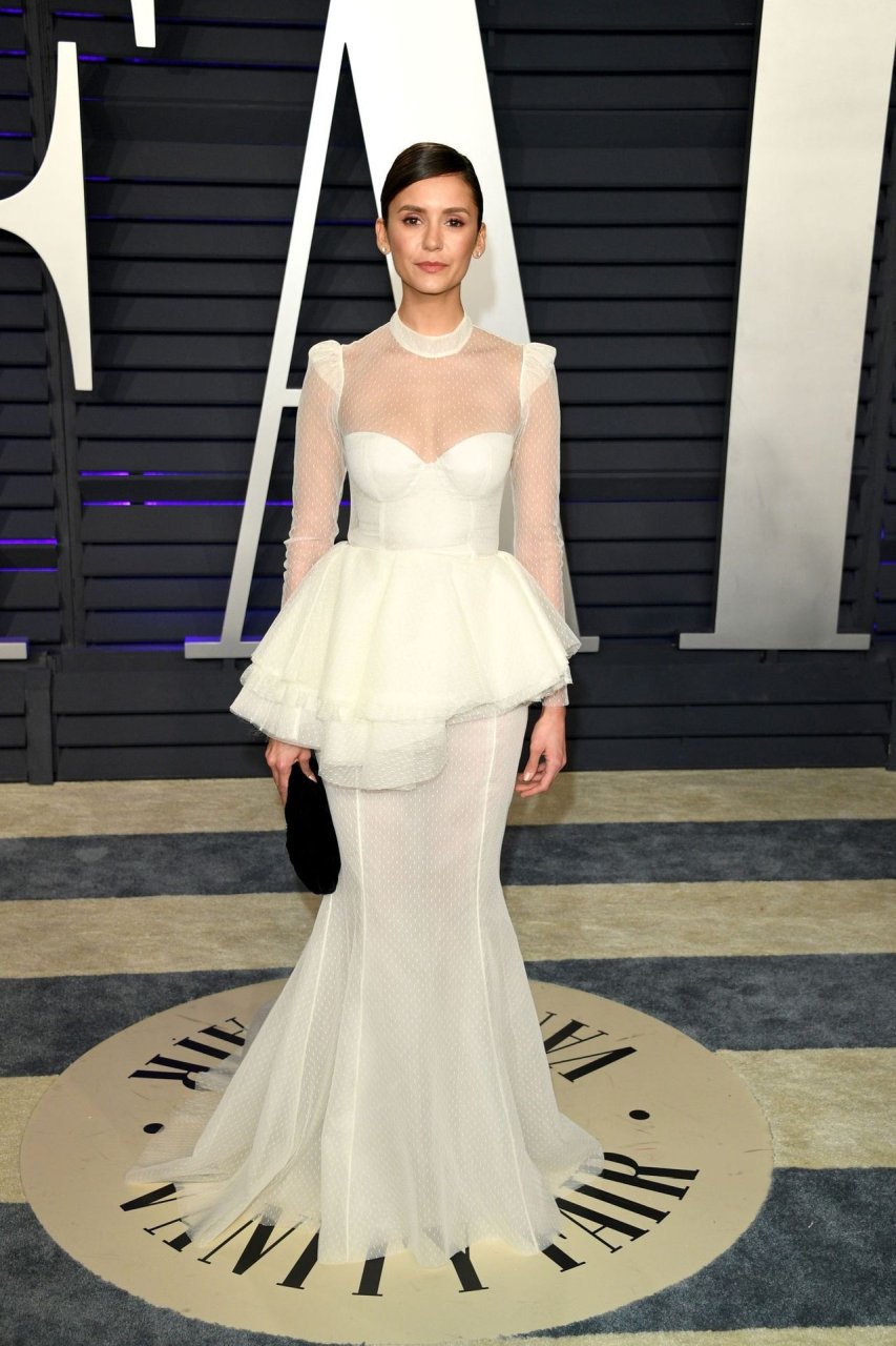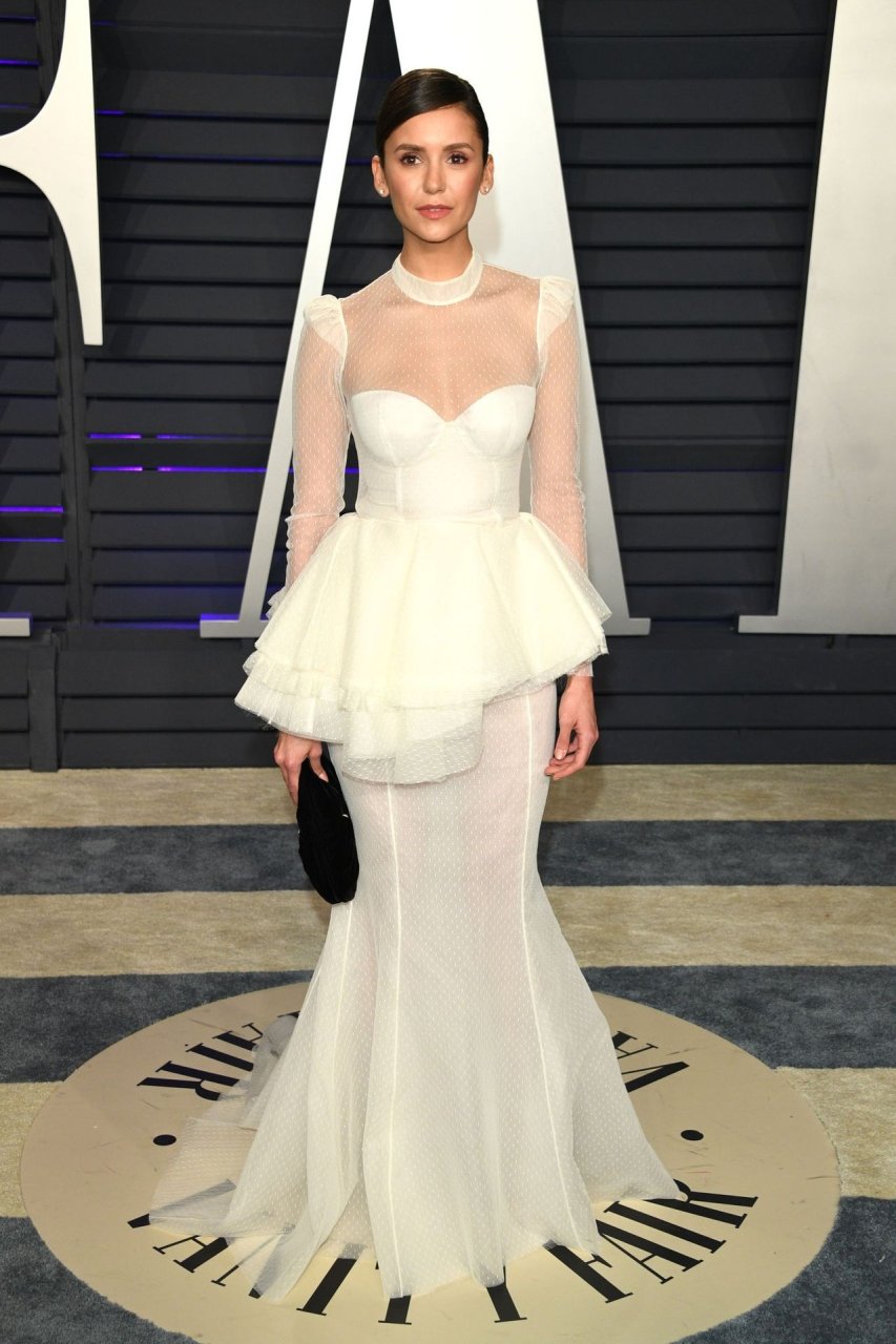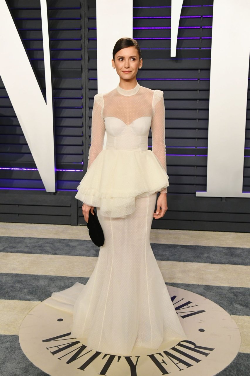 Nina Dobrev посещает вечеринку Vanity Fair Oscar Party 2019 в Беверли-Хиллз, 24.02.2019. 30-летняя канадская актриса сделала ставку на белый цвет платья.