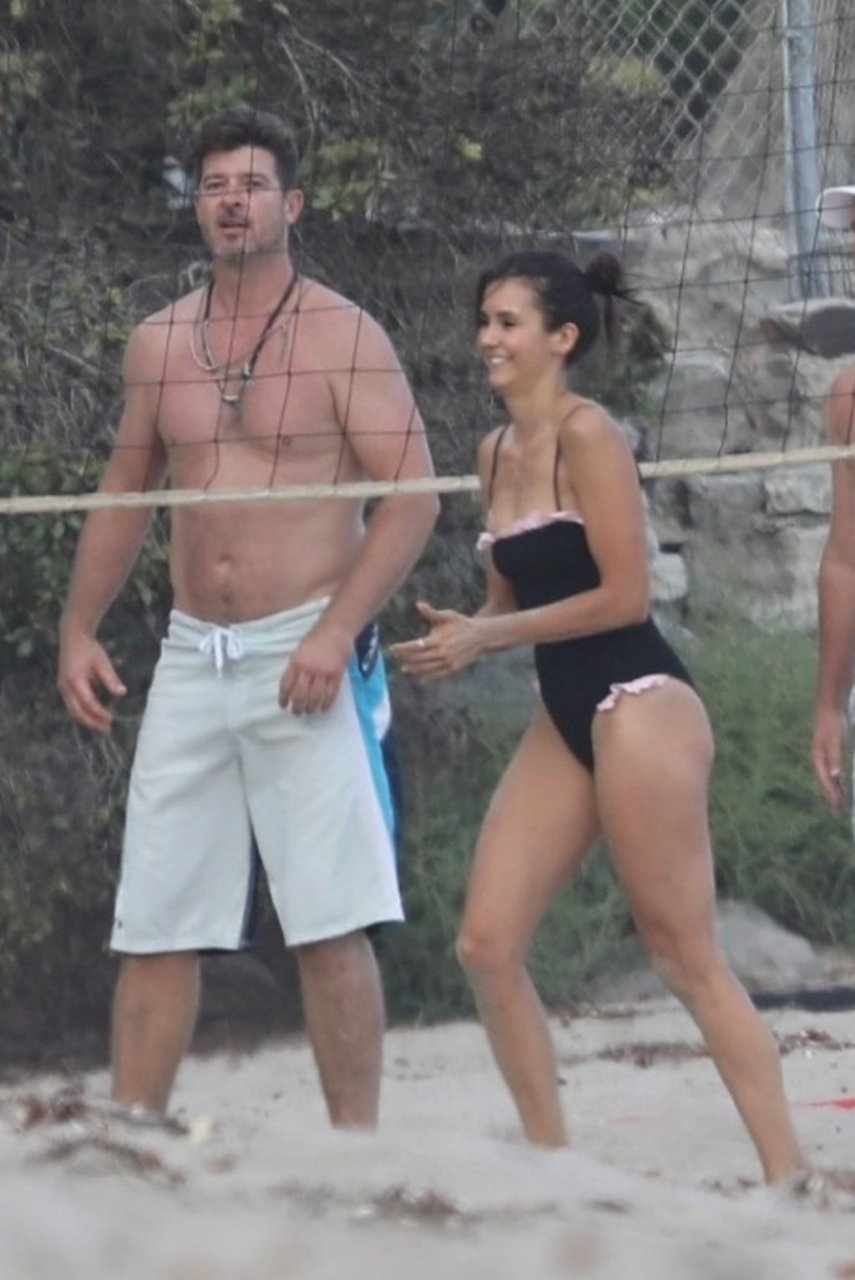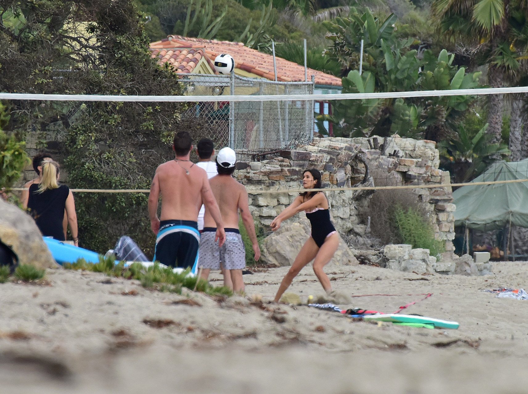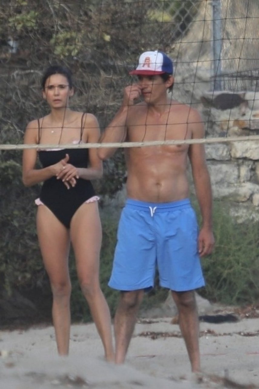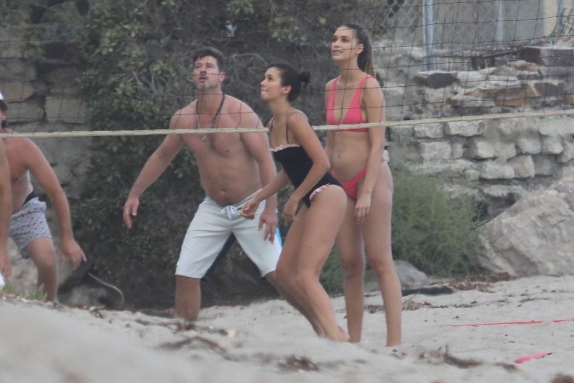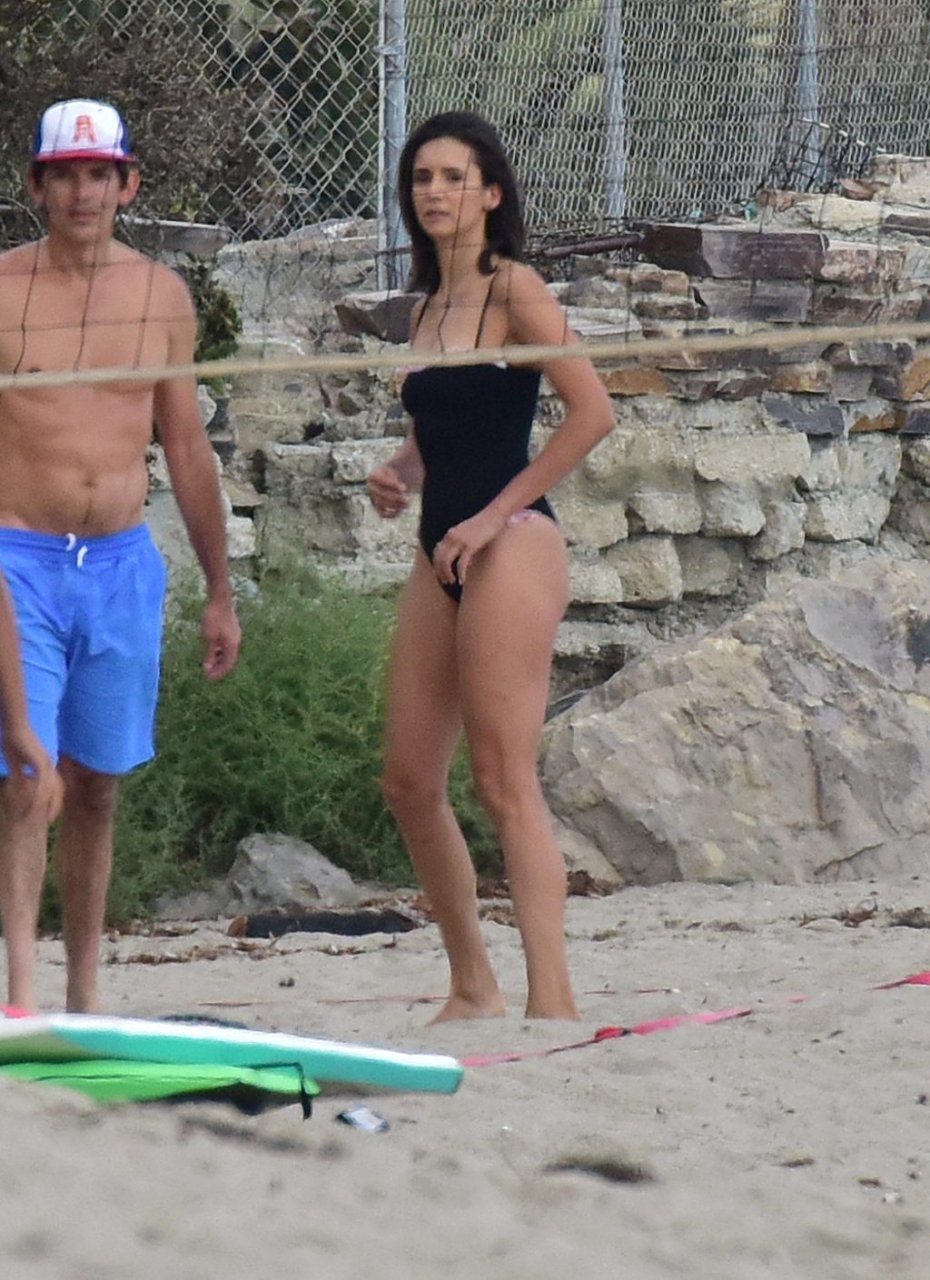 Актриса Нина Добрев была замечена в черном купальнике, играя в волейбол с друзьями на пляже в Малибу, 02.09.2018.