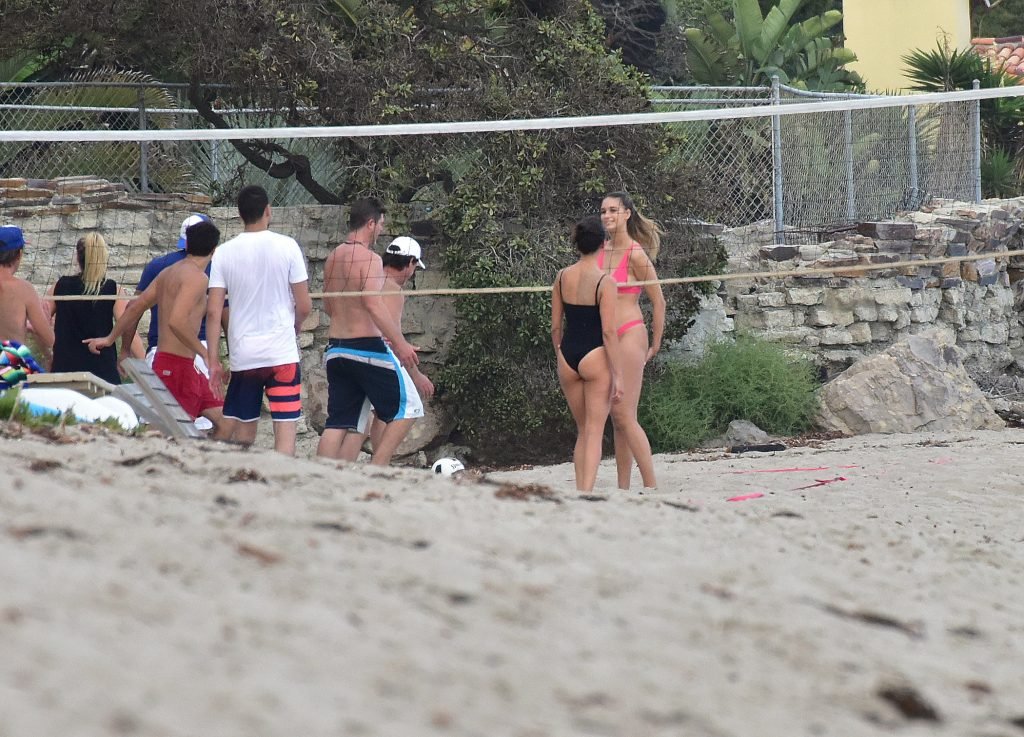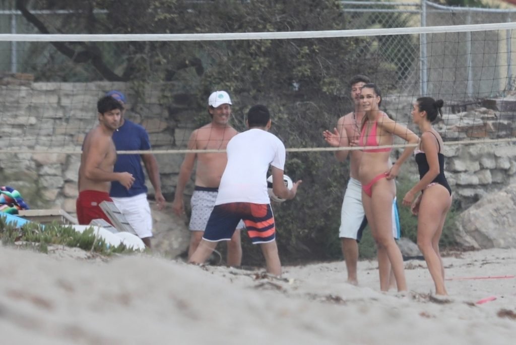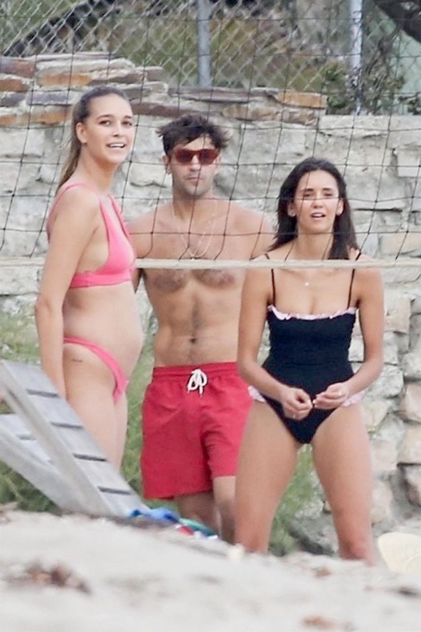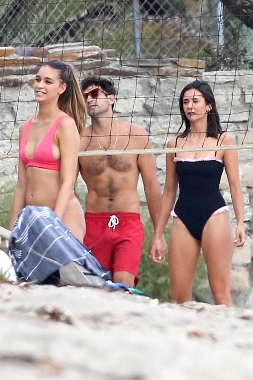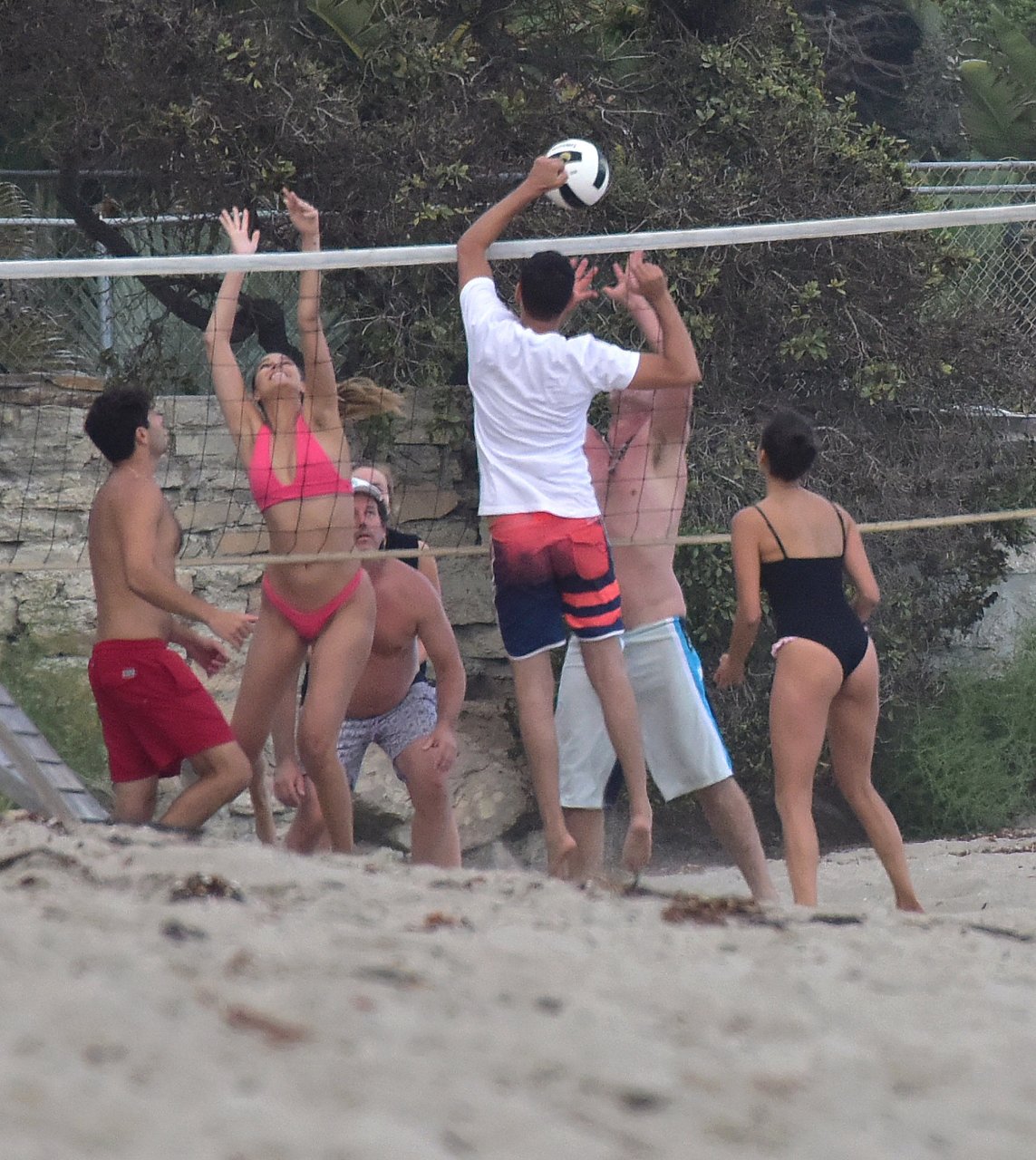 Актриса Нина Добрев была замечена в черном купальнике, играя в волейбол с друзьями на пляже в Малибу, 02.09.2018.