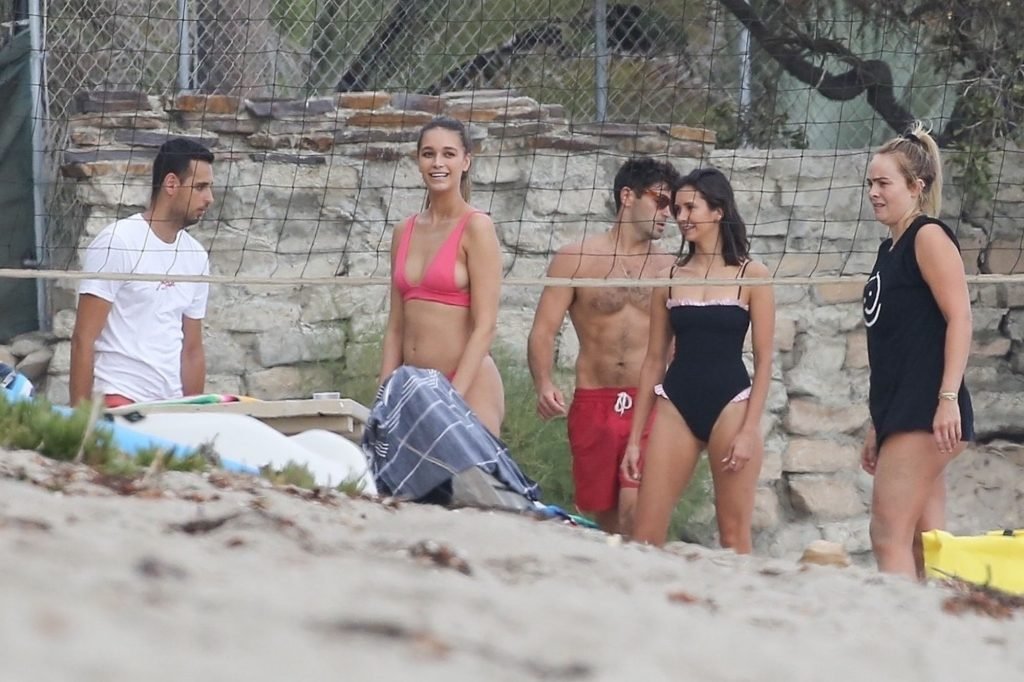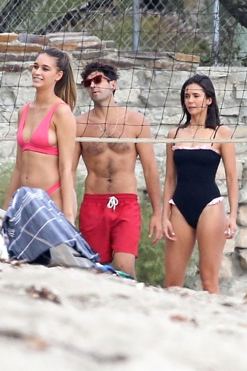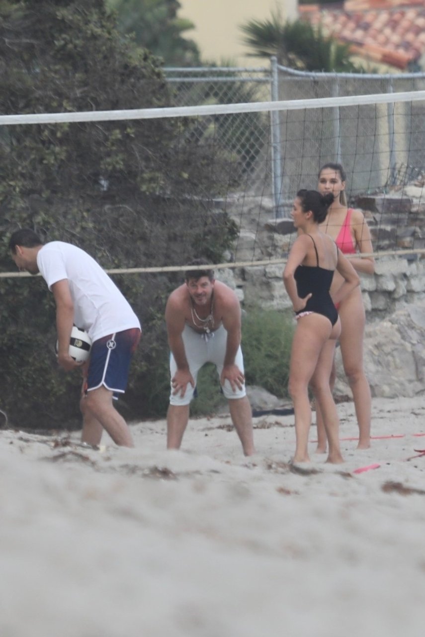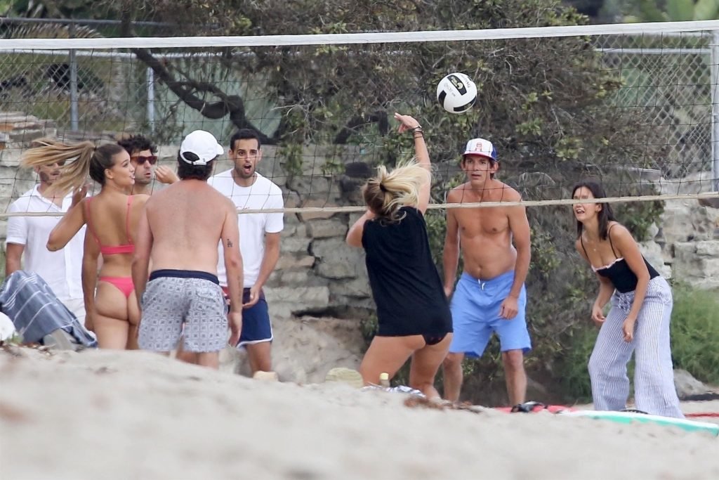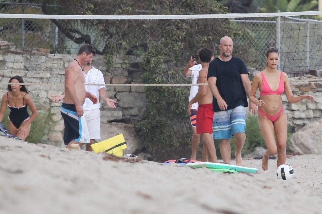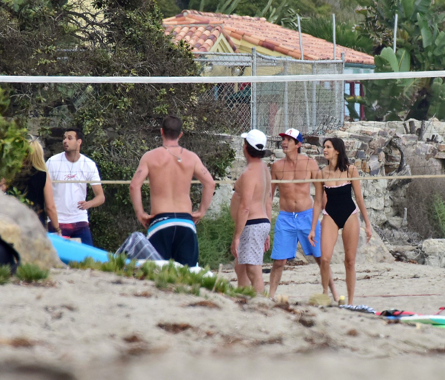 Актриса Нина Добрев была замечена в черном купальнике, играя в волейбол с друзьями на пляже в Малибу, 02.09.2018.