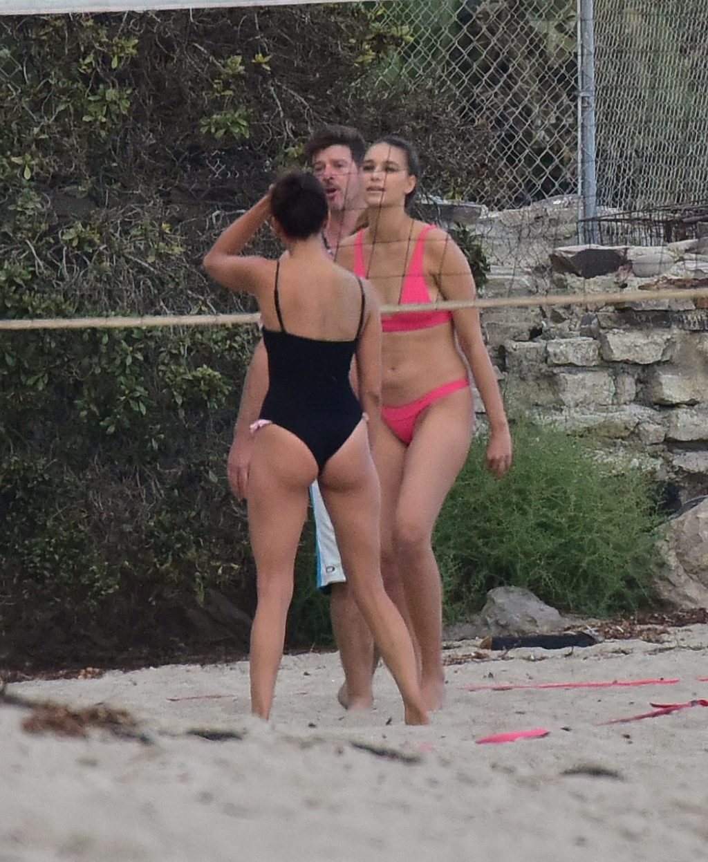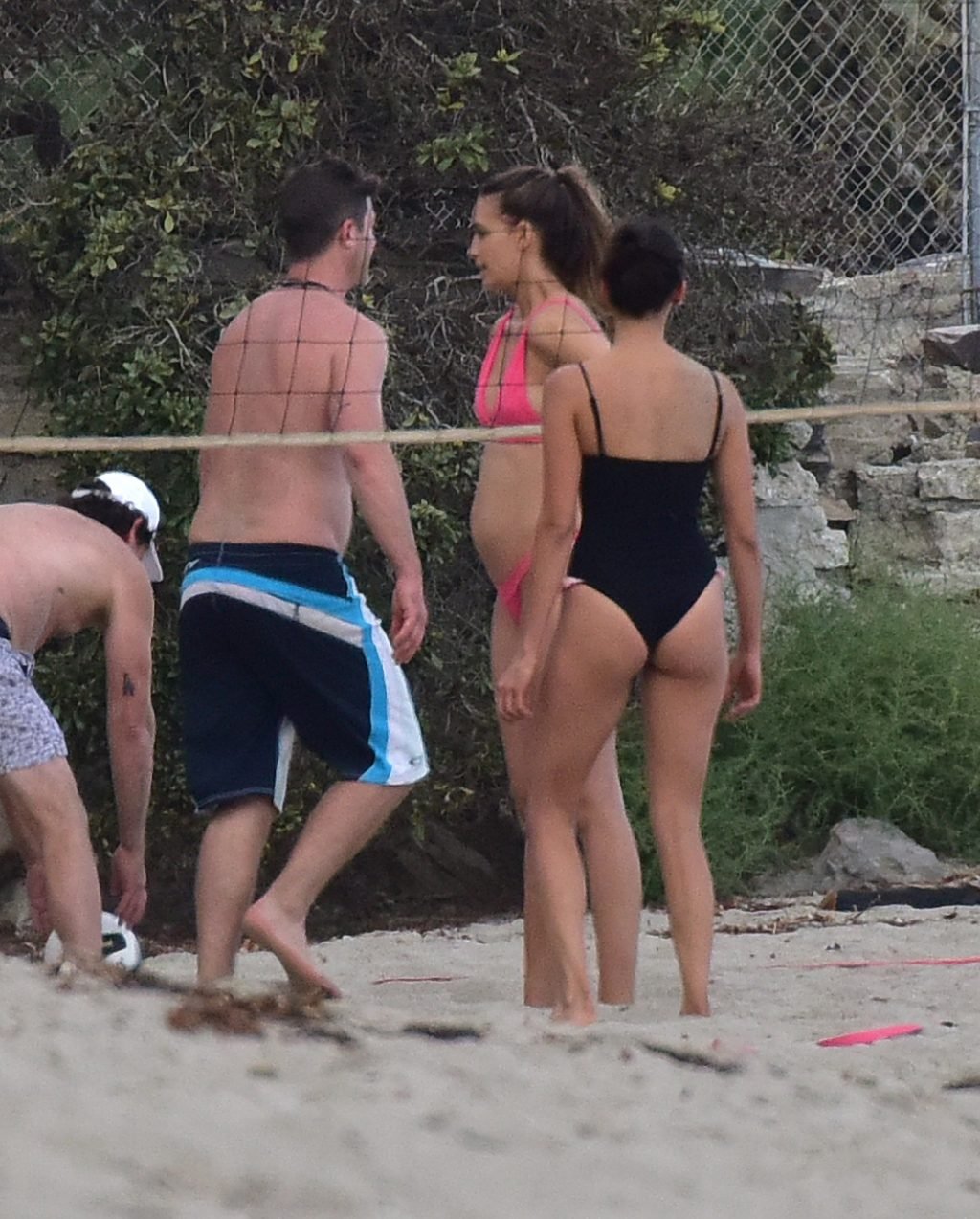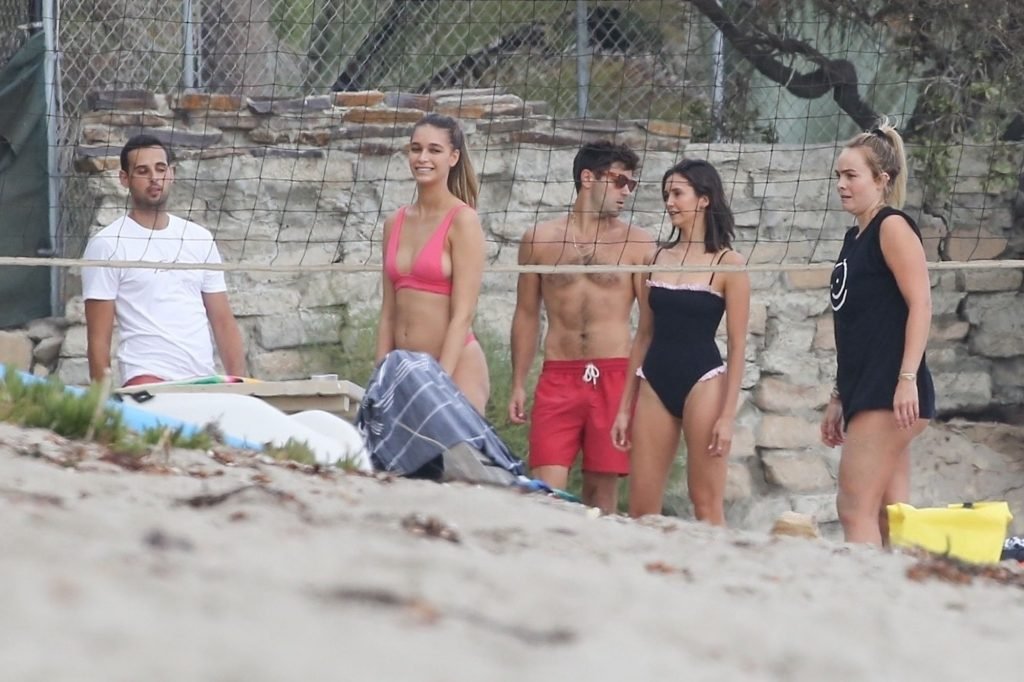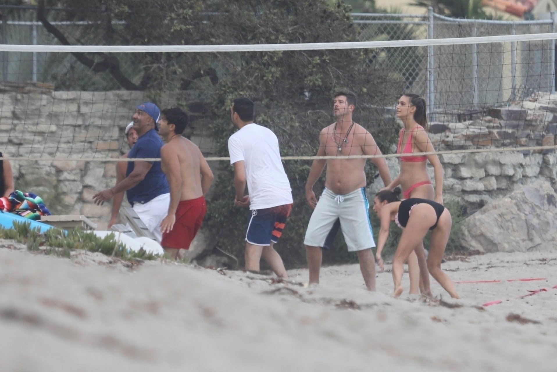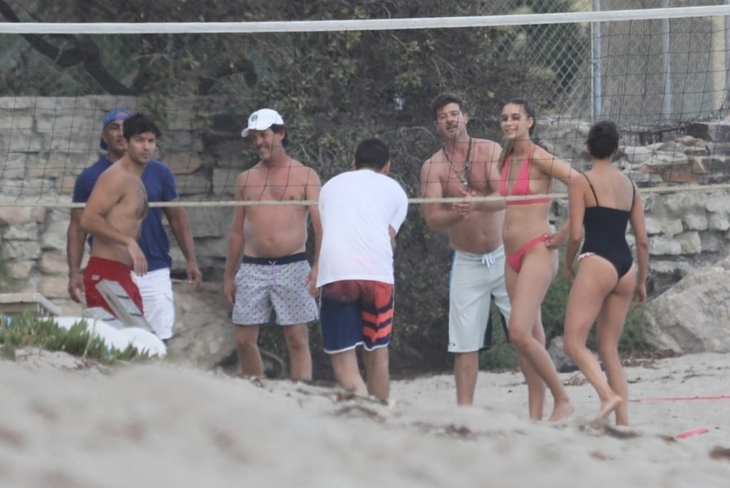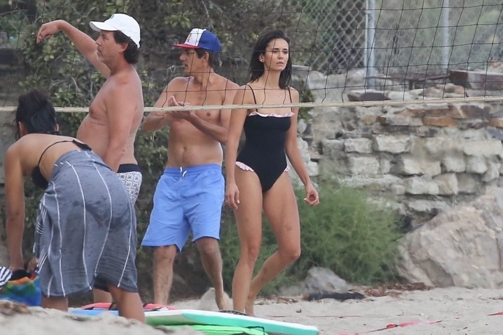 Актриса Нина Добрев была замечена в черном купальнике, играя в волейбол с друзьями на пляже в Малибу, 02.09.2018.