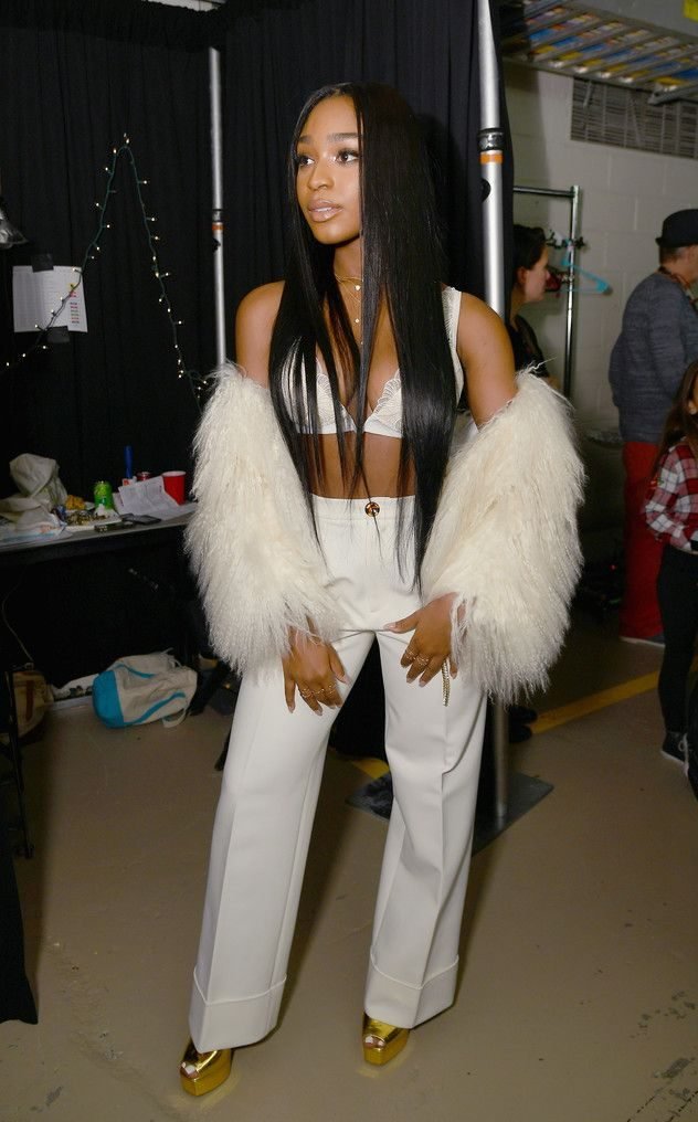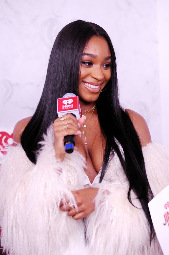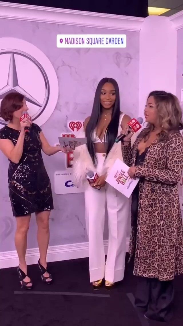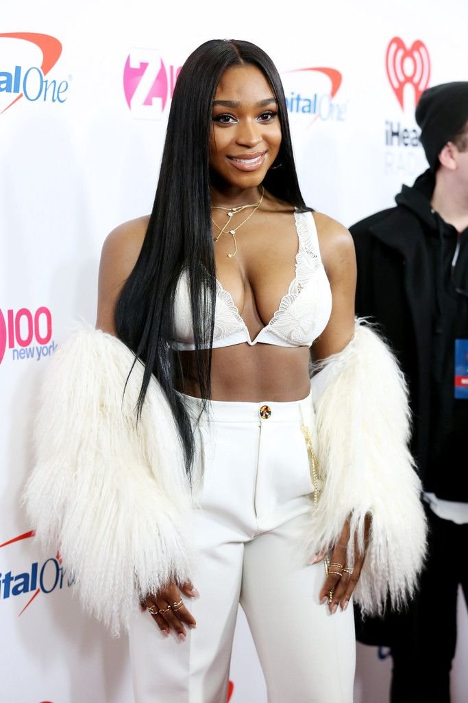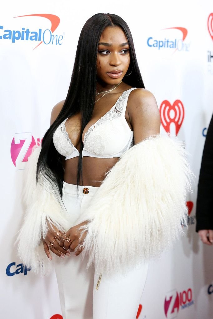 Normani Kordei Hamilton продемонстрировала глубокое декольте в белом топе на концерте Z100’s Jingle Ball 2018 в Нью-Йорке, 12.07.2018. Normani Kordei Hamilton (известная как Normani) — 22-летняя американская певица, танцовщица, модель, телеведущая и звезда социальных сетей.