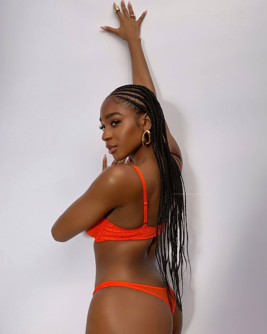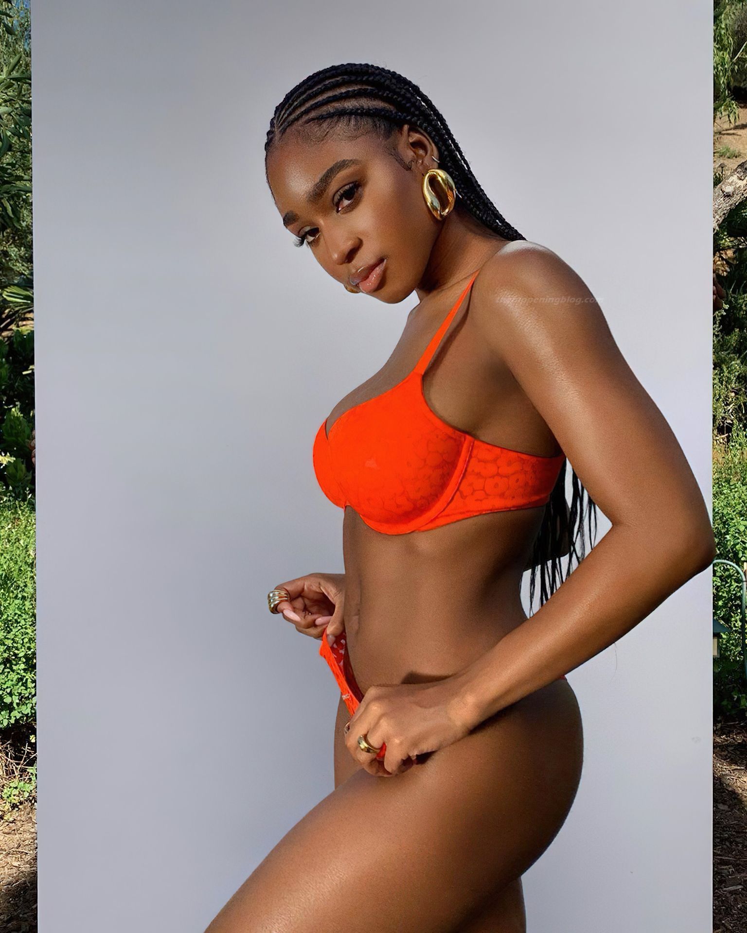 Певица Normani Kordei демонстрирует свою подтянутую попу и спортивное тело, позируя в оранжевом белье, продвигая коллекцию Savage X Fenty Рианны (2020).