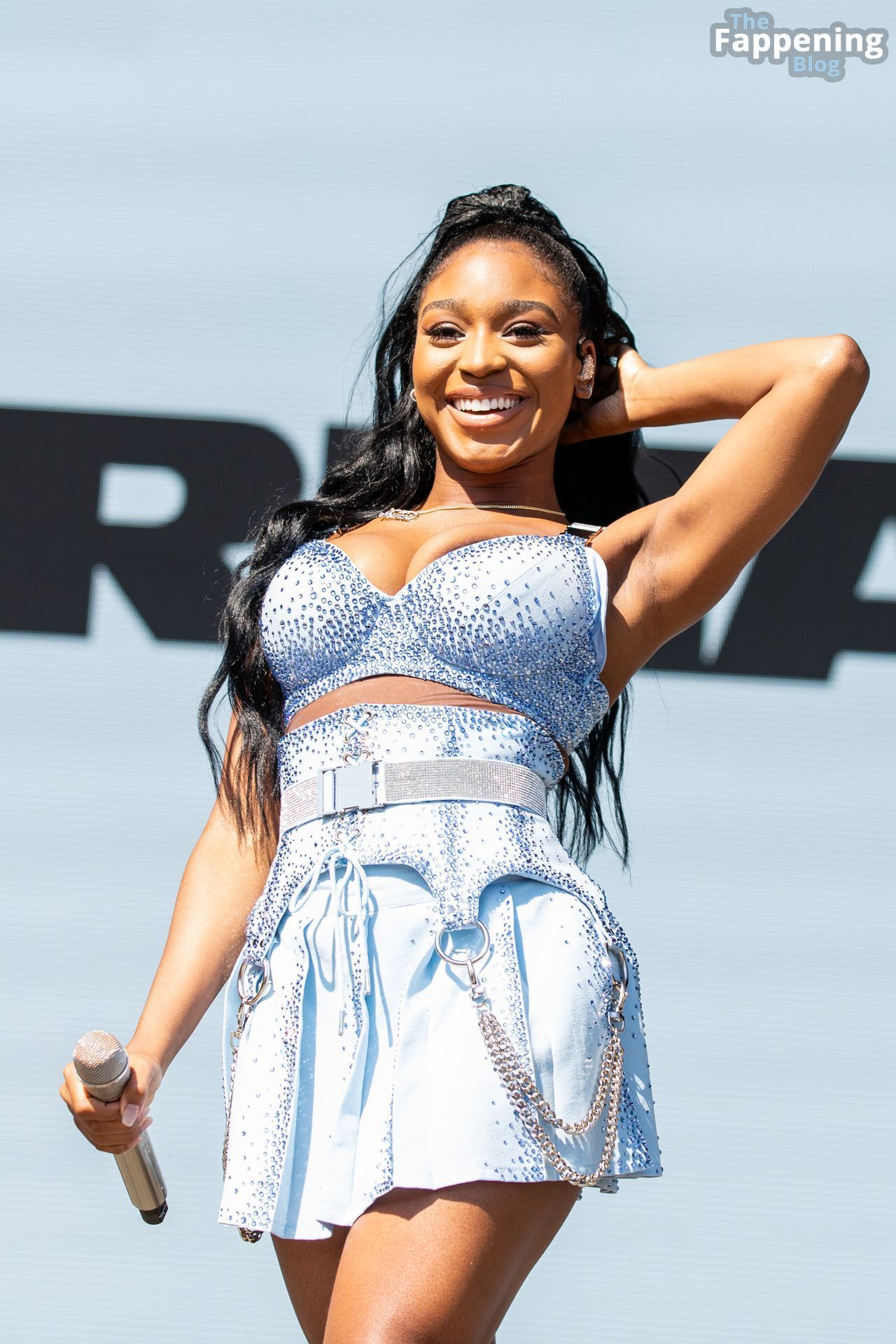 Певица Нормани запечатлена на сцене во время музыкального фестиваля Lollapalooza в Грант-парке, Чикаго, Иллинойс.