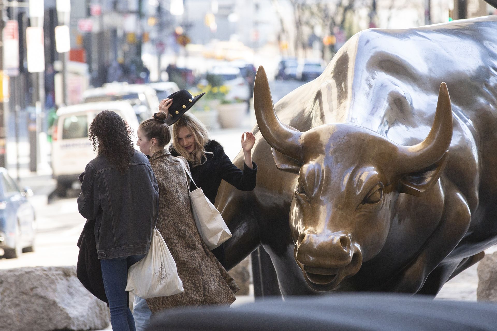 С введённым карантином и пустыми улицами никто не помешал беззаботной ковбойше оседлать бронзовый символ Финансового района. Когда она заметила фотографа из Post, наездница на быке скрылась вместе с приятелем, который снимал фото на iPhone.