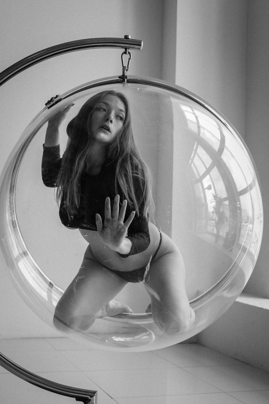 Всегда потрясающая российская модель Ольга Кобзарь позирует голой, демонстрируя свои большие груди и лобок в студии в нижнем белье и чулках в фотосессии Игоря Васильева (2020).