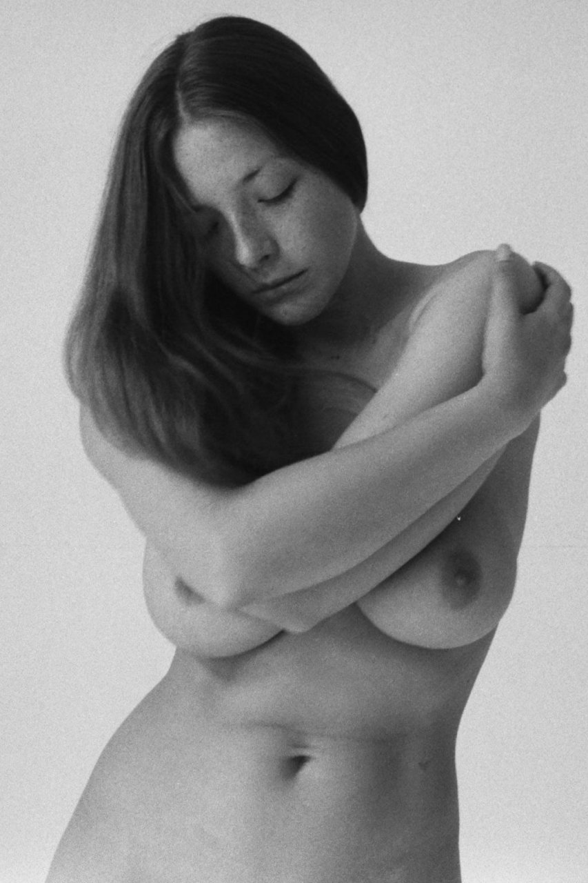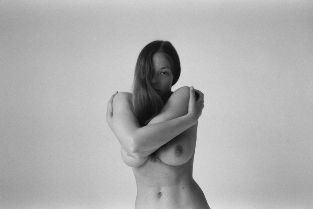 Посмотрите черно-белые ню фотографии Ольги Кобзарь прошлого года от Дарьи Александровой. Российская модель показала себя полностью обнаженной с отличной грудью и волосатой киской в этой студийной съемке.
