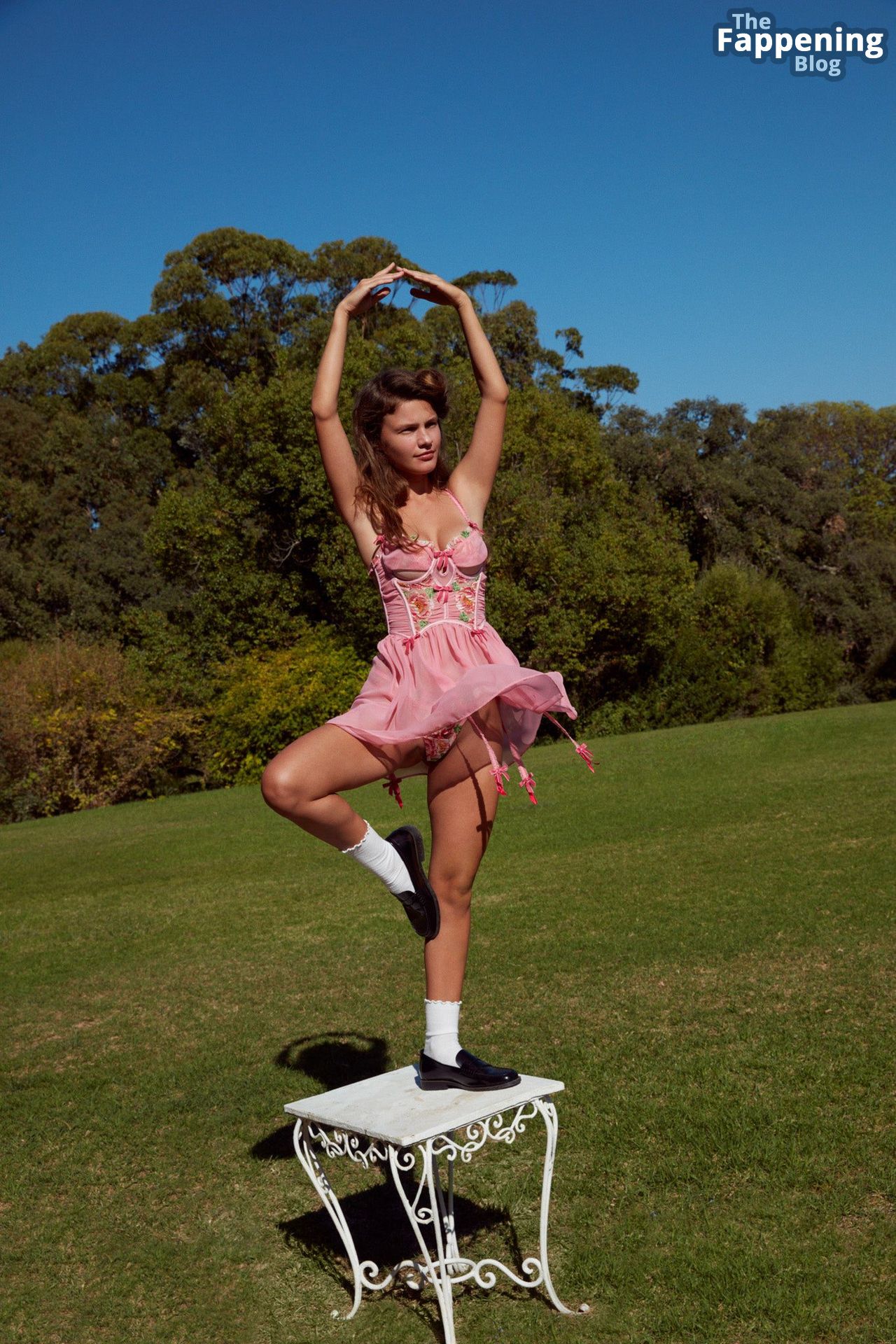 Russian babe Olga Obumova displays her alluring curves and stunning physique as she poses in lingerie for For Love And Lemons’ “A Flower For A Flower” campaign, highlighting her captivating bosom.