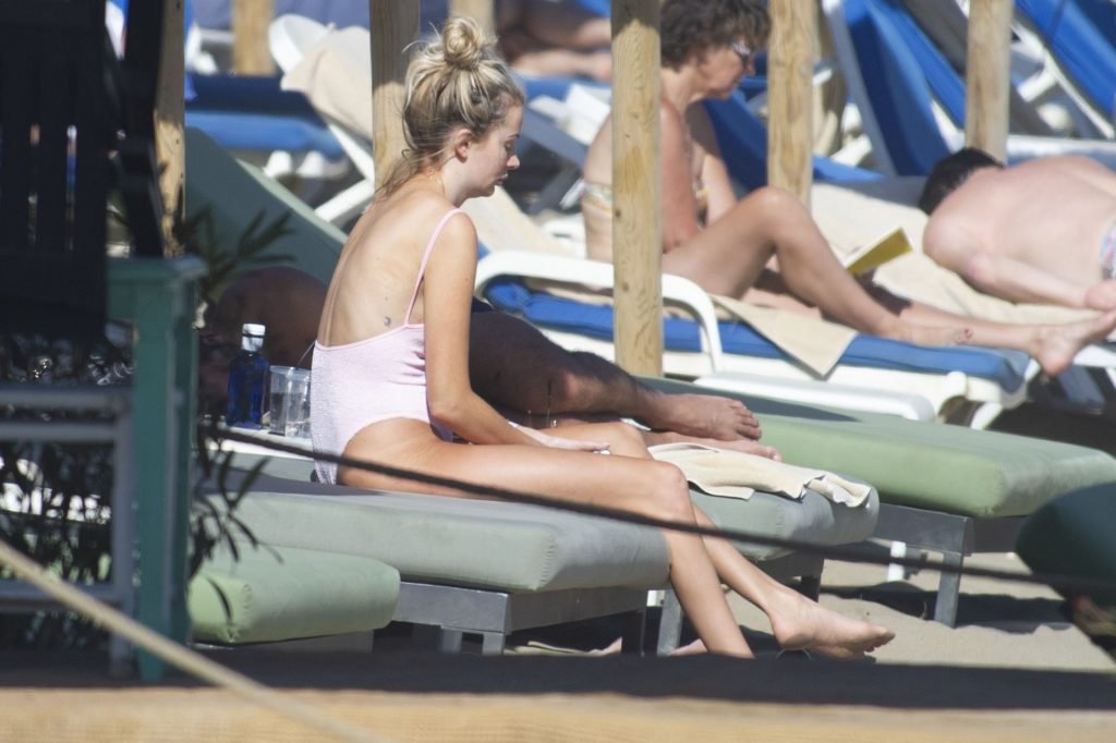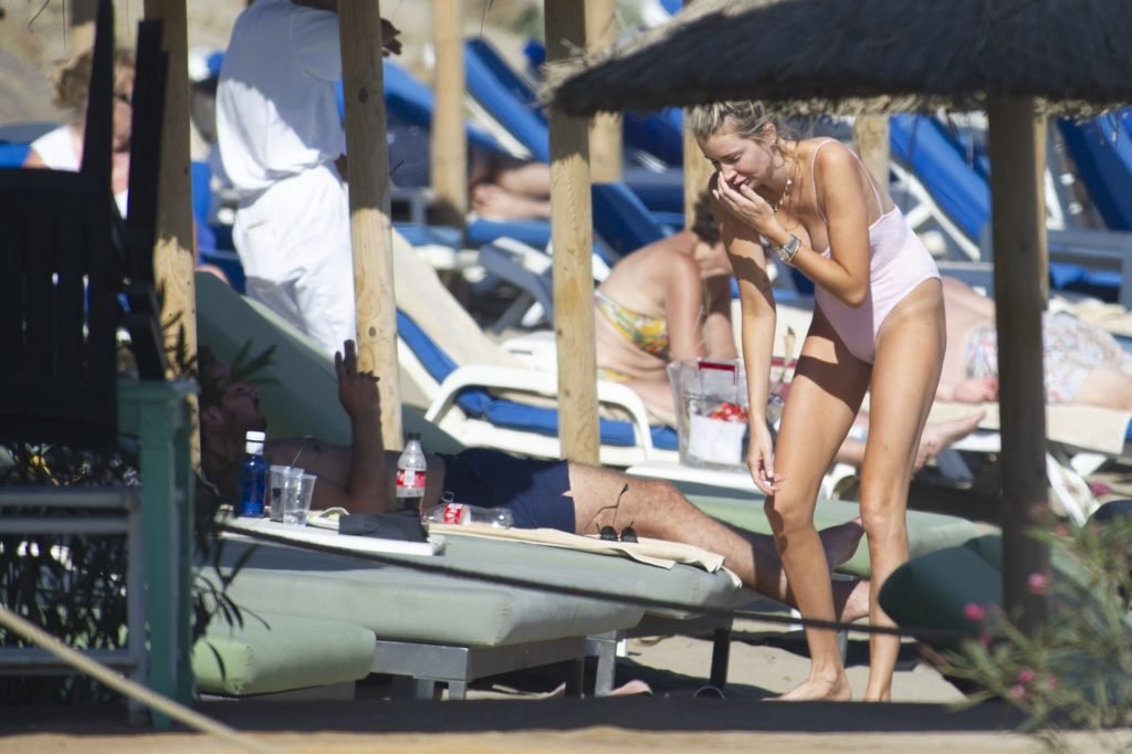 Английская звезда реалити-шоу Оливия Аттвуд и её парень, футболист Брэдли Дэк, замечены на пляже в Марбелье, 06/10/2019.