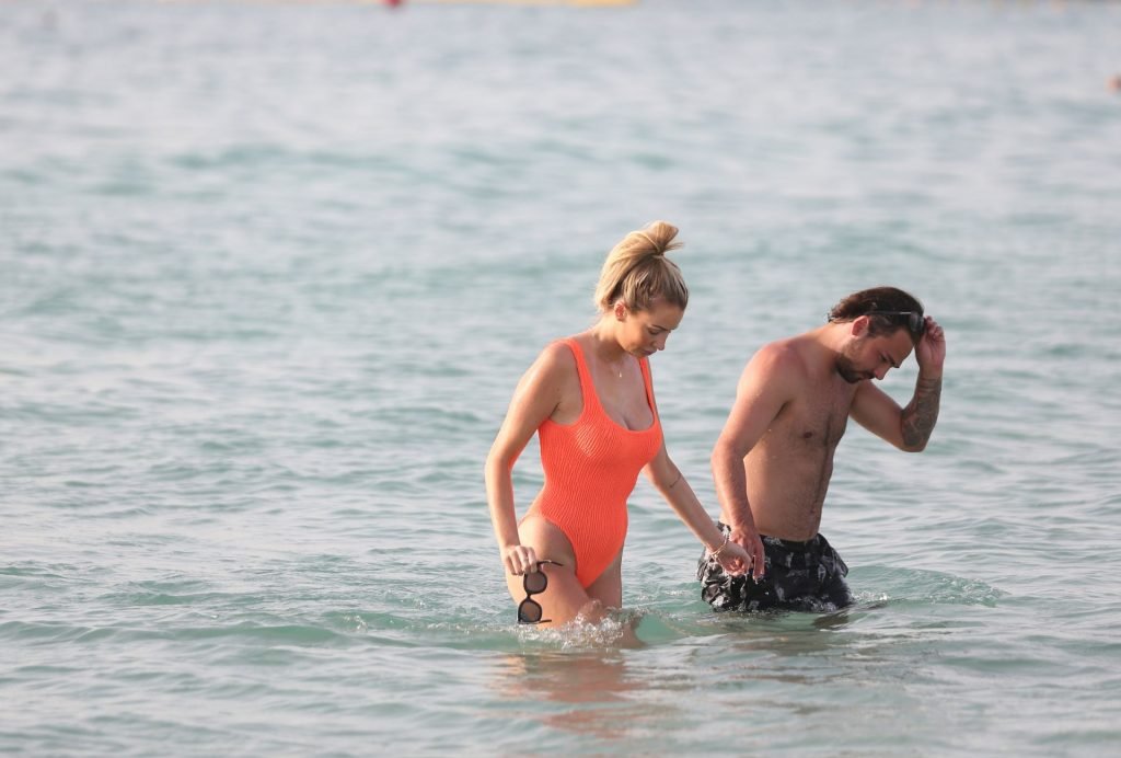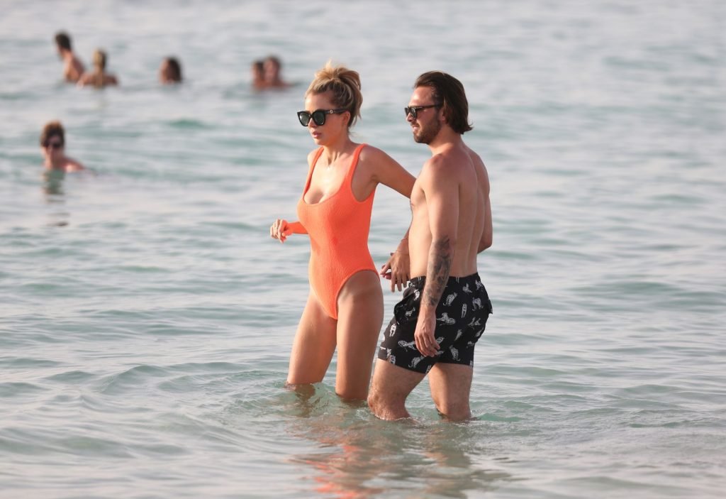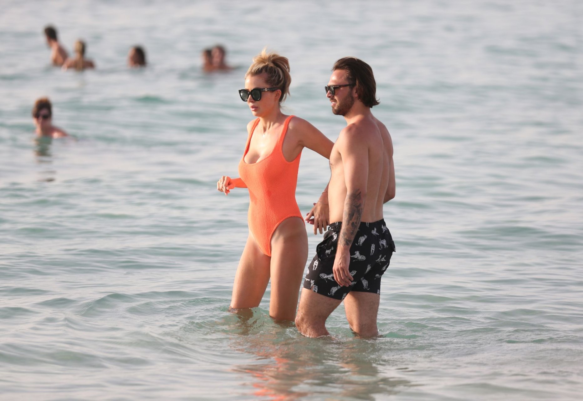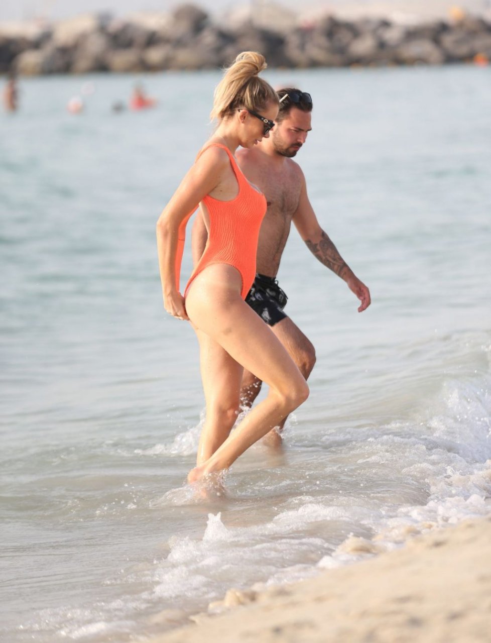 Оливия Аттвуд и её футболист-бойфренд Брэдли Дак, с которым у неё то расставание, то воссоединение, были замечены на отдыхе в Дубае, 11.05.2019. Оливия демонстрировала свою завидную фигуру в оранжевом бикини.