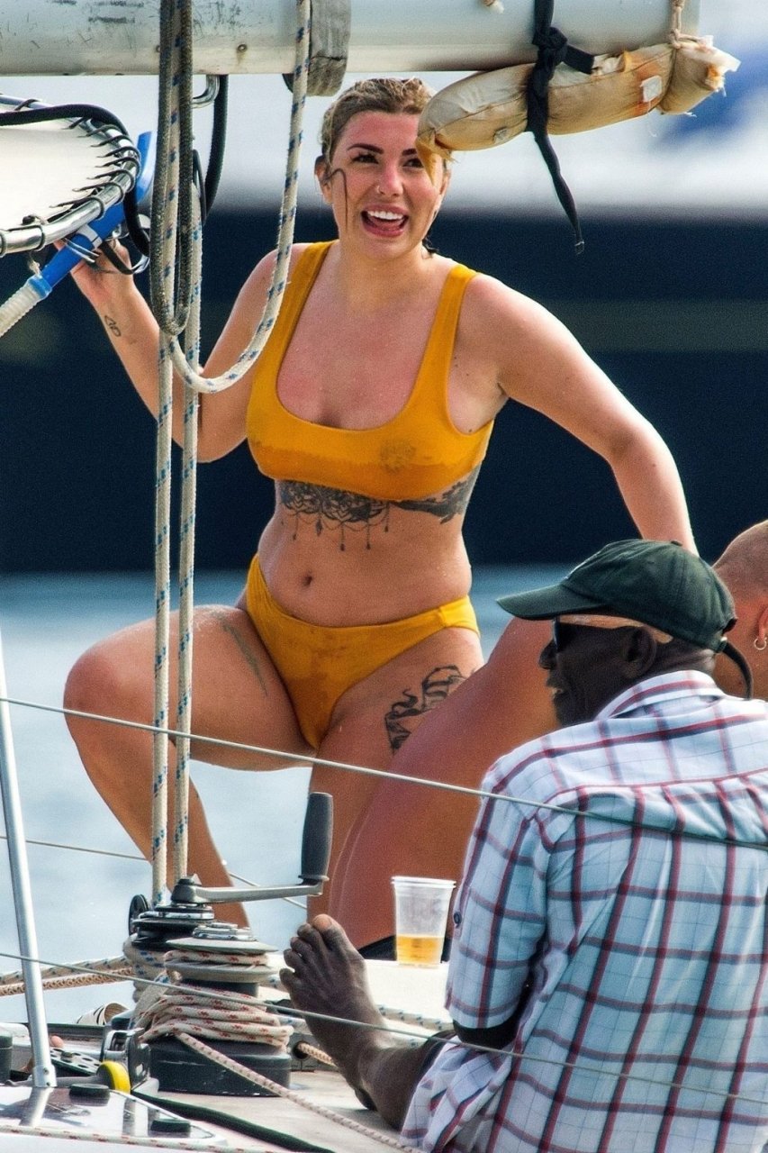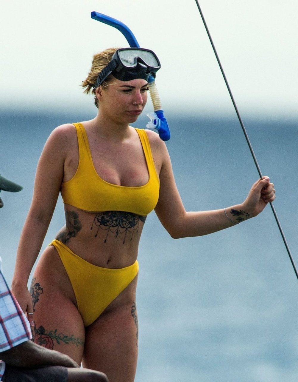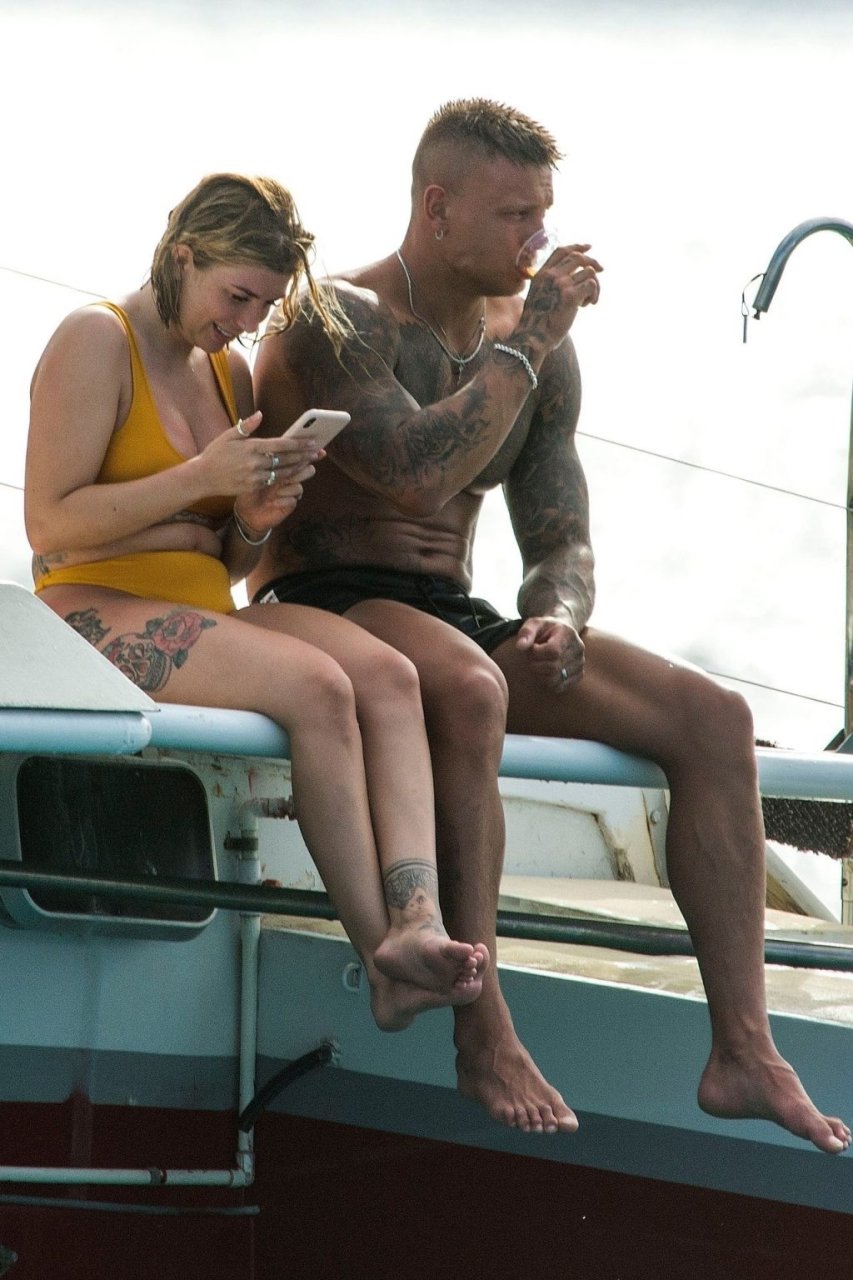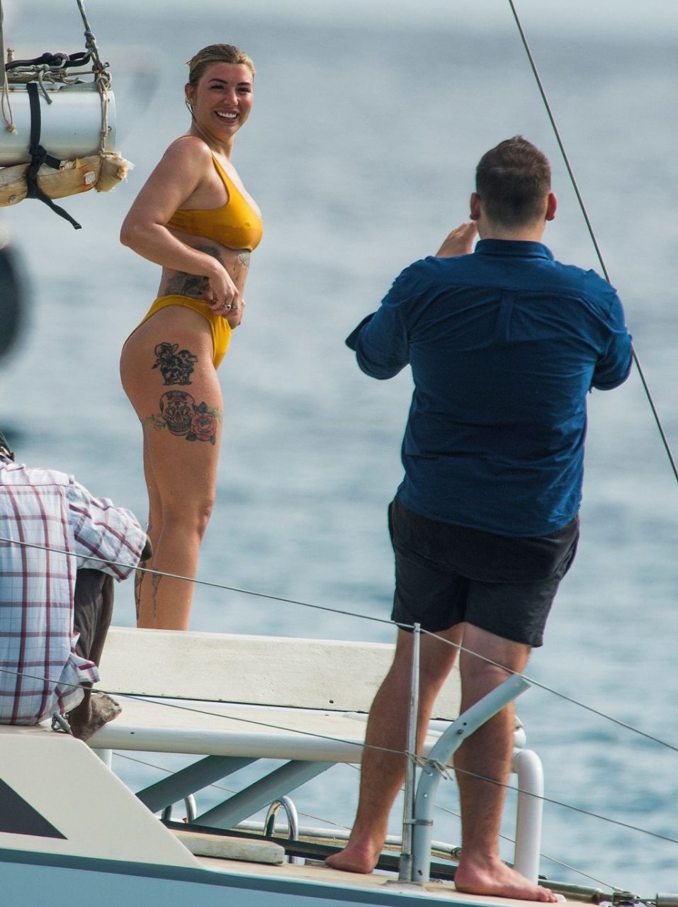 Оливия Бакленд демонстрирует свои изгибы в маленьком раздельном купальнике во время снорклинга с Алексом Боуэном, 24.03.2019. Дуэт выглядит радостным, позируя для фотографий на лодке. Купальник Оливии оказался более прозрачным, чем планировалось, после того, как она вышла из воды.