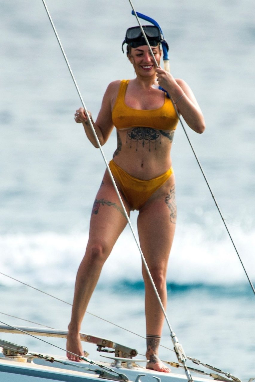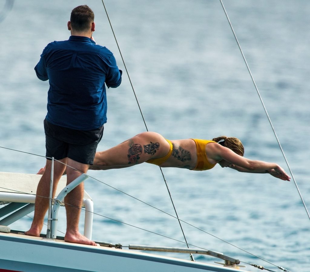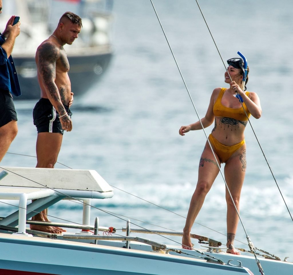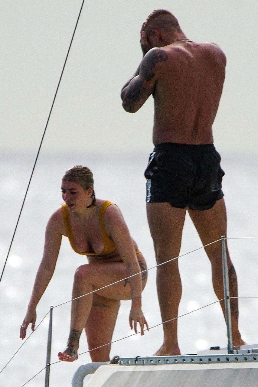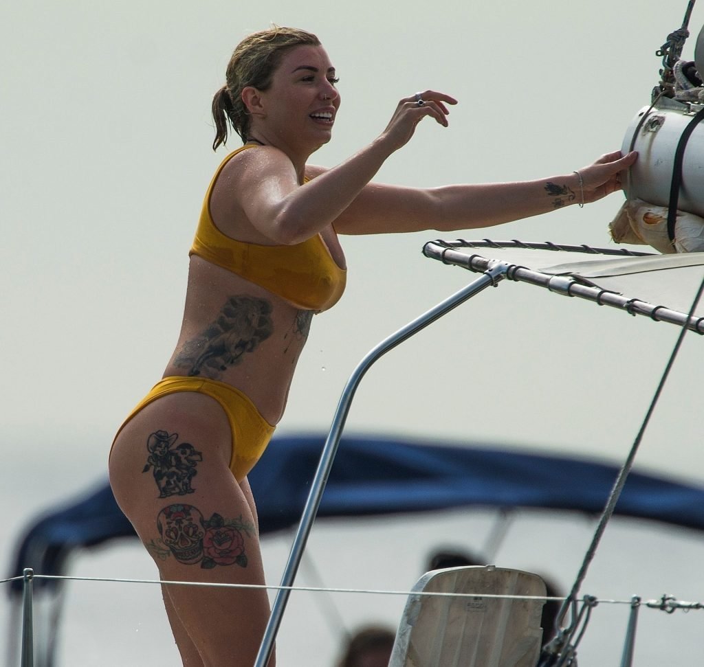 Оливия Бакленд демонстрирует свои изгибы в маленьком раздельном купальнике во время снорклинга с Алексом Боуэном, 24.03.2019. Дуэт выглядит радостным, позируя для фотографий на лодке. Купальник Оливии оказался более прозрачным, чем планировалось, после того, как она вышла из воды.