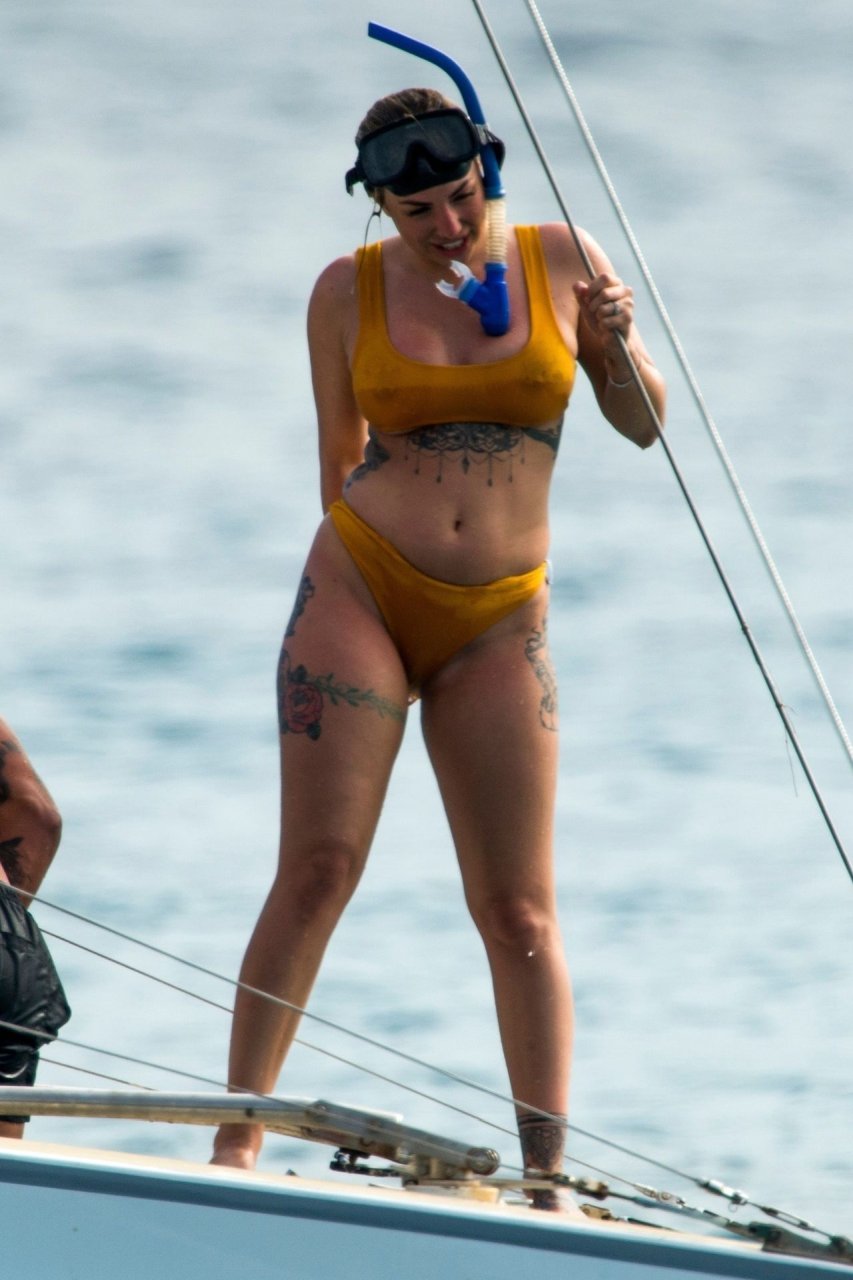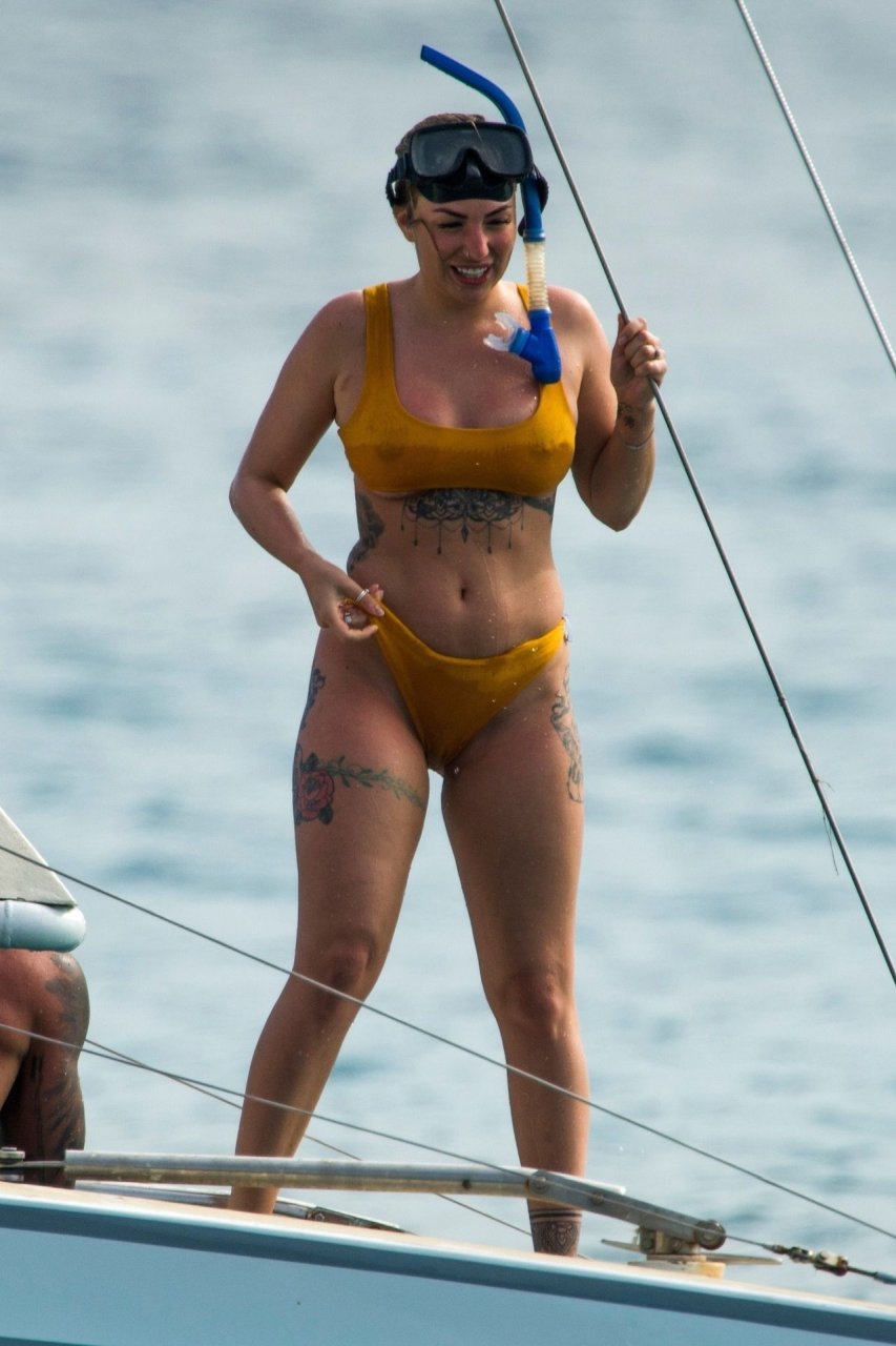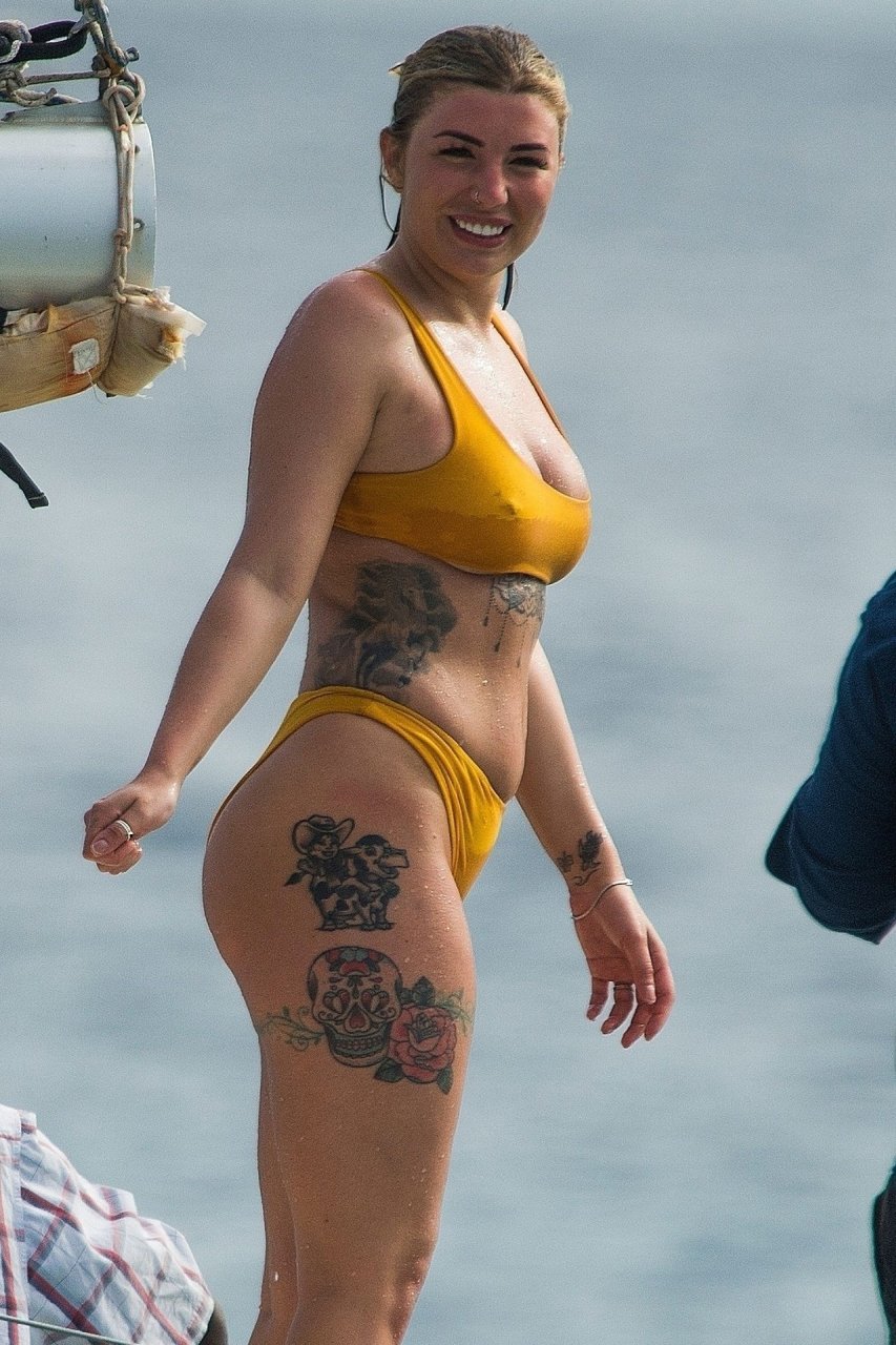 Оливия Бакленд демонстрирует свои изгибы в маленьком раздельном купальнике во время снорклинга с Алексом Боуэном, 24.03.2019. Дуэт выглядит радостным, позируя для фотографий на лодке. Купальник Оливии оказался более прозрачным, чем планировалось, после того, как она вышла из воды.