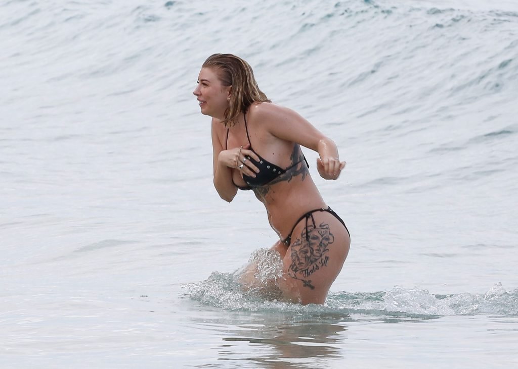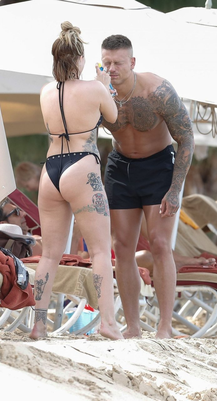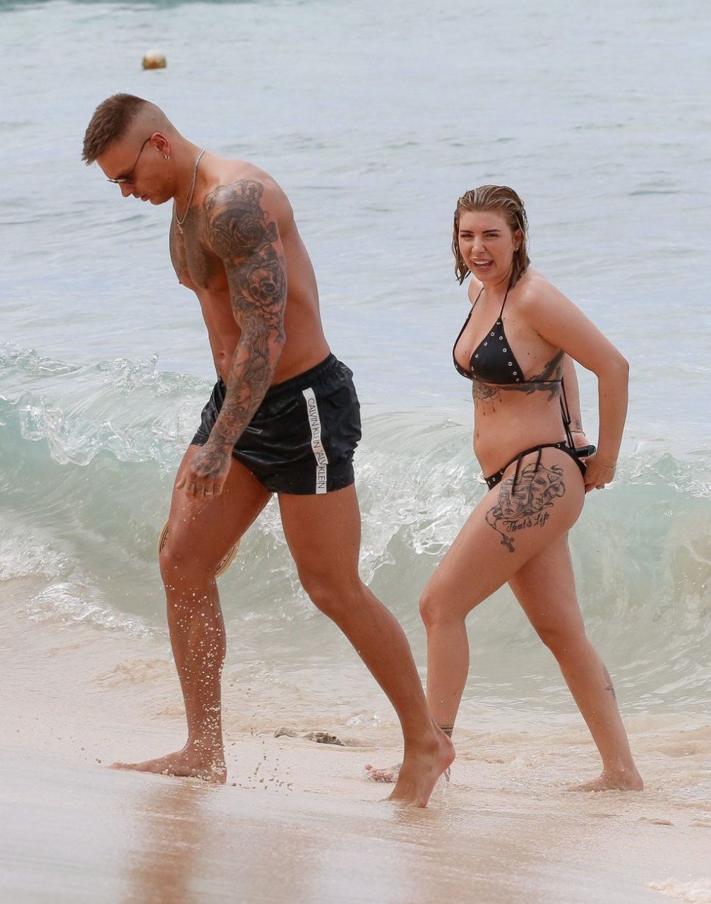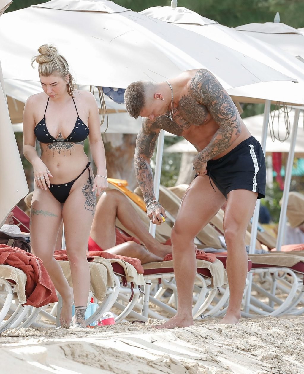Оливия Бакленд и её муж Алекс Боуэн замечены на пляже во время отпуска на Барбадосе, 21.03.2019.