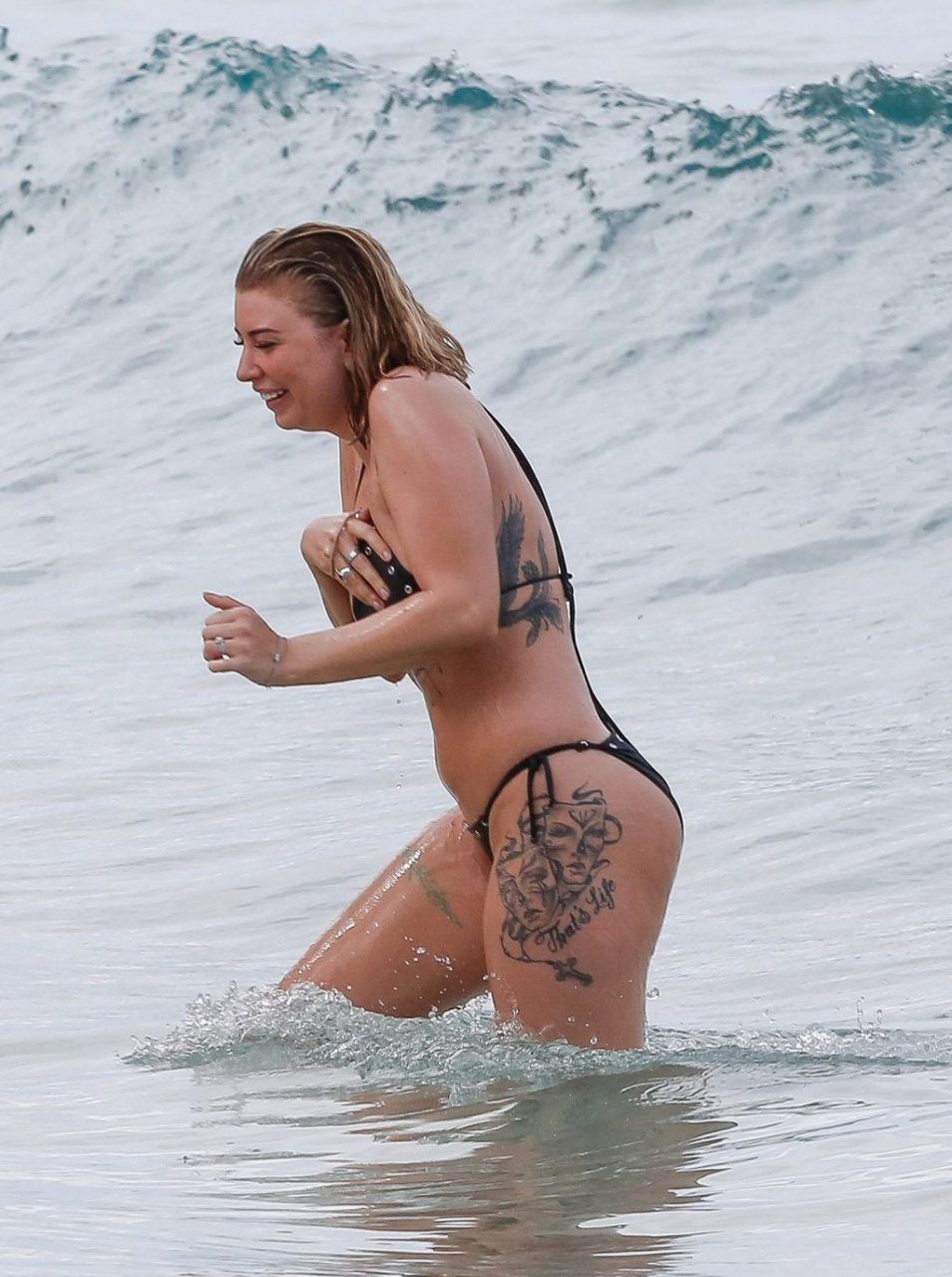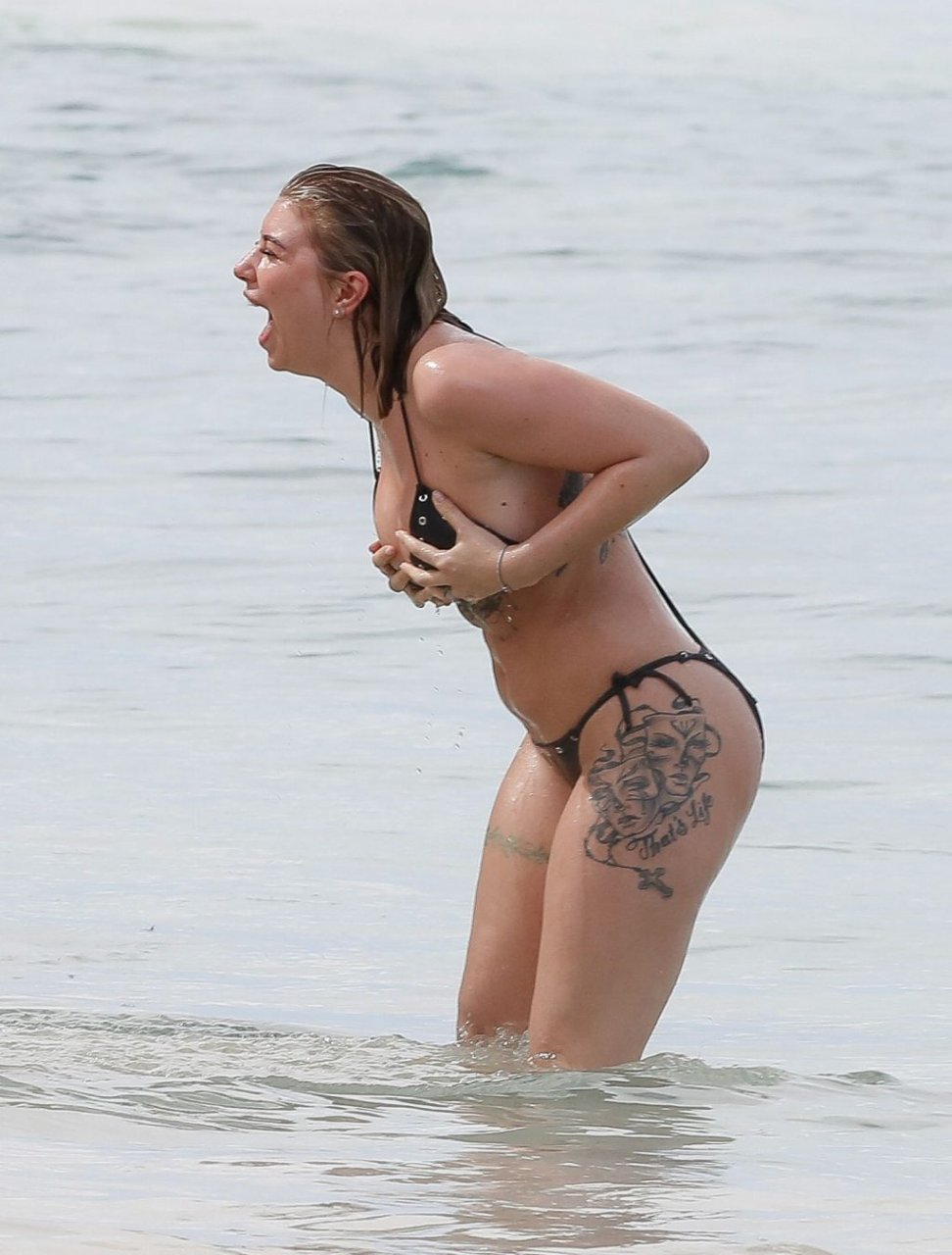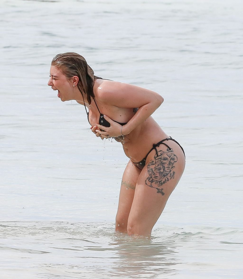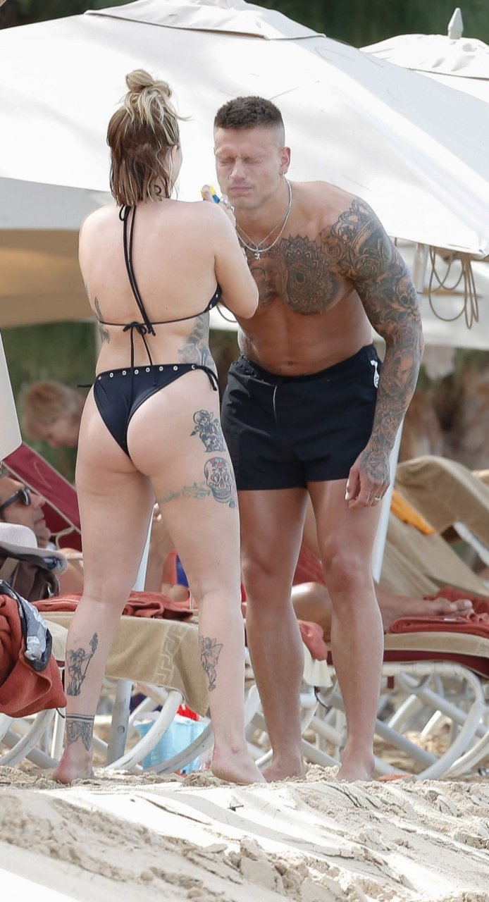 Оливия Бакленд и её муж Алекс Боуэн замечены на пляже во время отпуска на Барбадосе, 21.03.2019.