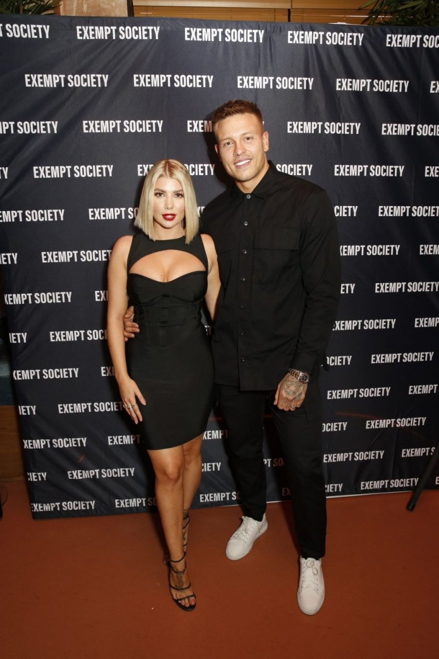 Exempt Society — бренд от Оливии Бакленд и Алекса Боуэна, который отмечает свою студийную коллекцию в Nikki’s Bar Shoreditch в Лондоне, 09/11/2019.