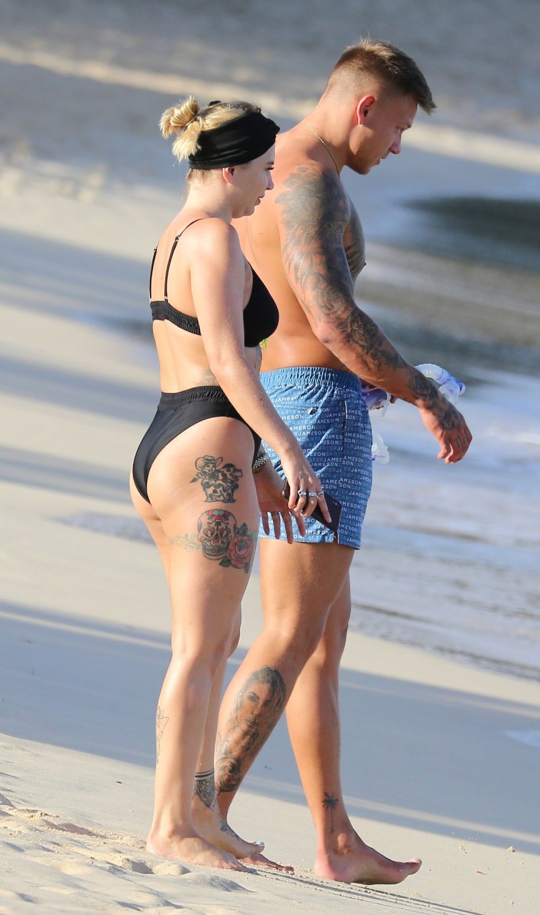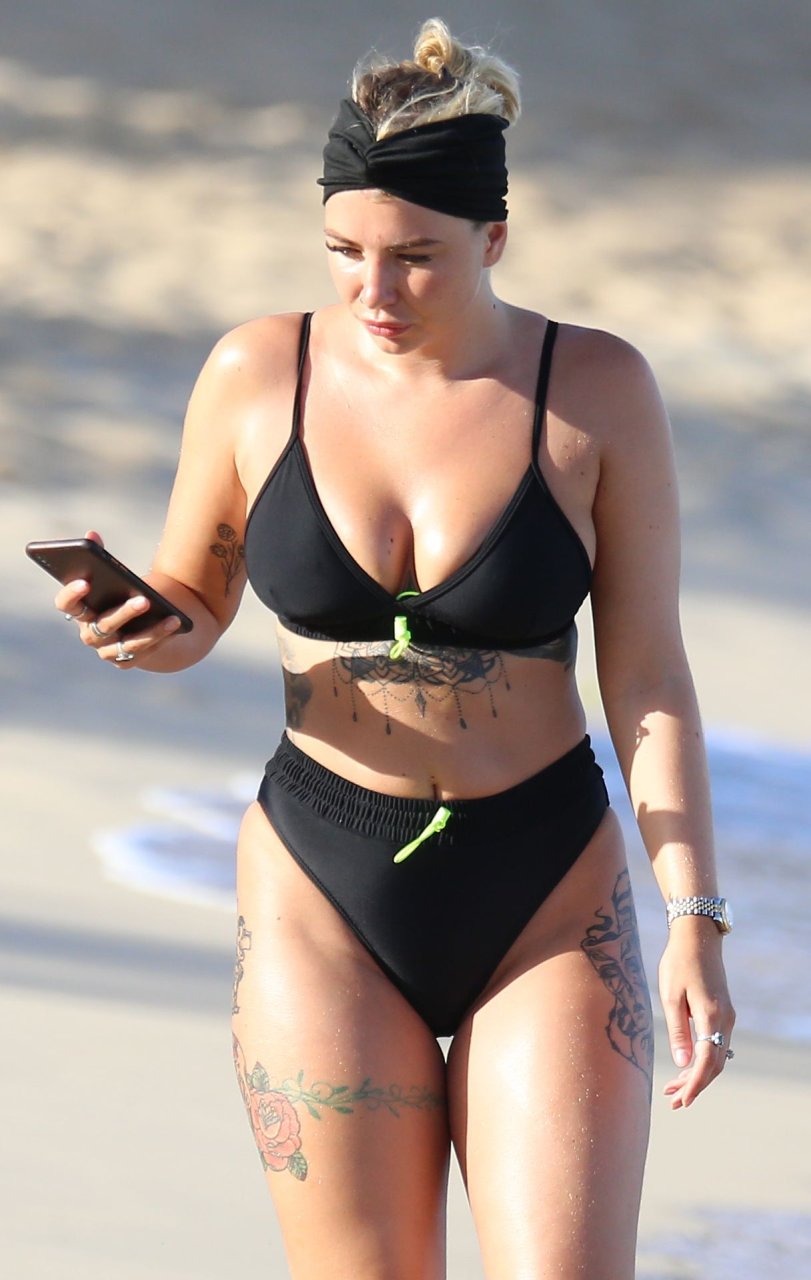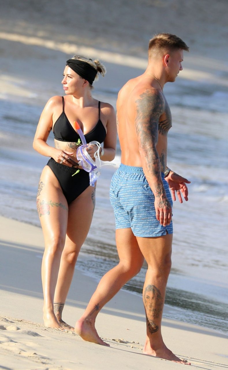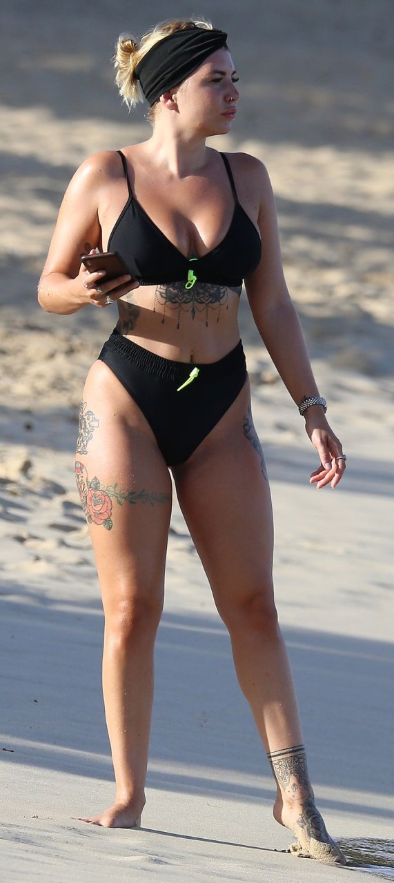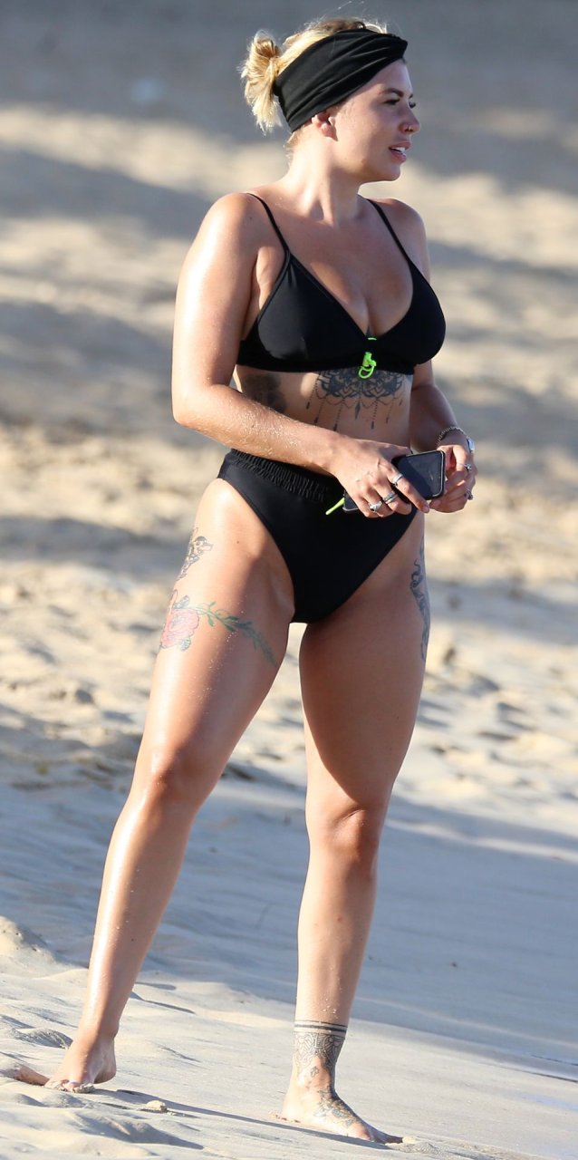 “Остров любви” Оливия Бакленд выглядит феноменально в черном бикини, когда она отдыхает на пляже с мужем Алексом, наблюдая, как он занимается снорклингом на Барбадосе, 24.07.2019.