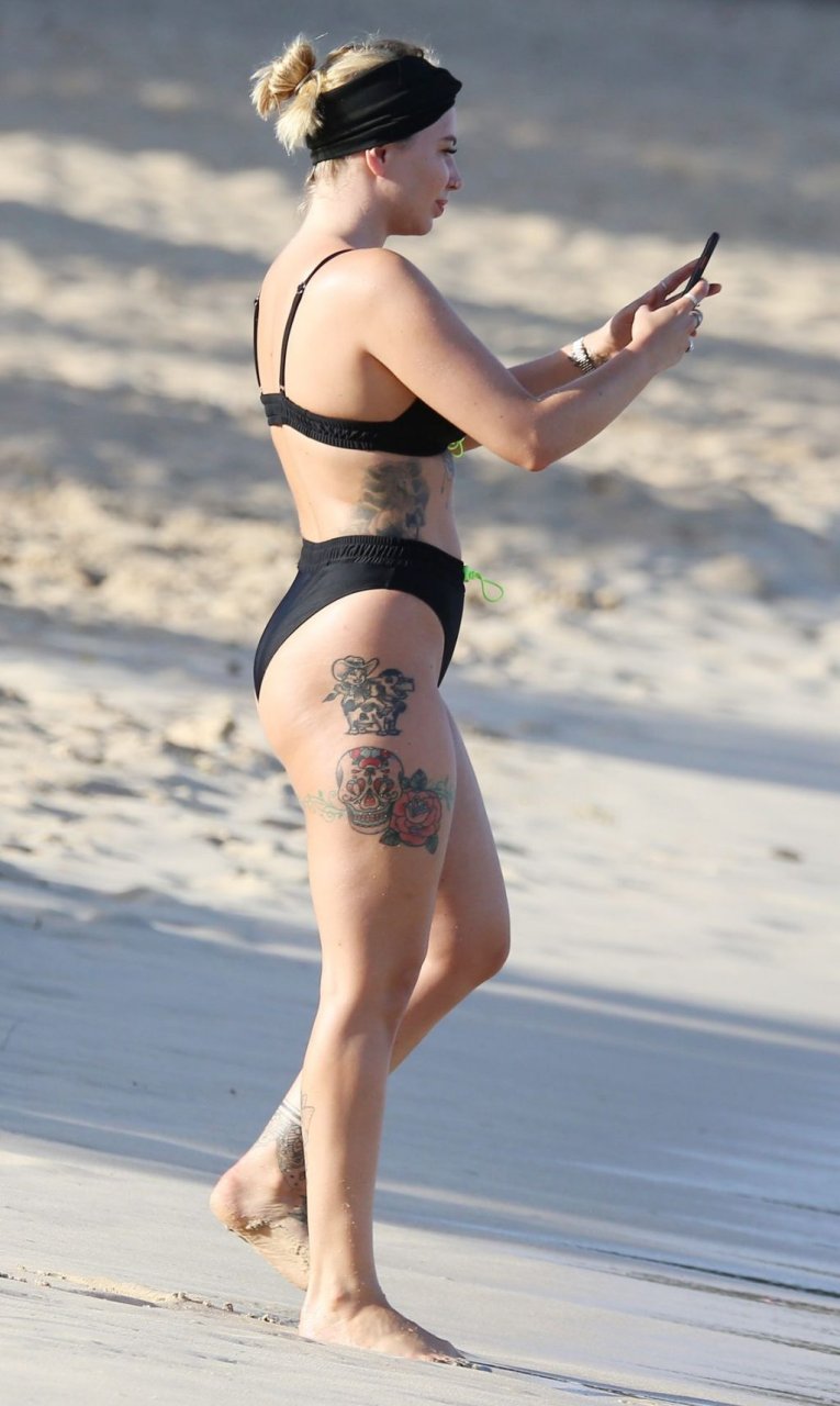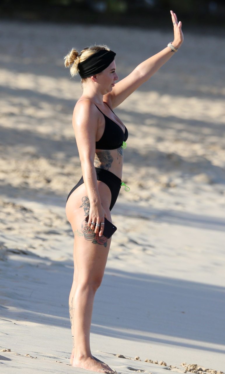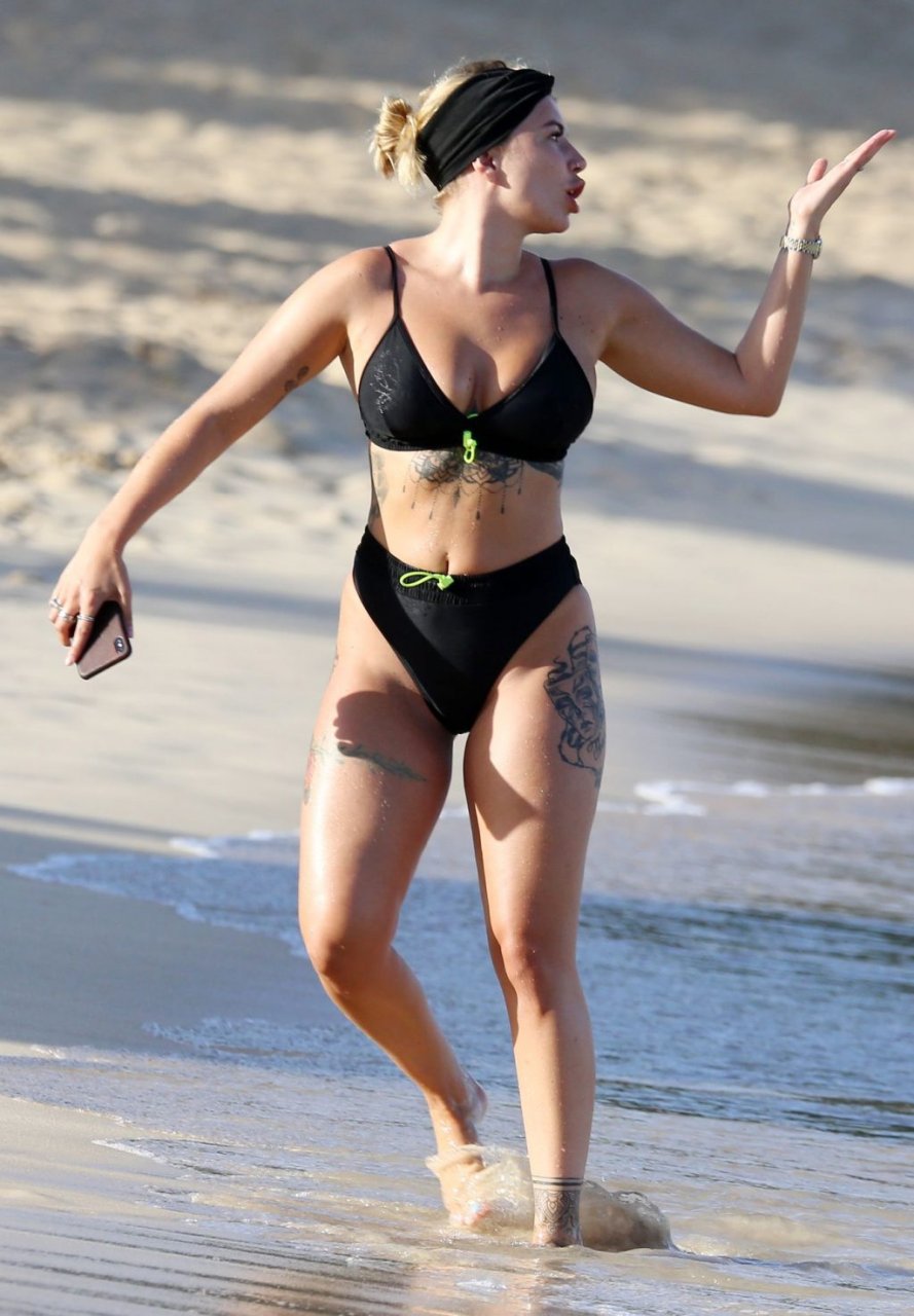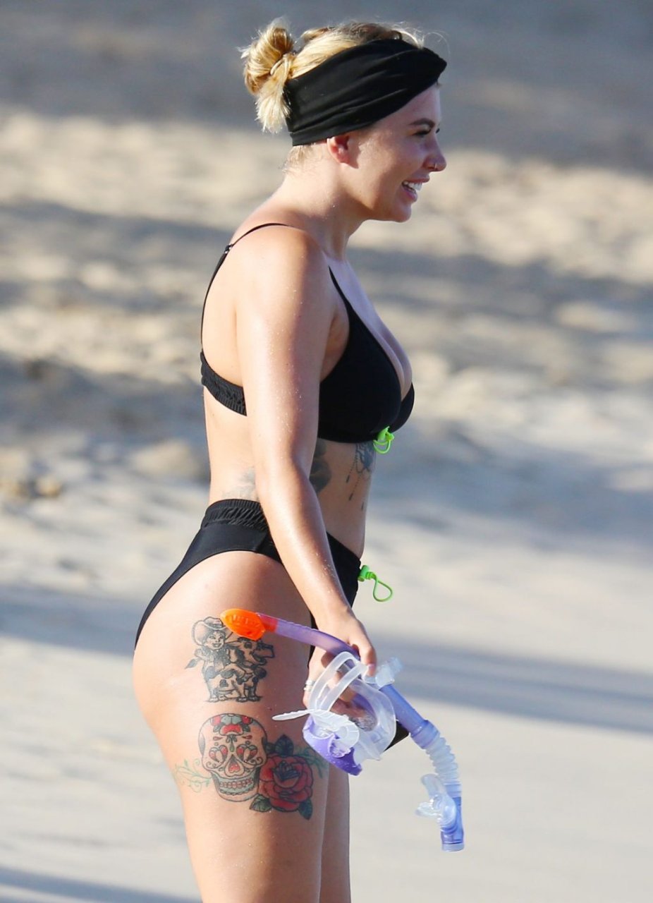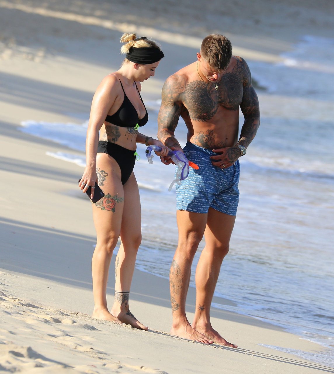 “Остров любви” Оливия Бакленд выглядит феноменально в черном бикини, когда она отдыхает на пляже с мужем Алексом, наблюдая, как он занимается снорклингом на Барбадосе, 24.07.2019.