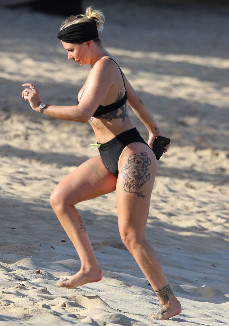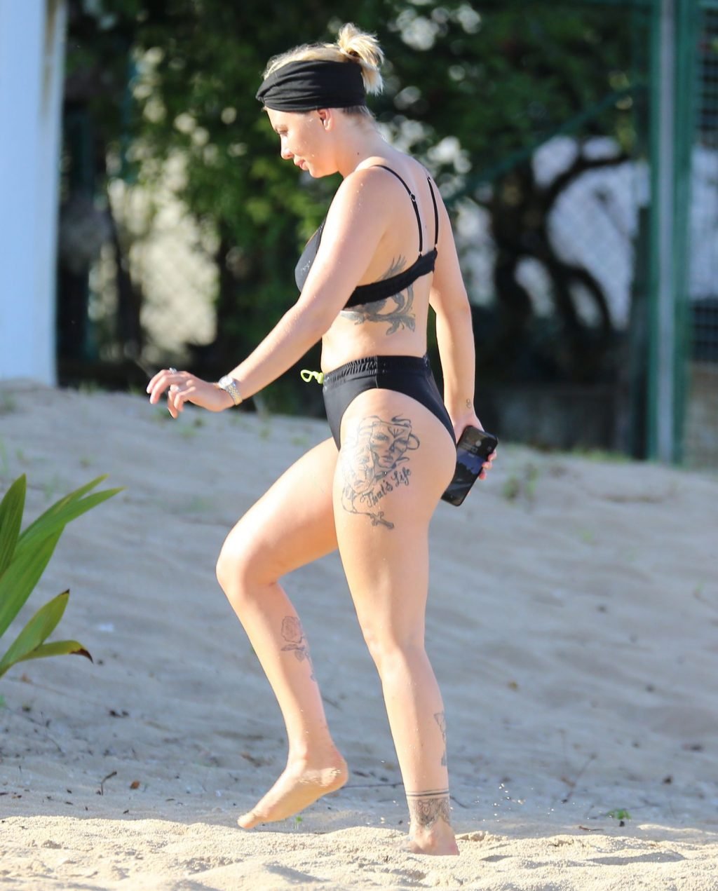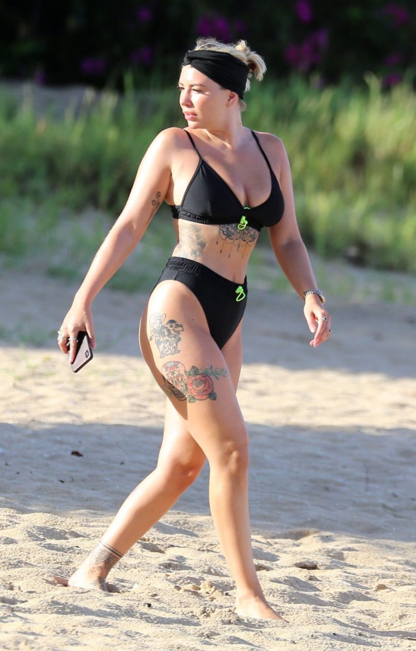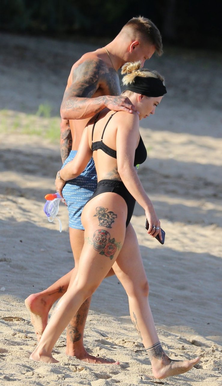 “Остров любви” Оливия Бакленд выглядит феноменально в черном бикини, когда она отдыхает на пляже с мужем Алексом, наблюдая, как он занимается снорклингом на Барбадосе, 24.07.2019.
