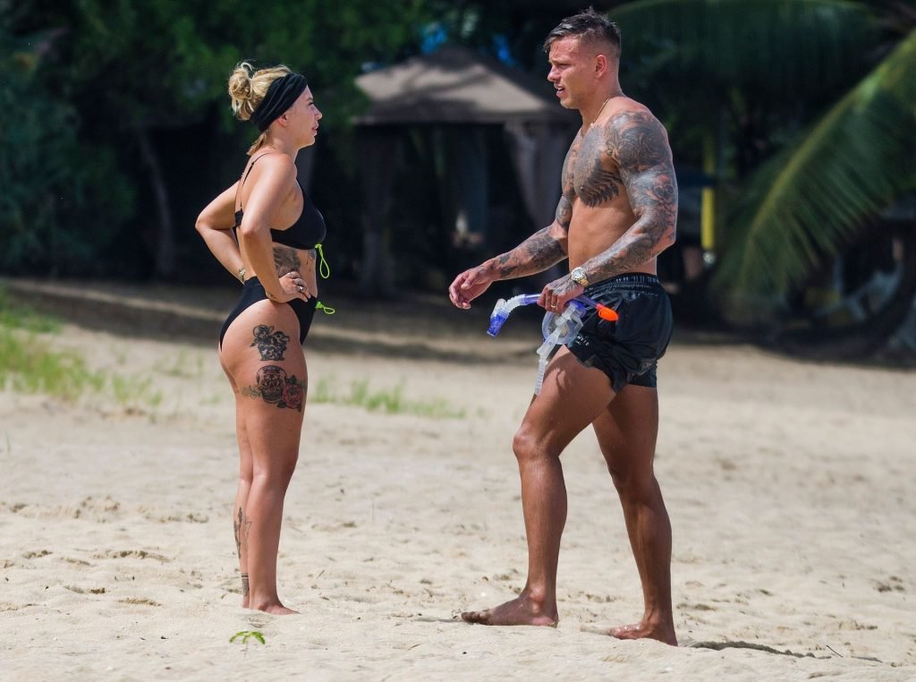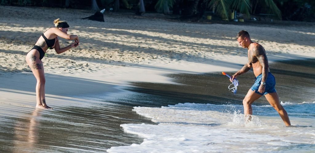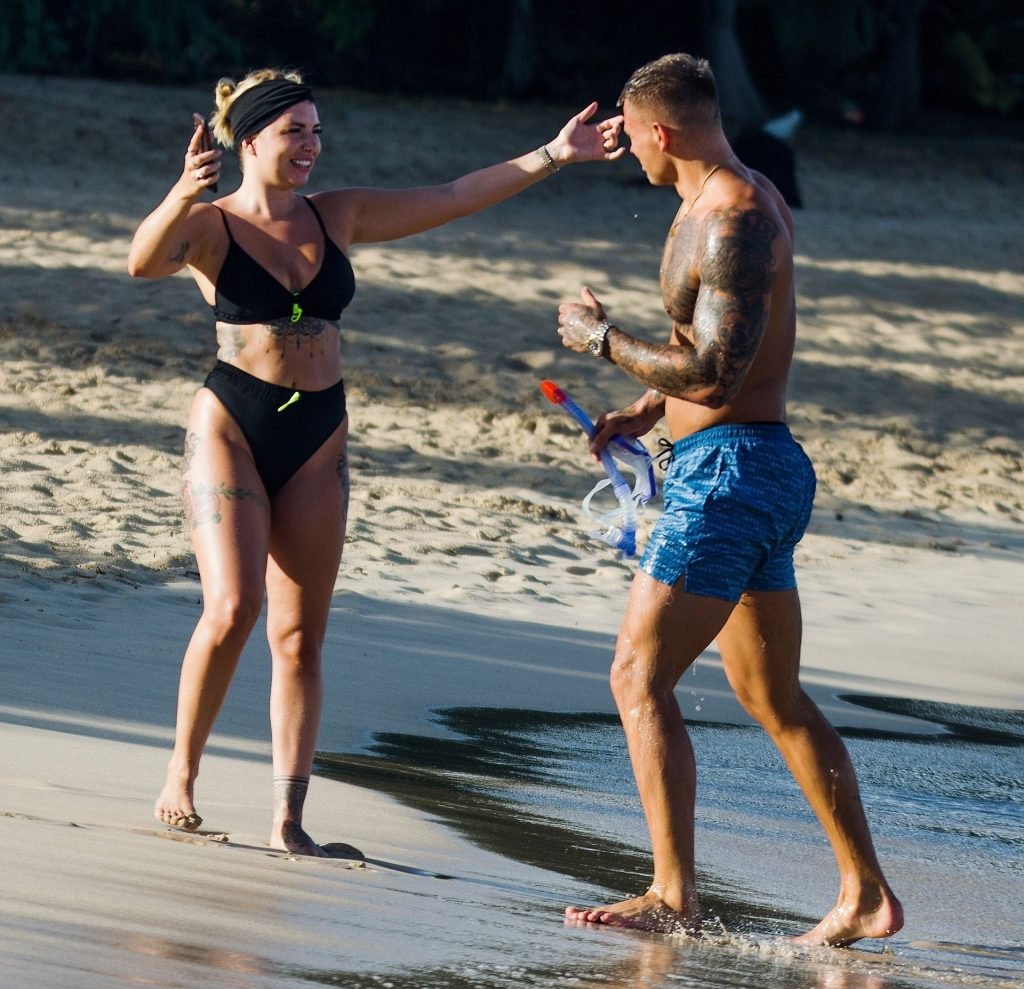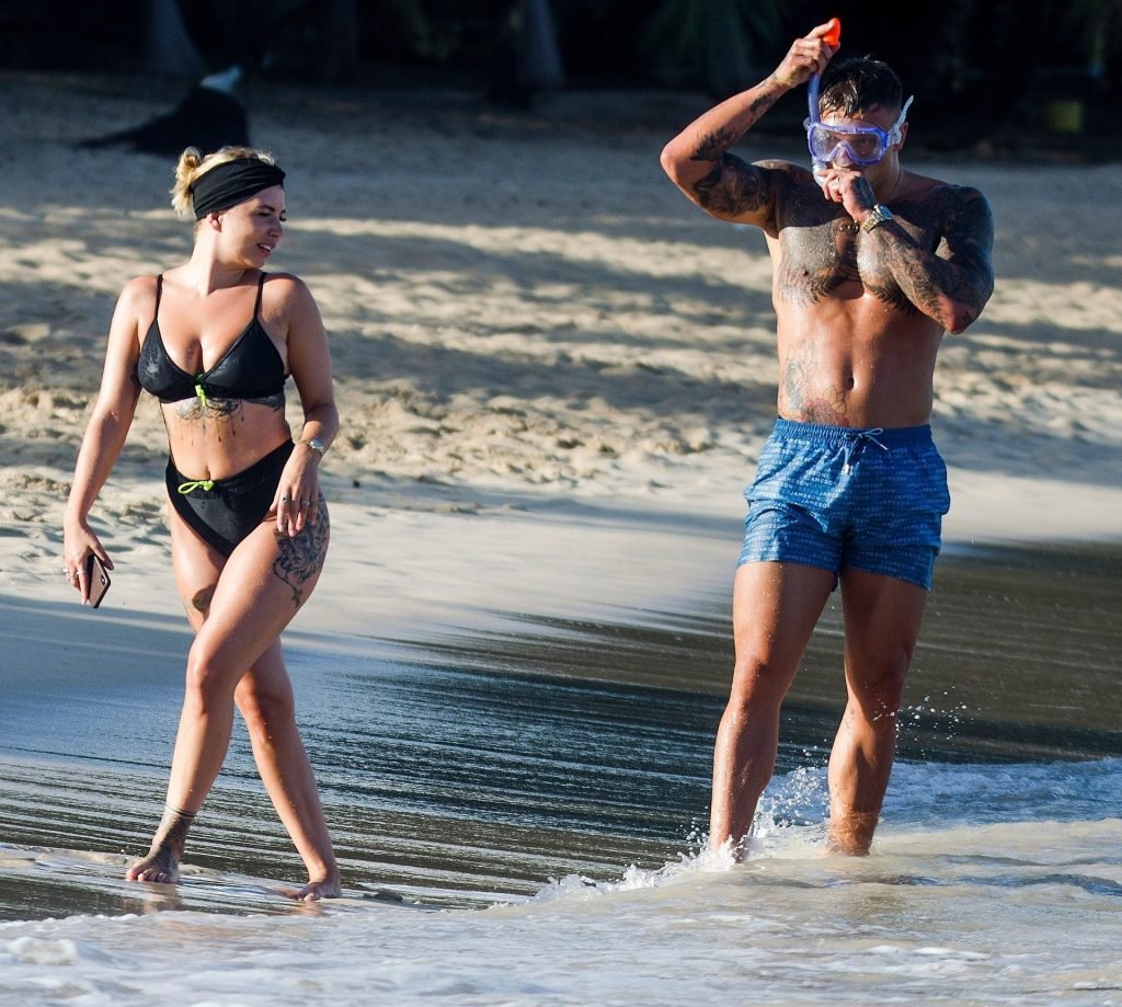 Звезды реалити-шоу Оливия Бакленд и Алекс Боуэн замечены на пляже на Барбадосе, 24.07.2019.