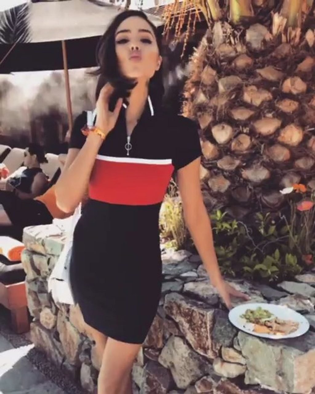 Длинноногая Оливия Калпо посещает вечеринку Lucky Brand Coachella в отеле Arrive в Палм-Спрингс, 13.04.2019. Сначала она появилась в прозрачном розовом наряде, а позже покинула вечеринку в красном и темно-синем платье.