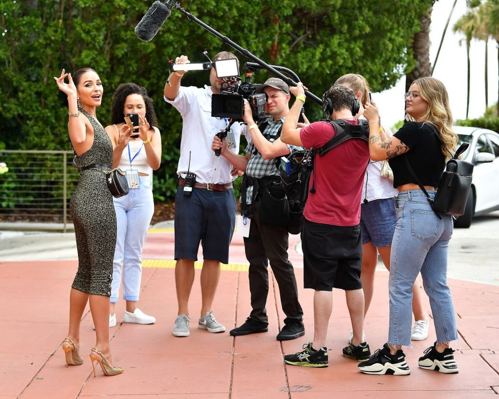 Оливия Калпо встречается с девушками на кастинге Sports Illustrated в отеле W в Майами-Бич, Флорида, 12.07.2019. С ней была съемочная группа, пока она задавала вопросы и общалась с потенциальными моделями для купальников Sports Illustrated.