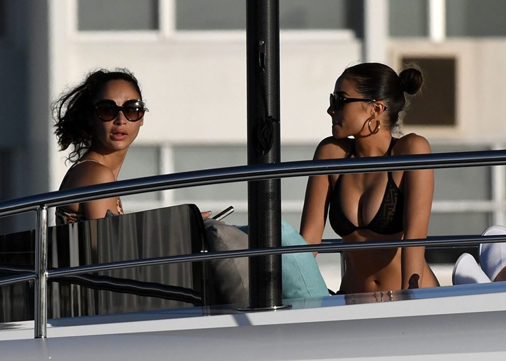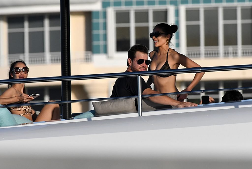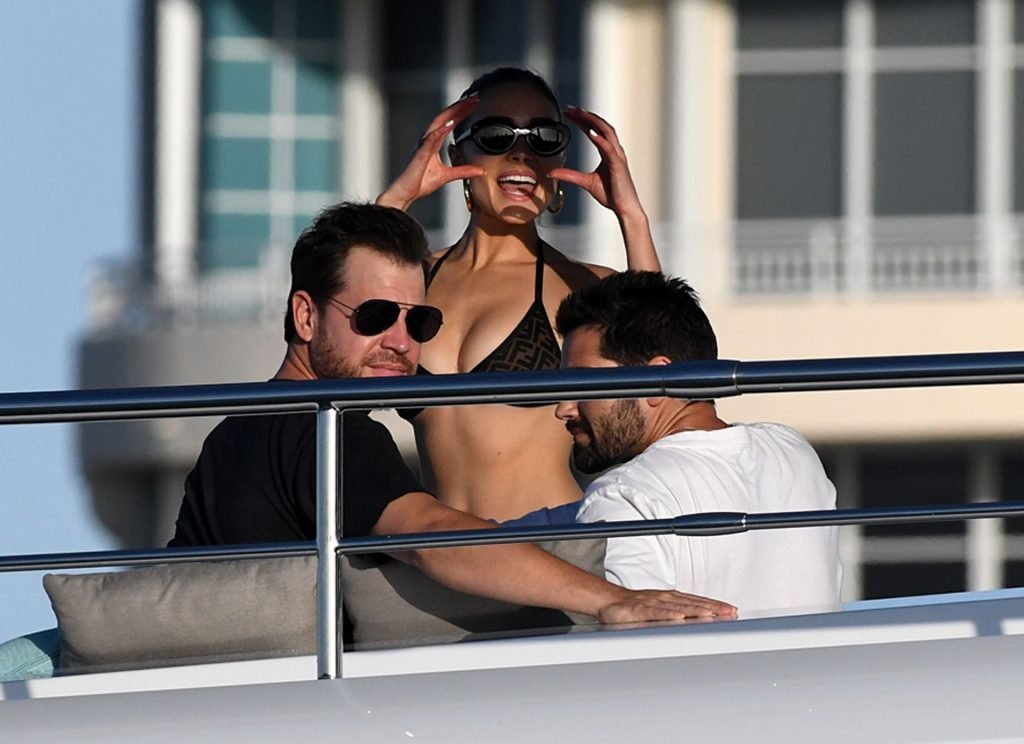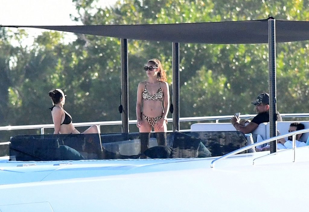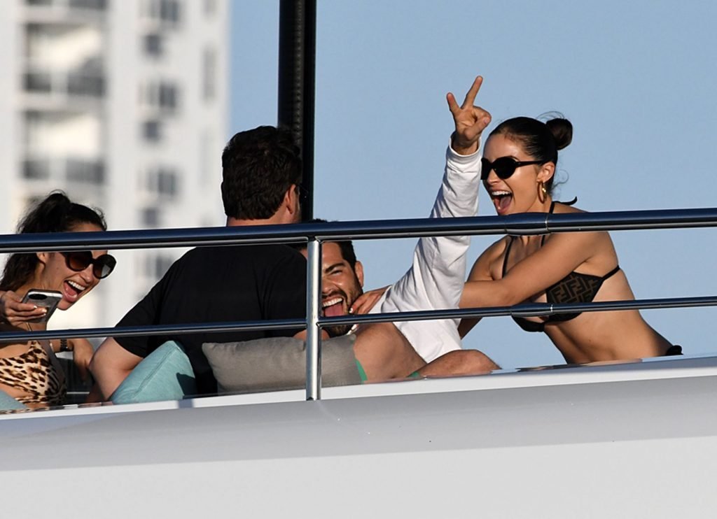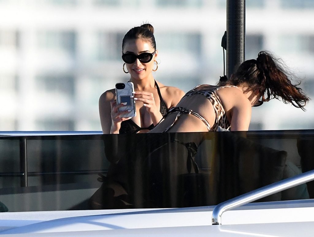 Модель в бикини Оливия Калпо присоединяется к актеру Джесси Меткалфу и его девушке Кара Сантана на мега-яхте Utopia IV в Майами-Бич, 30.12.2018.
