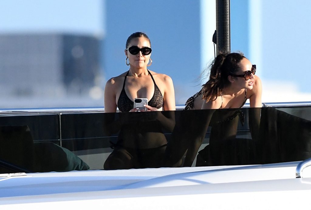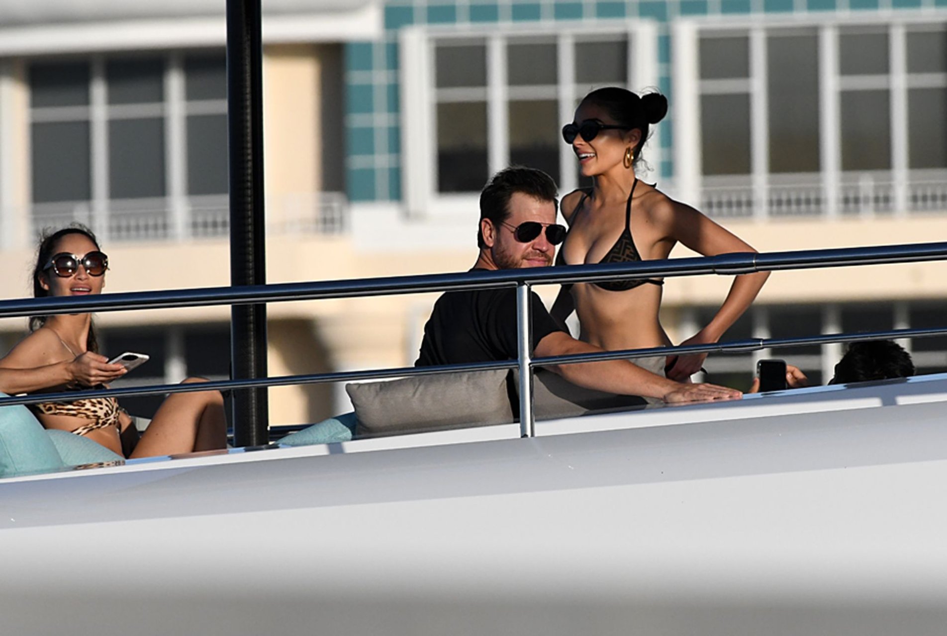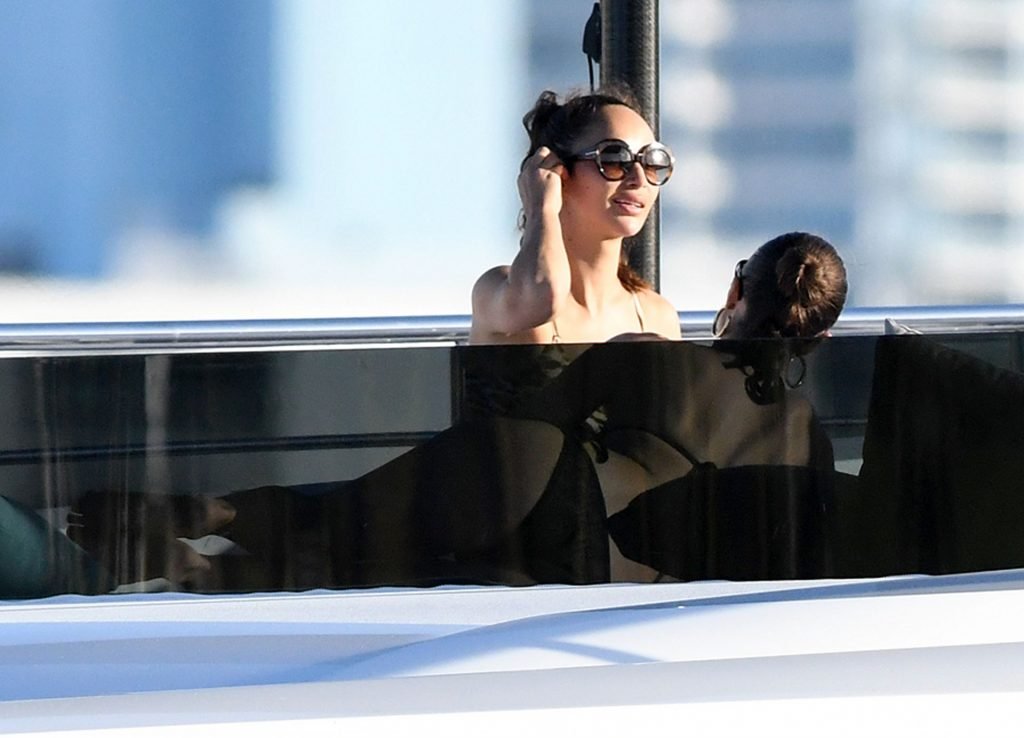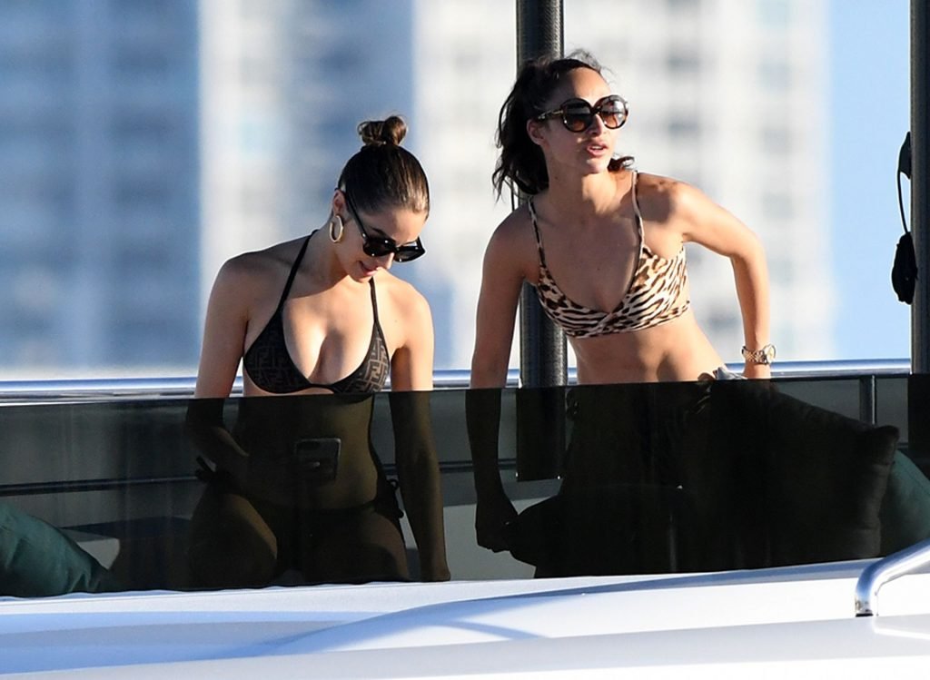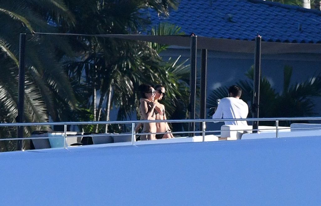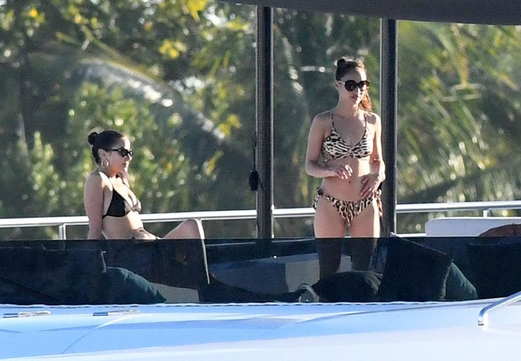 Модель в бикини Оливия Калпо присоединяется к актеру Джесси Меткалфу и его девушке Кара Сантана на мега-яхте Utopia IV в Майами-Бич, 30.12.2018.
