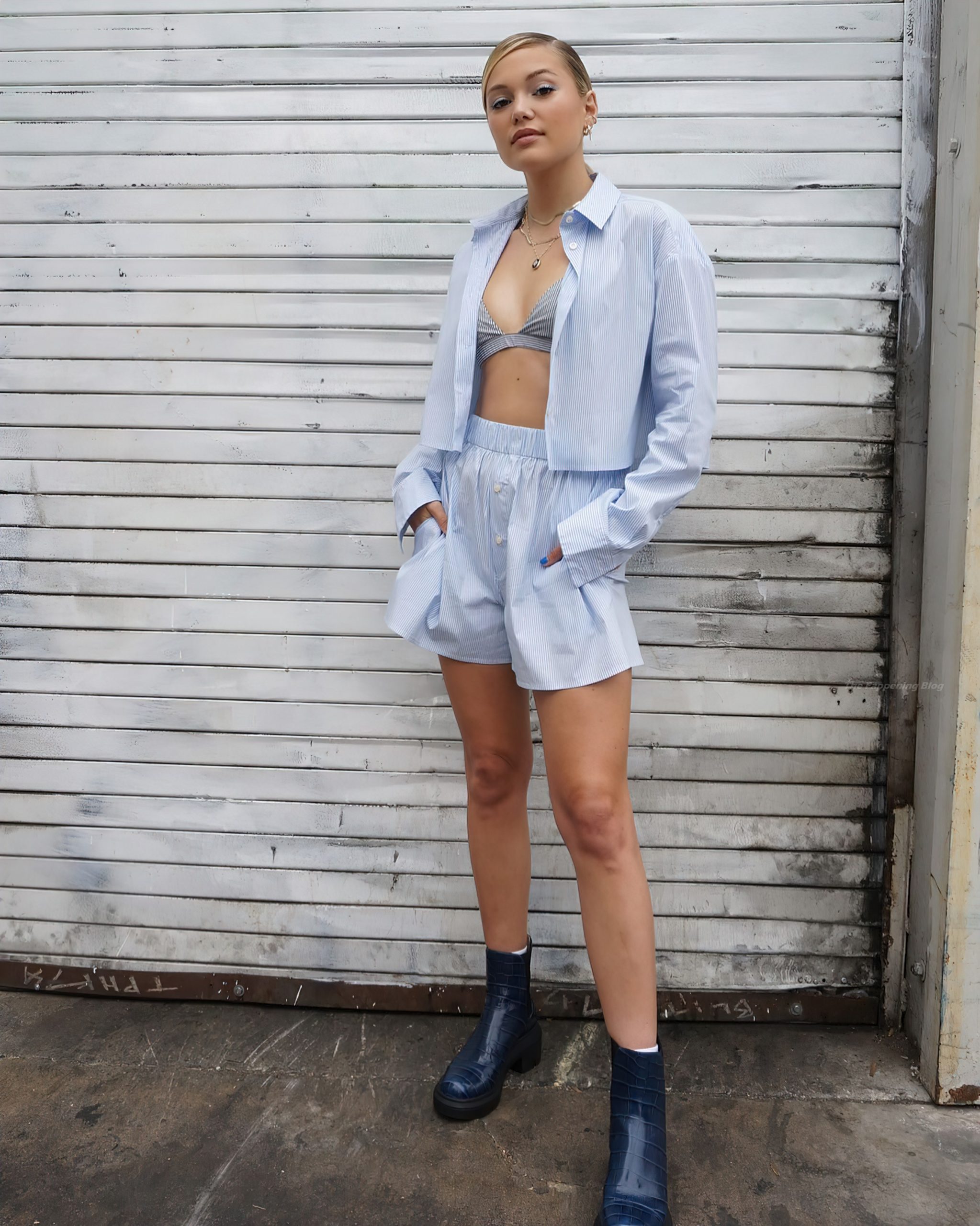 Американская актриса и певица Оливия Холт демонстрирует свои сексуальные ноги, позируя в шортах и бюстгальтере для фотосессии бренда The Andamane (май 2021).