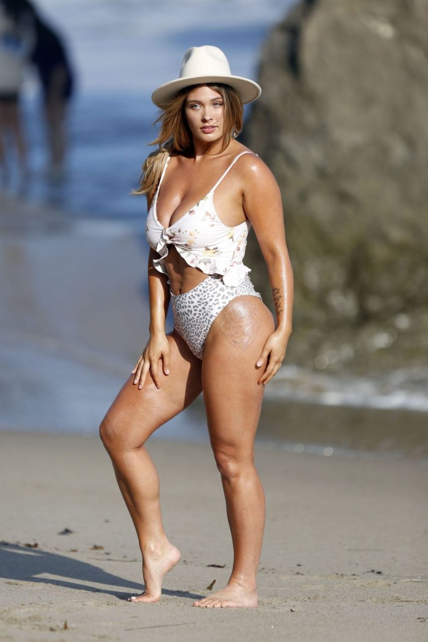 Модель Wilhelmina и инфлюенсер Оливия Джун демонстрирует свои изгибы в откровенном несочетающемся комплекте, позируя для фотосессии на пляже в Малибу, 07.08.2019.