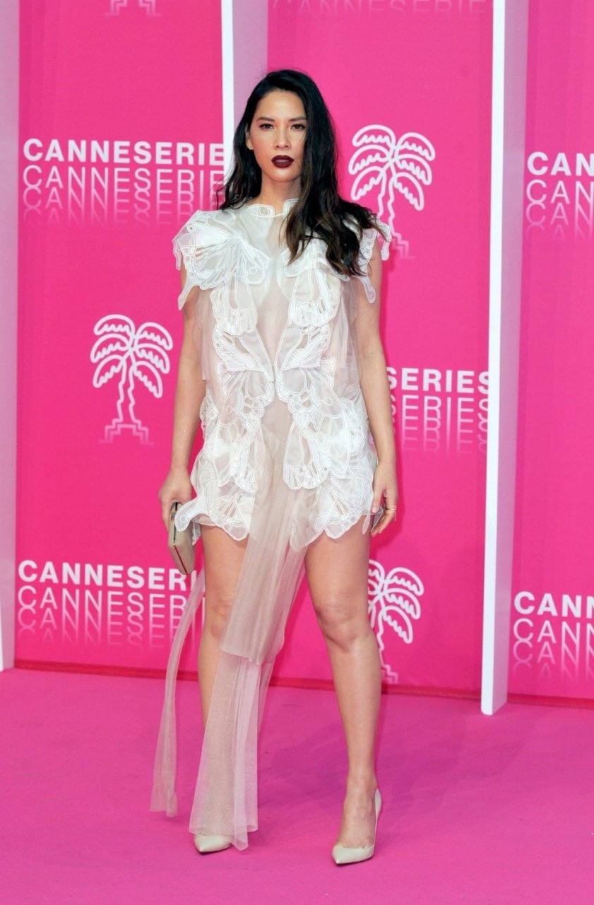 Длинноногая Оливия Манн позирует для фотоколла во время фестиваля международных сериалов Canneseries 2019 в Palais des Festivals, 04/08/2019.