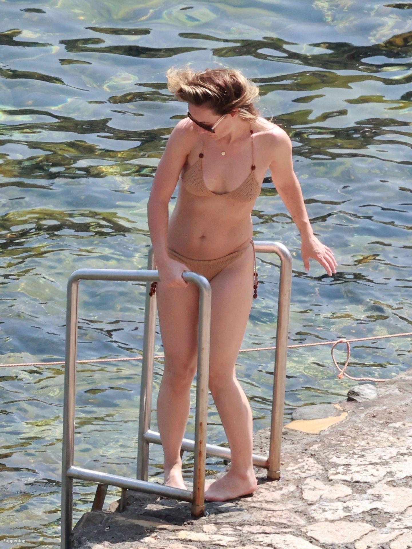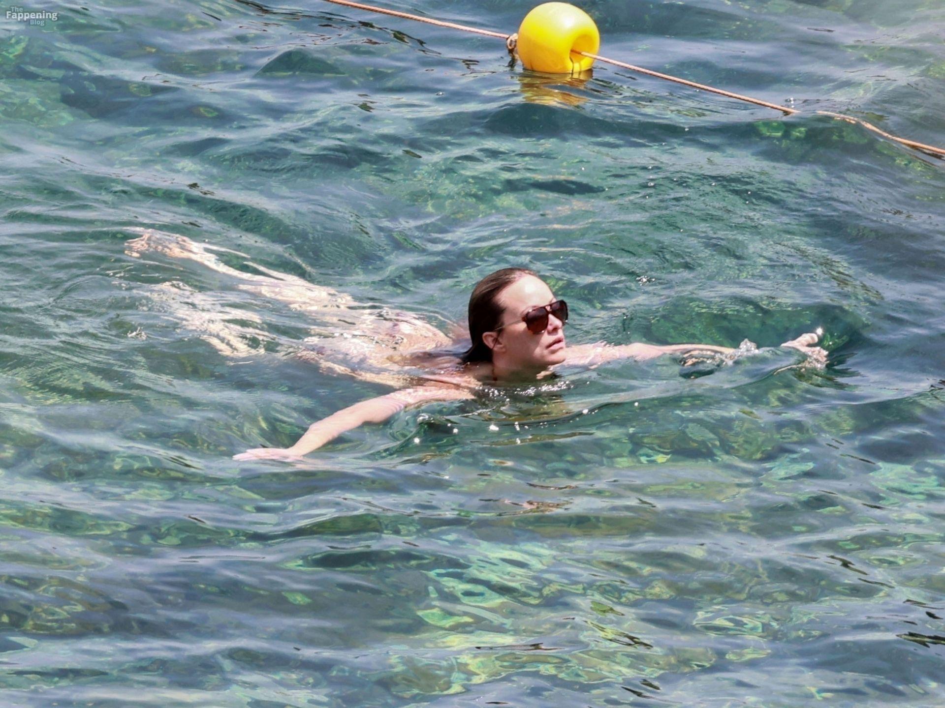 Режиссёр “Не волнуйся, дорогая”, 40 лет, выглядела безупречно в коричневом двухсекционном бикини, когда она окунулась в кристально чистые воды Средиземного моря.