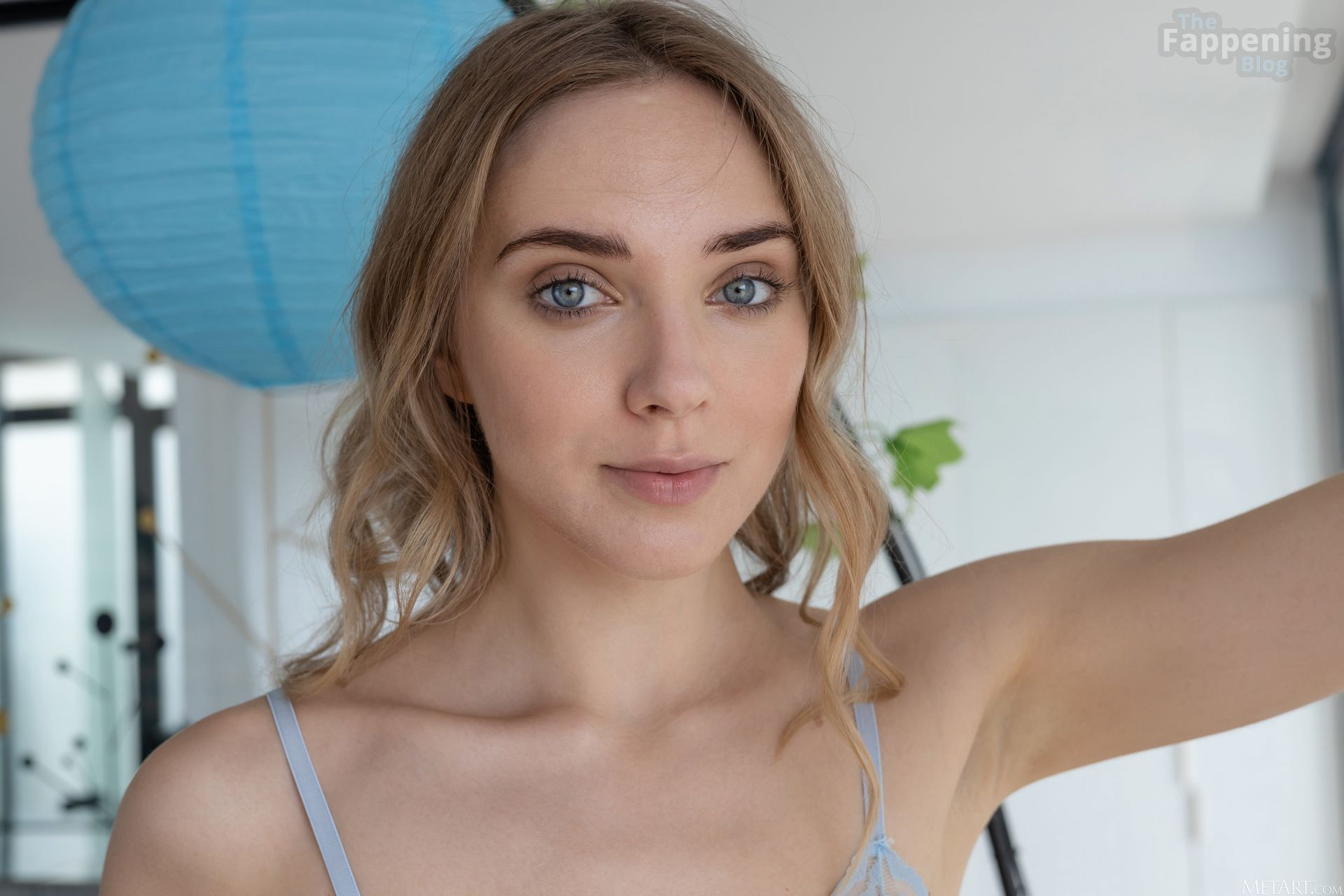 Красивые естественные груди, аккуратно бритая киска и красивые голубые глаза!