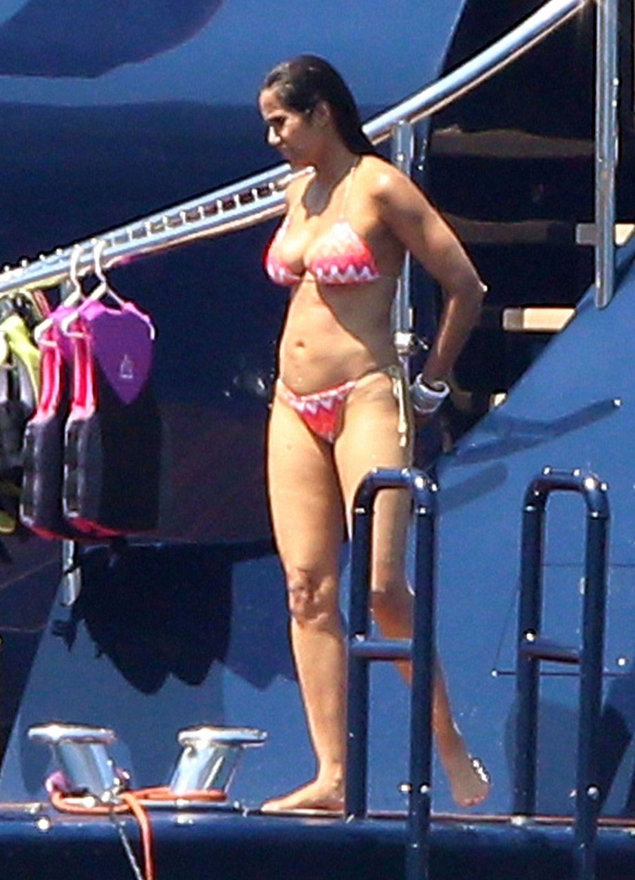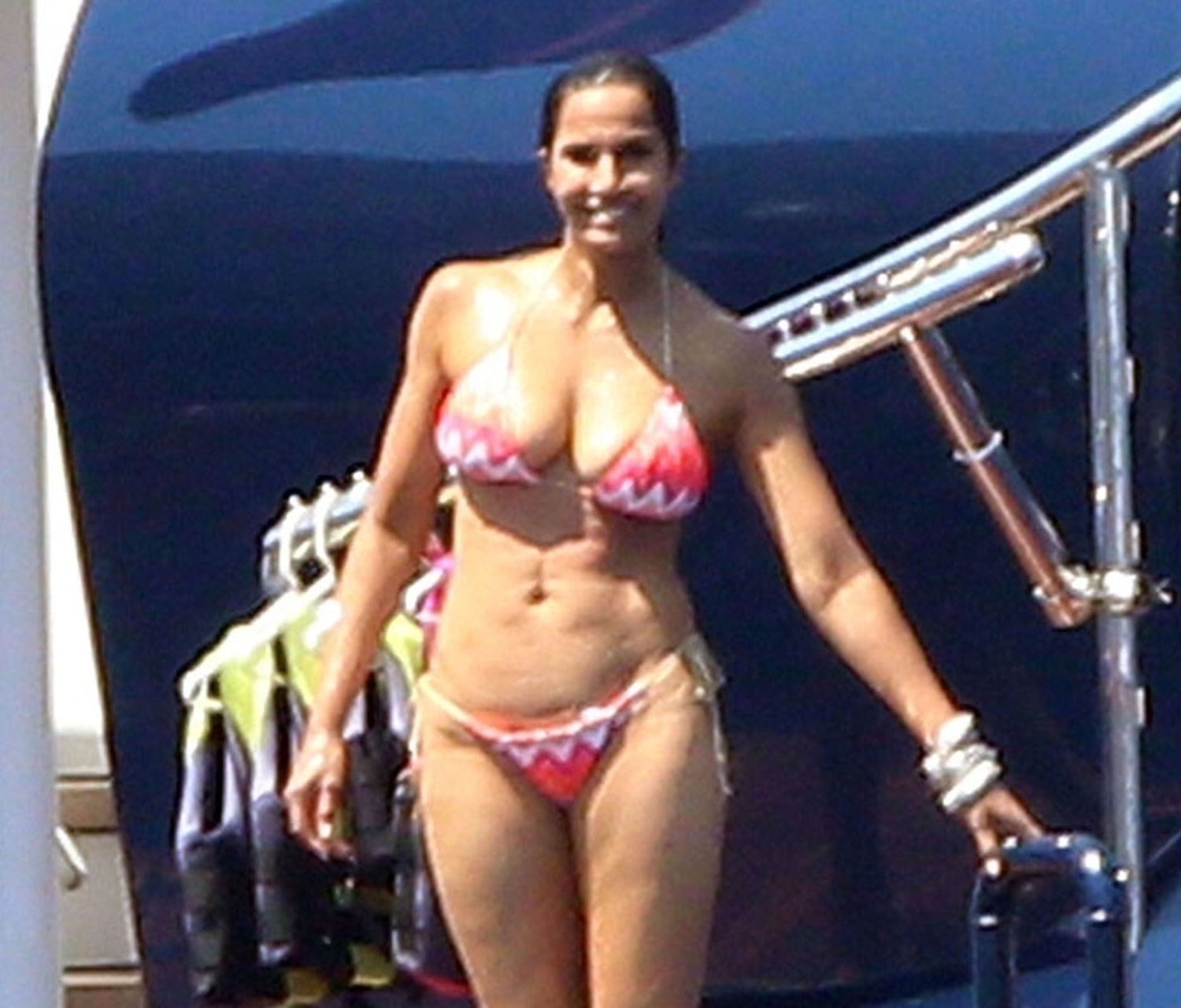 Padma Lakshmi (47) выглядела потрясающе, демонстрируя своё подтянутое тело и стройную фигуру в крошечном бикини во время отпуска на Капри, 01.08.2018.
