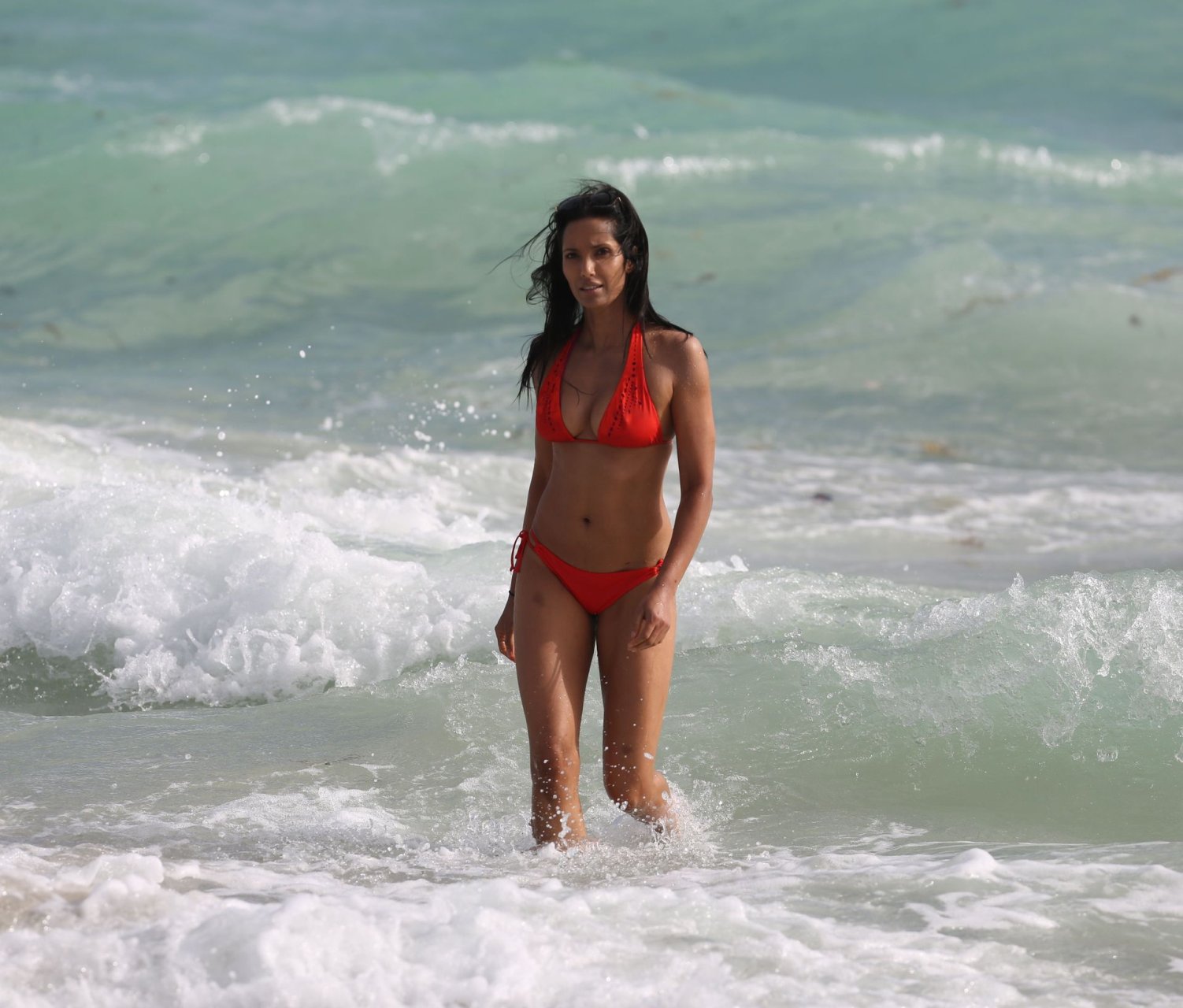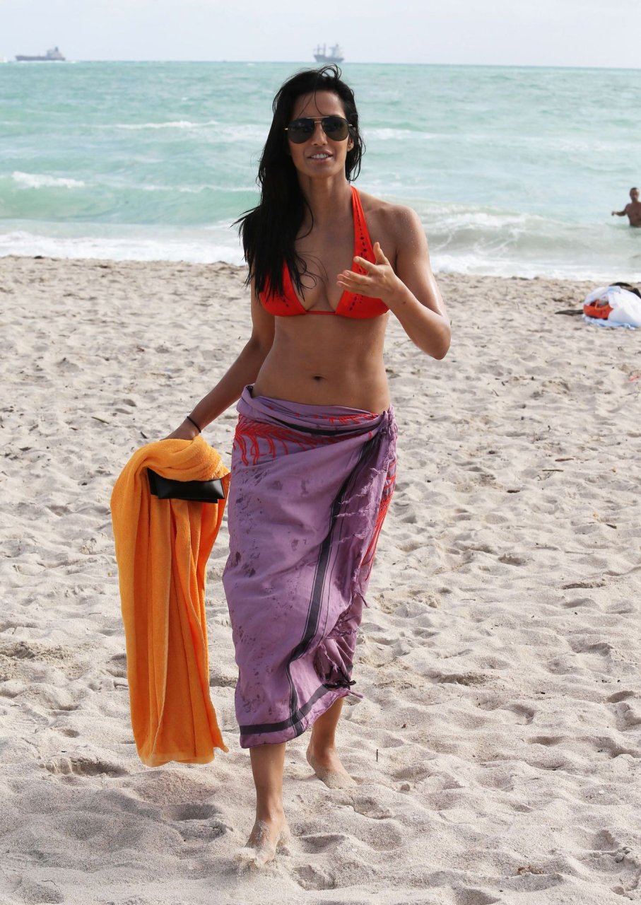 Падма Лакшми была замечена в оранжевом бикини, наслаждаясь днем на пляже в Майами, 12/08/2013. Конечно, не все индийские женщины являются эталоном красоты, но Падма Лакшми — одна из самых сексуальных женщин. Несмотря на свой возраст, она выглядит просто потрясающе, и бикини идеально подчеркивает ее фигуру.