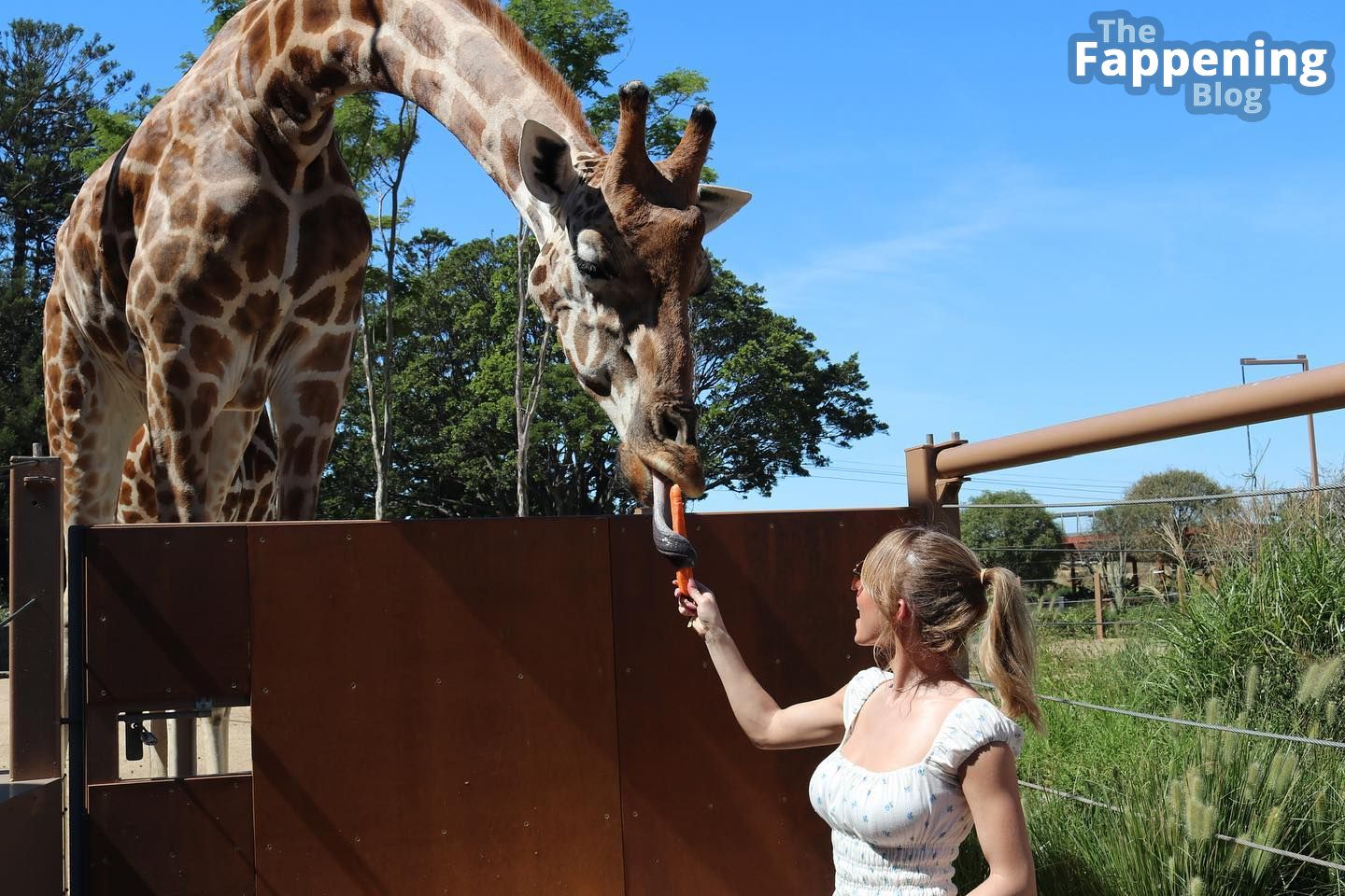 Сидни Суини внимательно наблюдала за длинным языком жирафа и тщательно его изучала – Instagram, 21.03.2023.