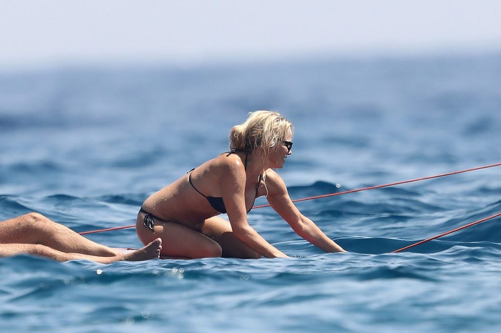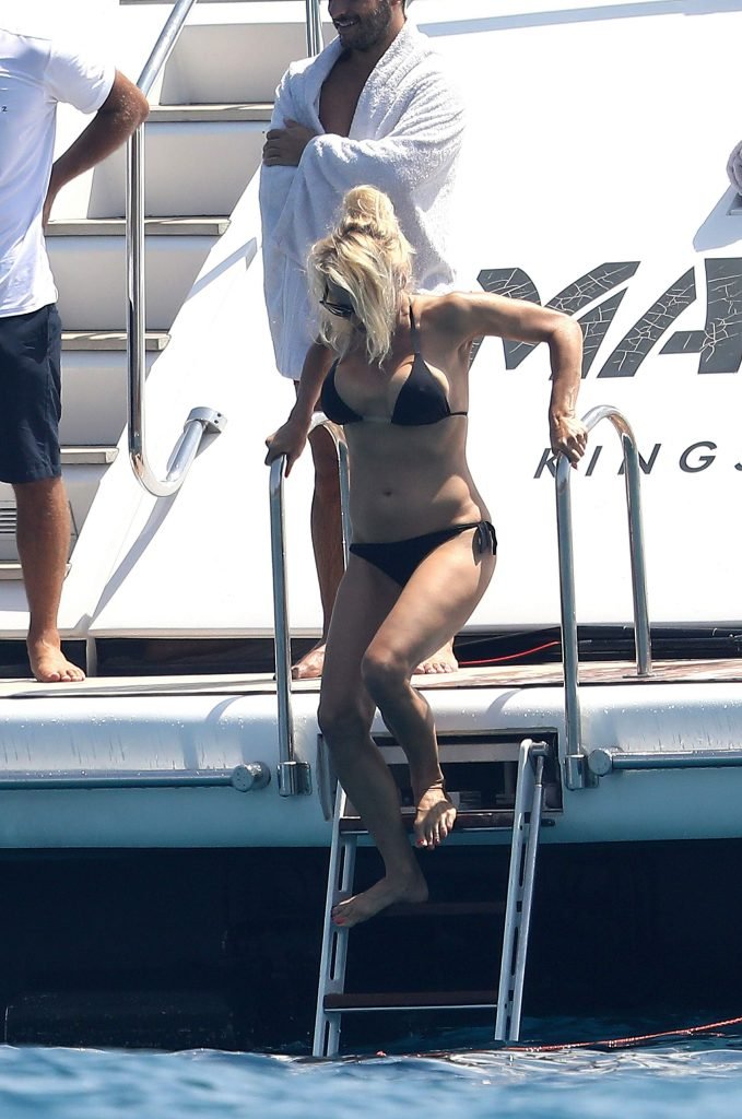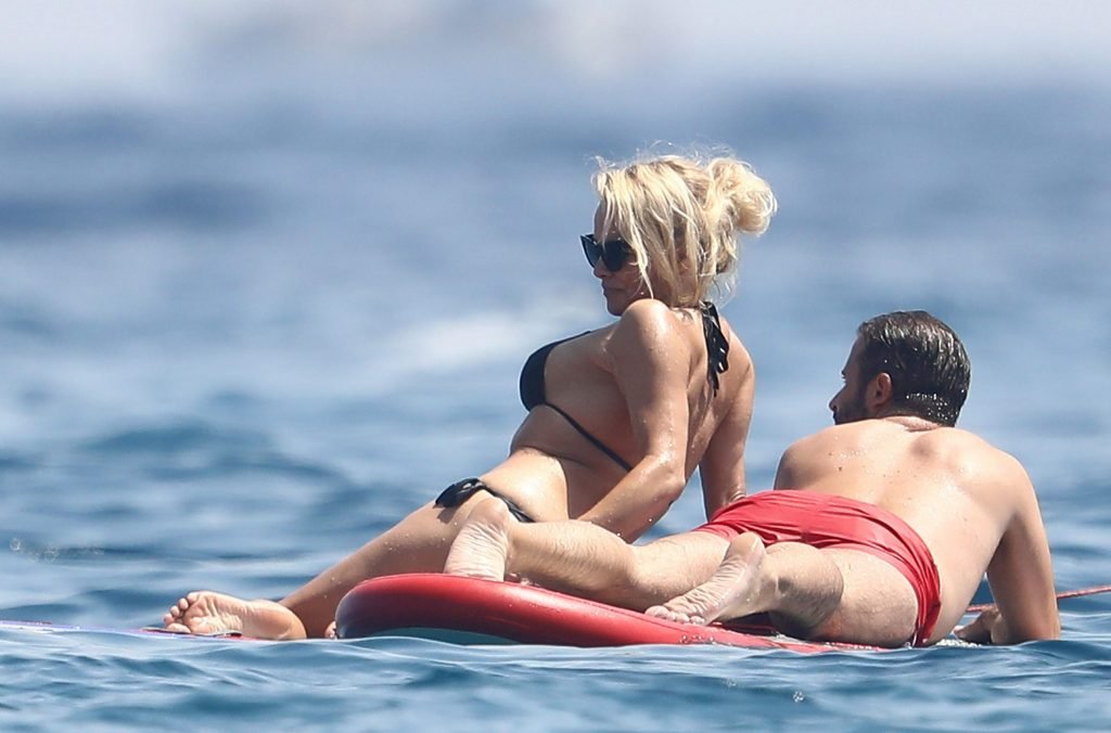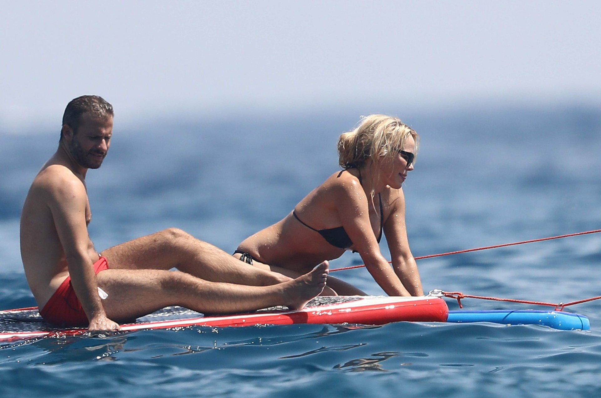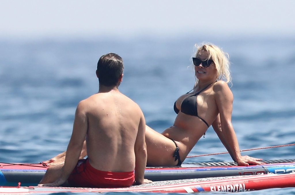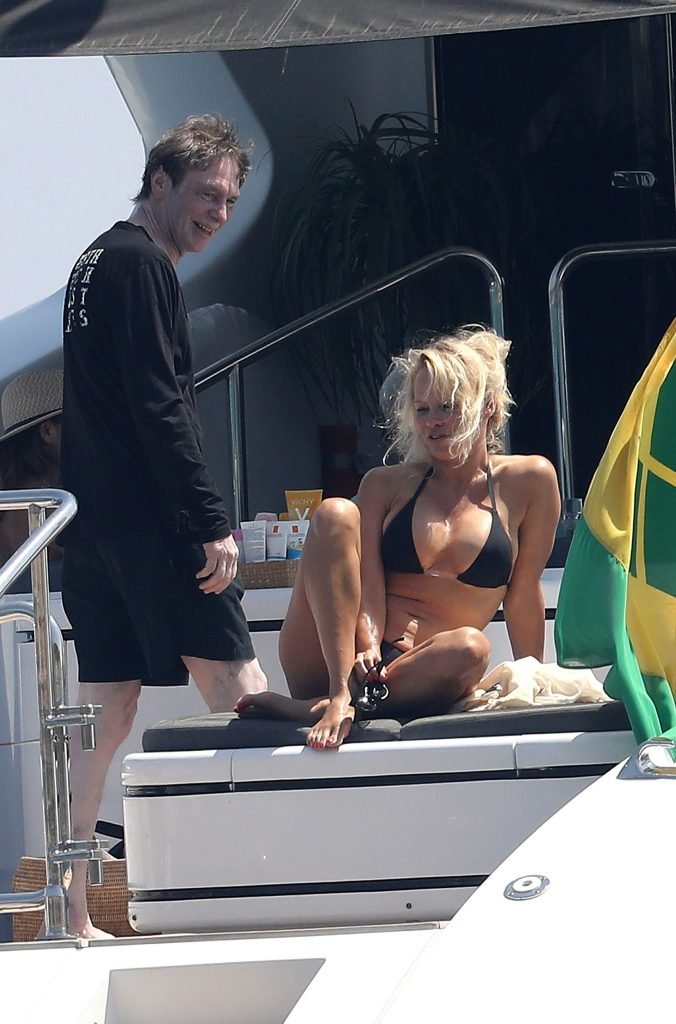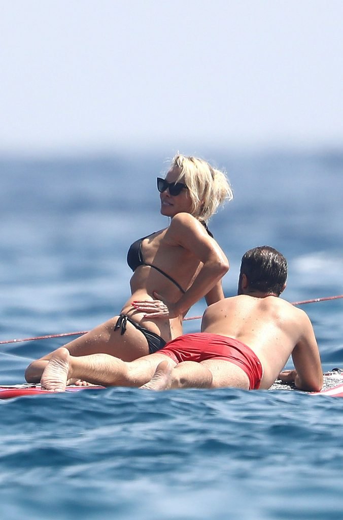 Pamela Anderson демонстрирует свое горячее тело в черном бикини на отдыхе во Франции, 04.08.2017. Памела Андерсон — канадско-американская актриса (Спасатели Малибу, 2017), модель, активистка. Возраст – 50.