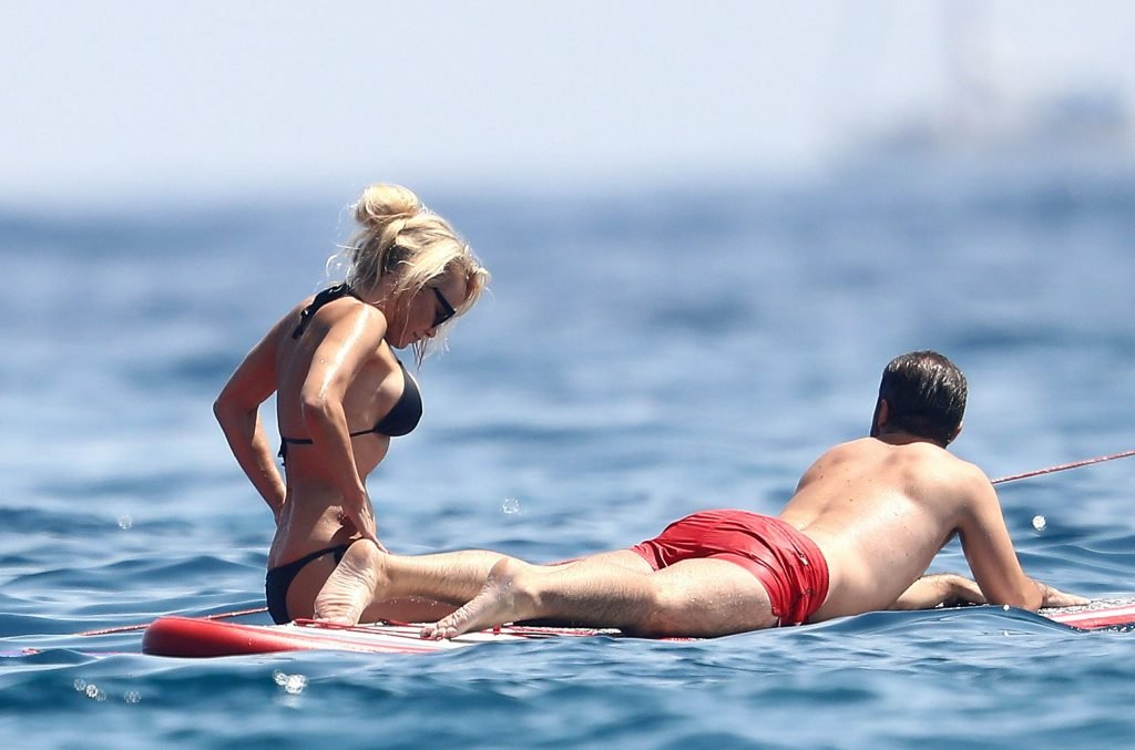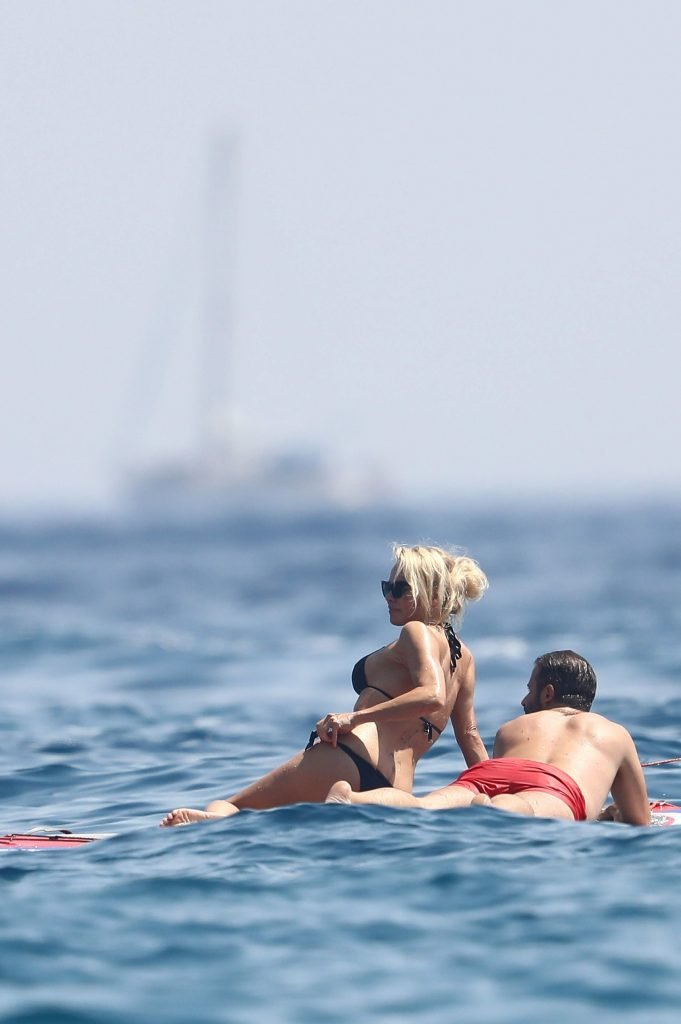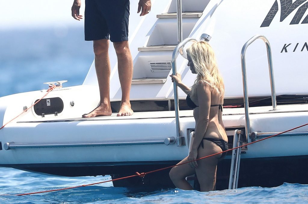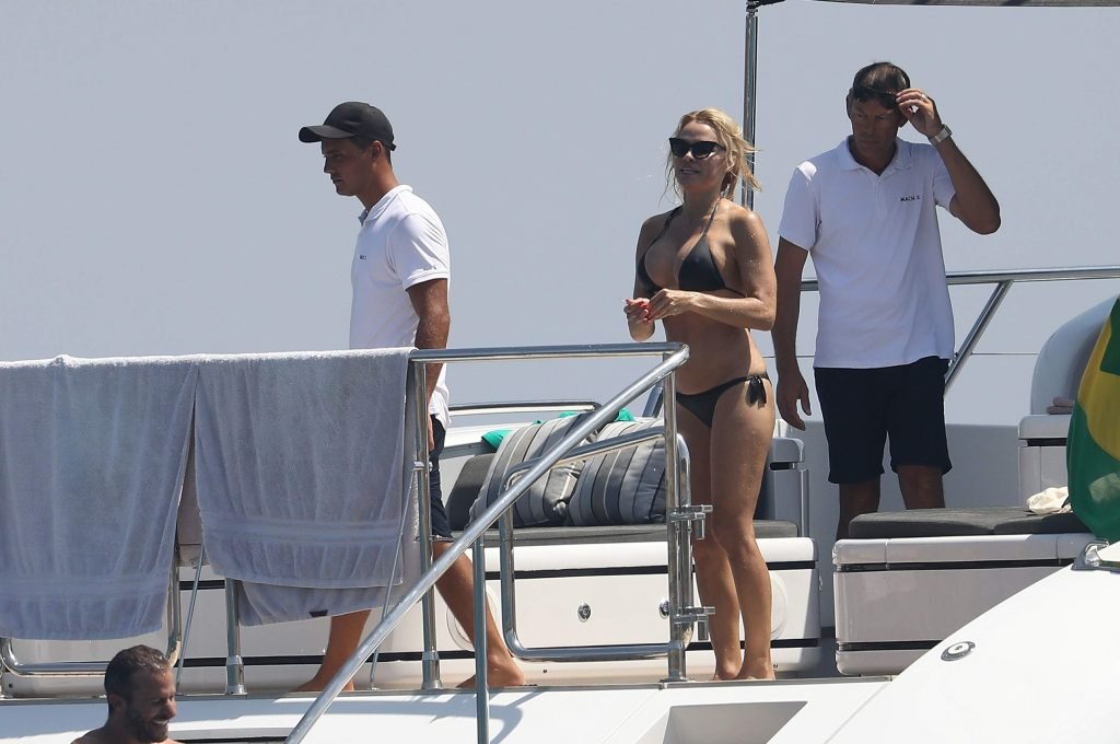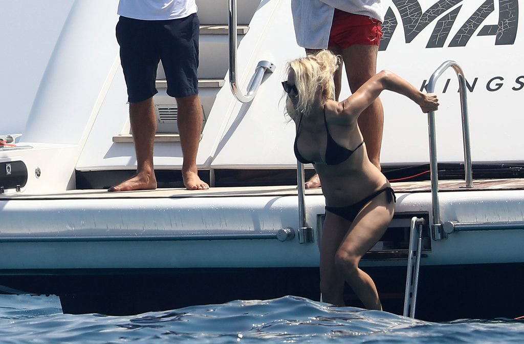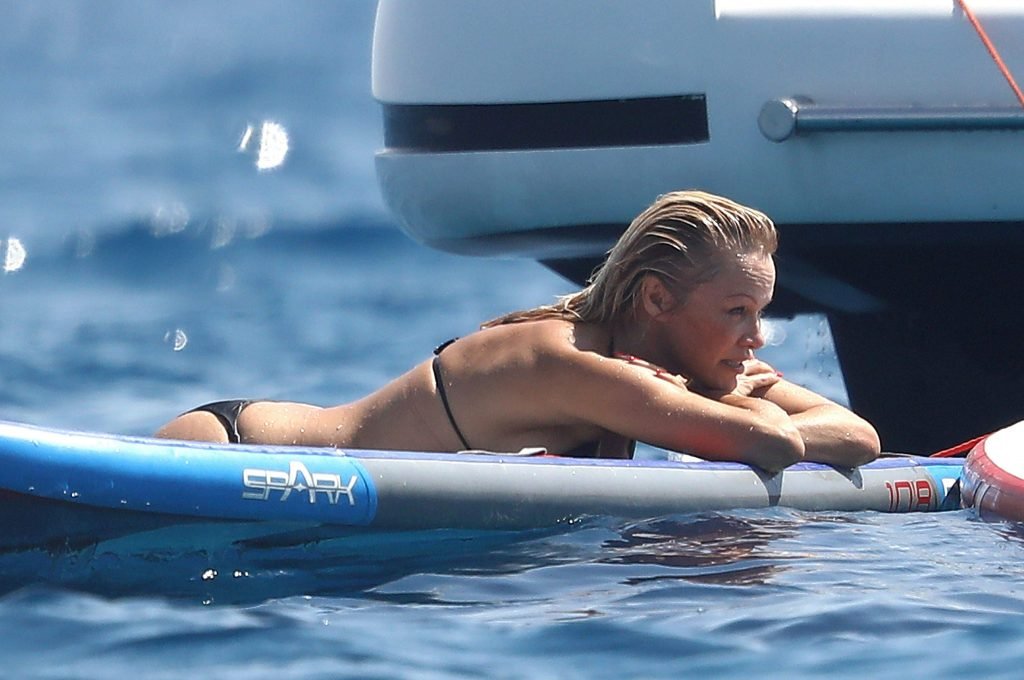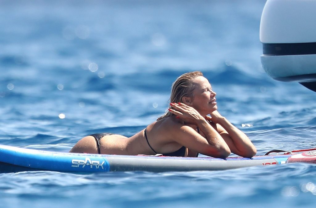 Pamela Anderson демонстрирует свое горячее тело в черном бикини на отдыхе во Франции, 04.08.2017. Памела Андерсон — канадско-американская актриса (Спасатели Малибу, 2017), модель, активистка. Возраст – 50.