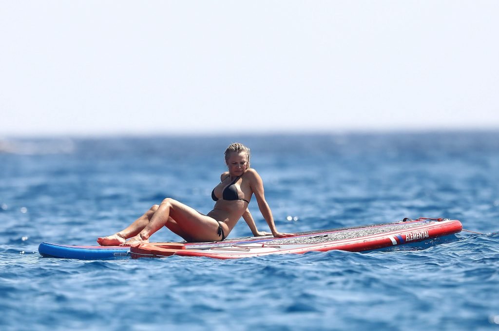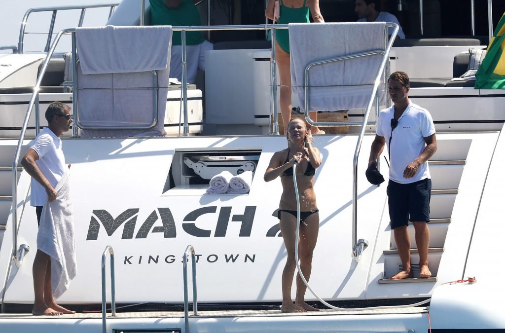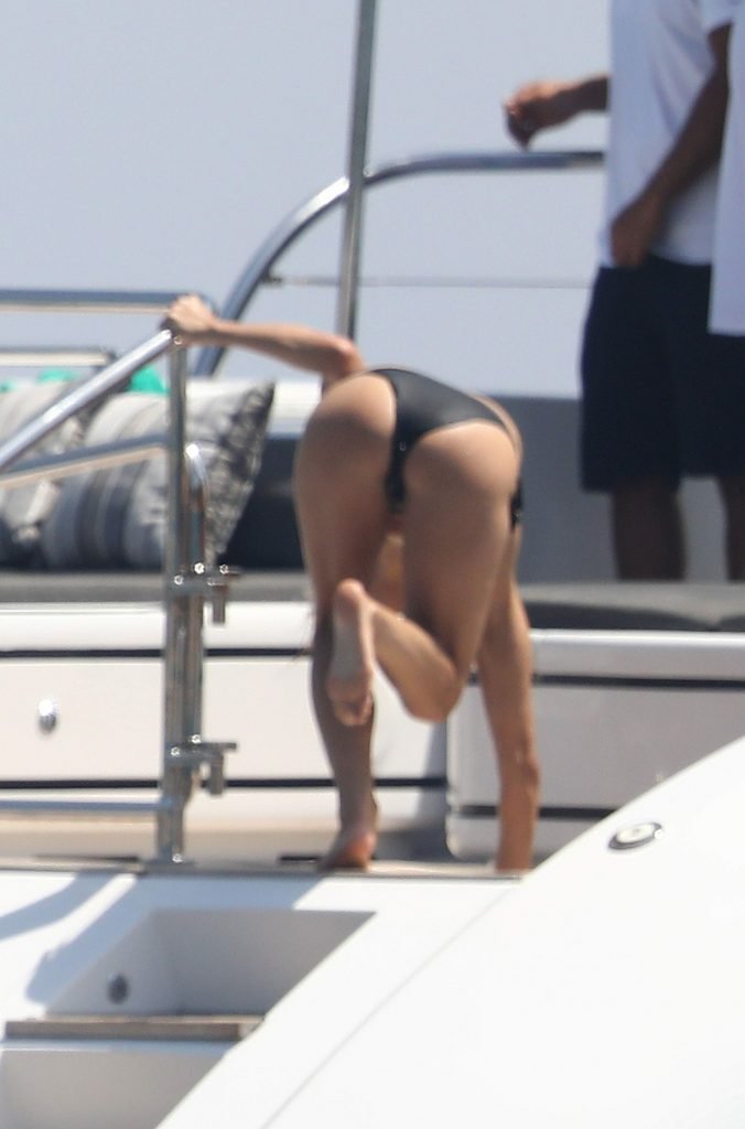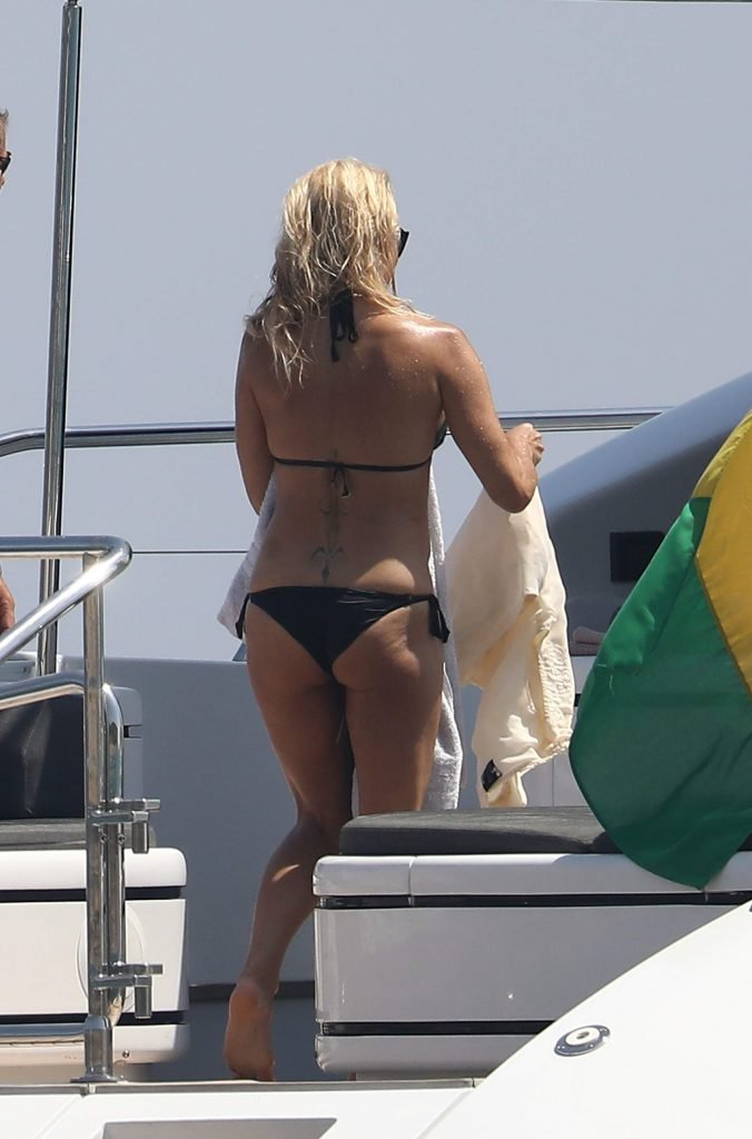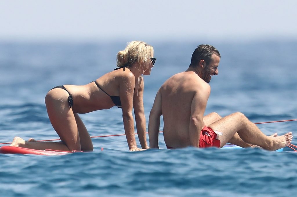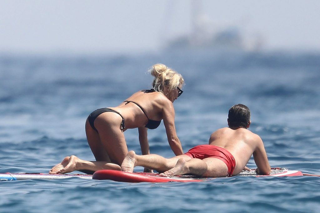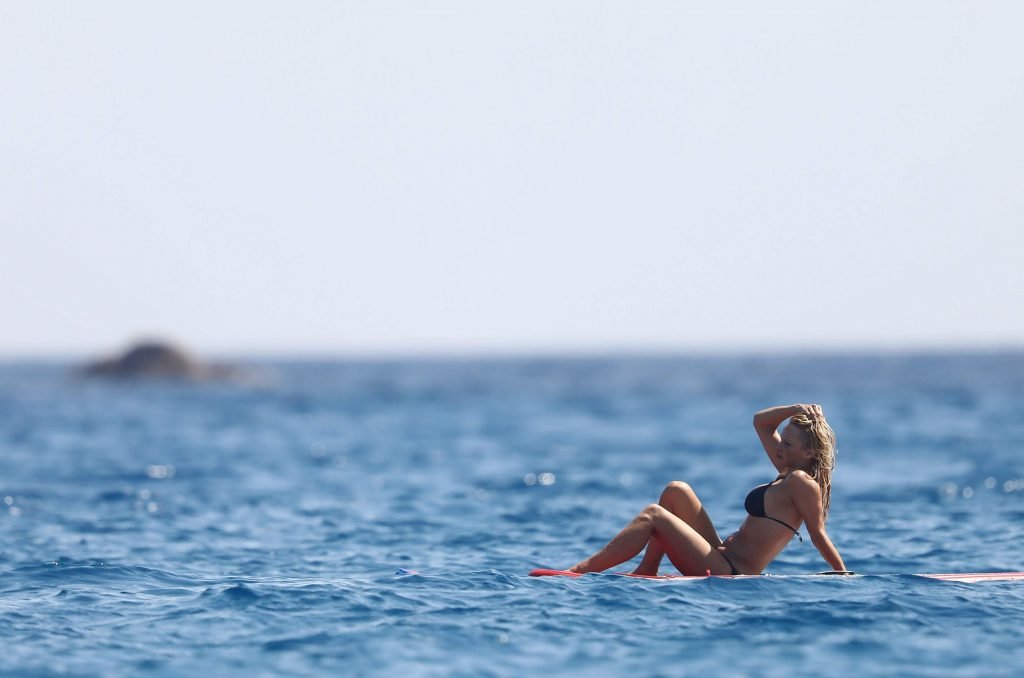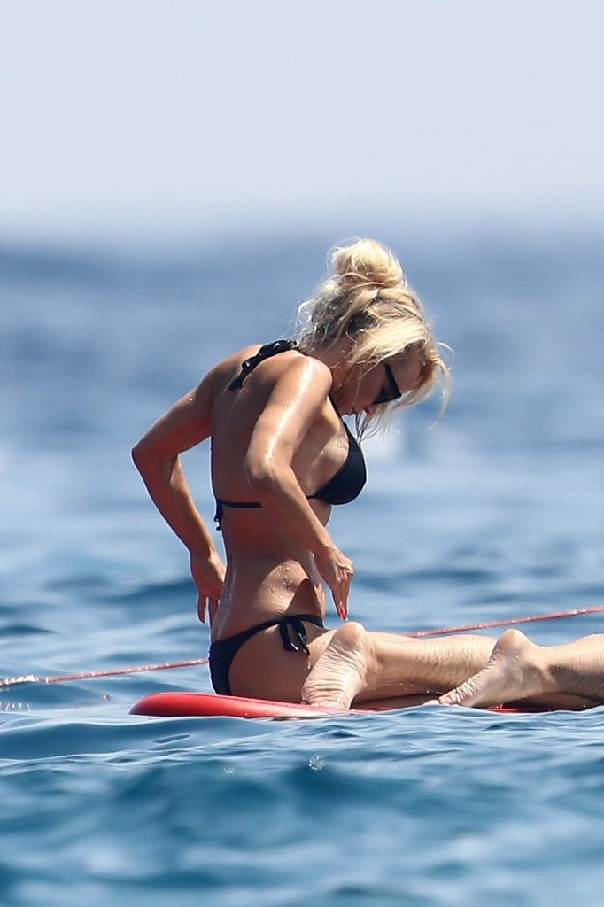 Pamela Anderson демонстрирует свое горячее тело в черном бикини на отдыхе во Франции, 04.08.2017. Памела Андерсон — канадско-американская актриса (Спасатели Малибу, 2017), модель, активистка. Возраст – 50.