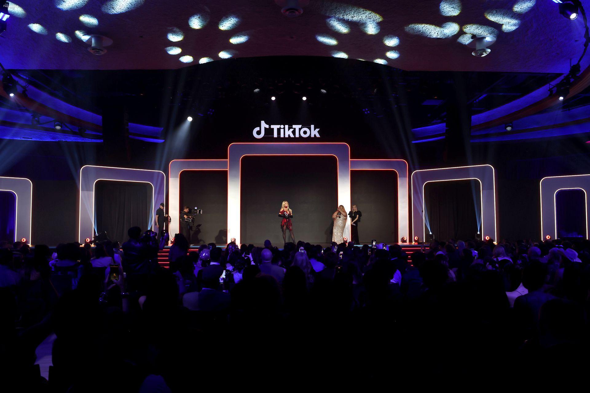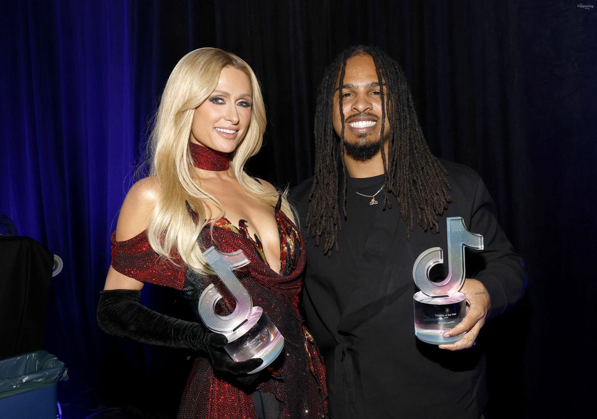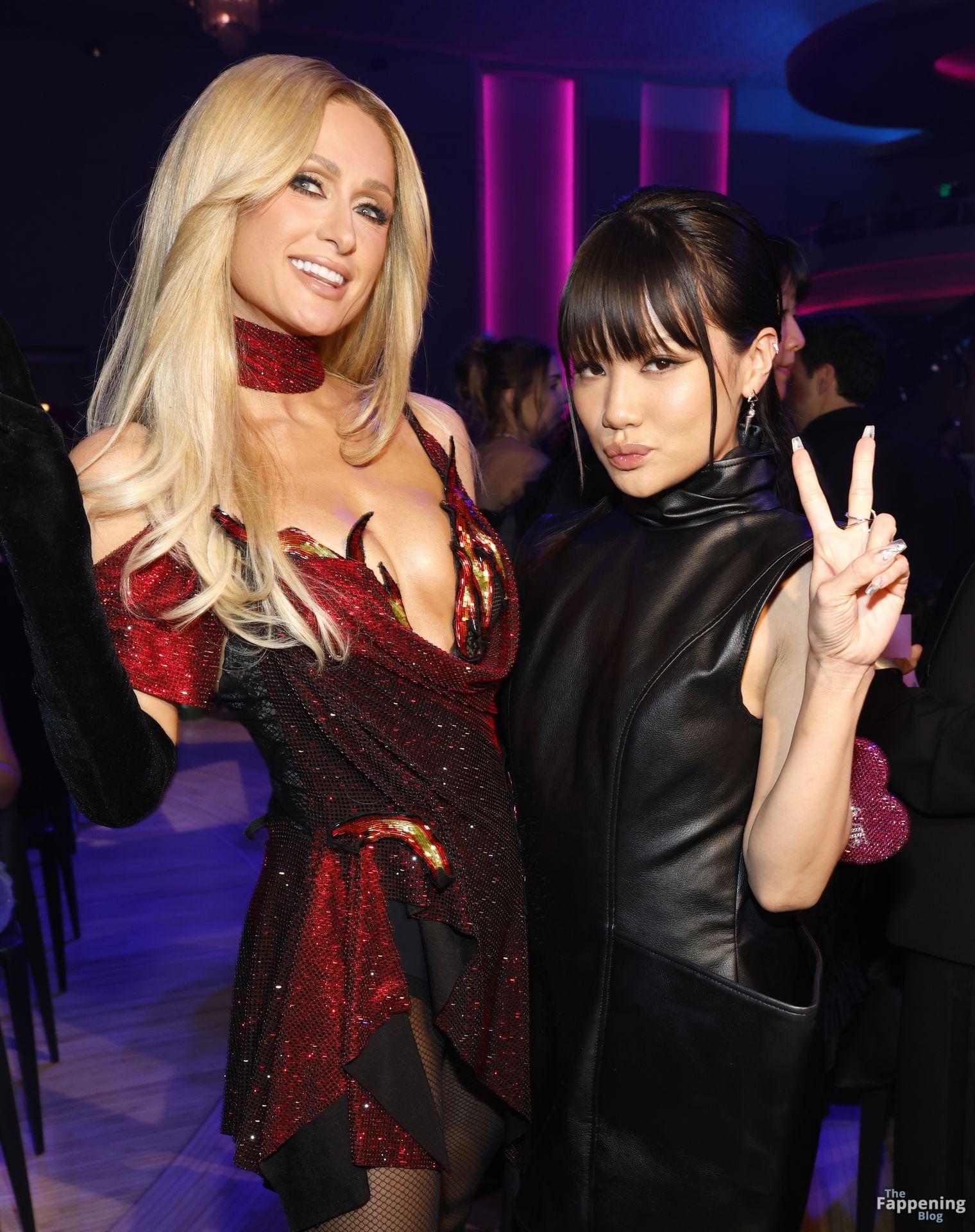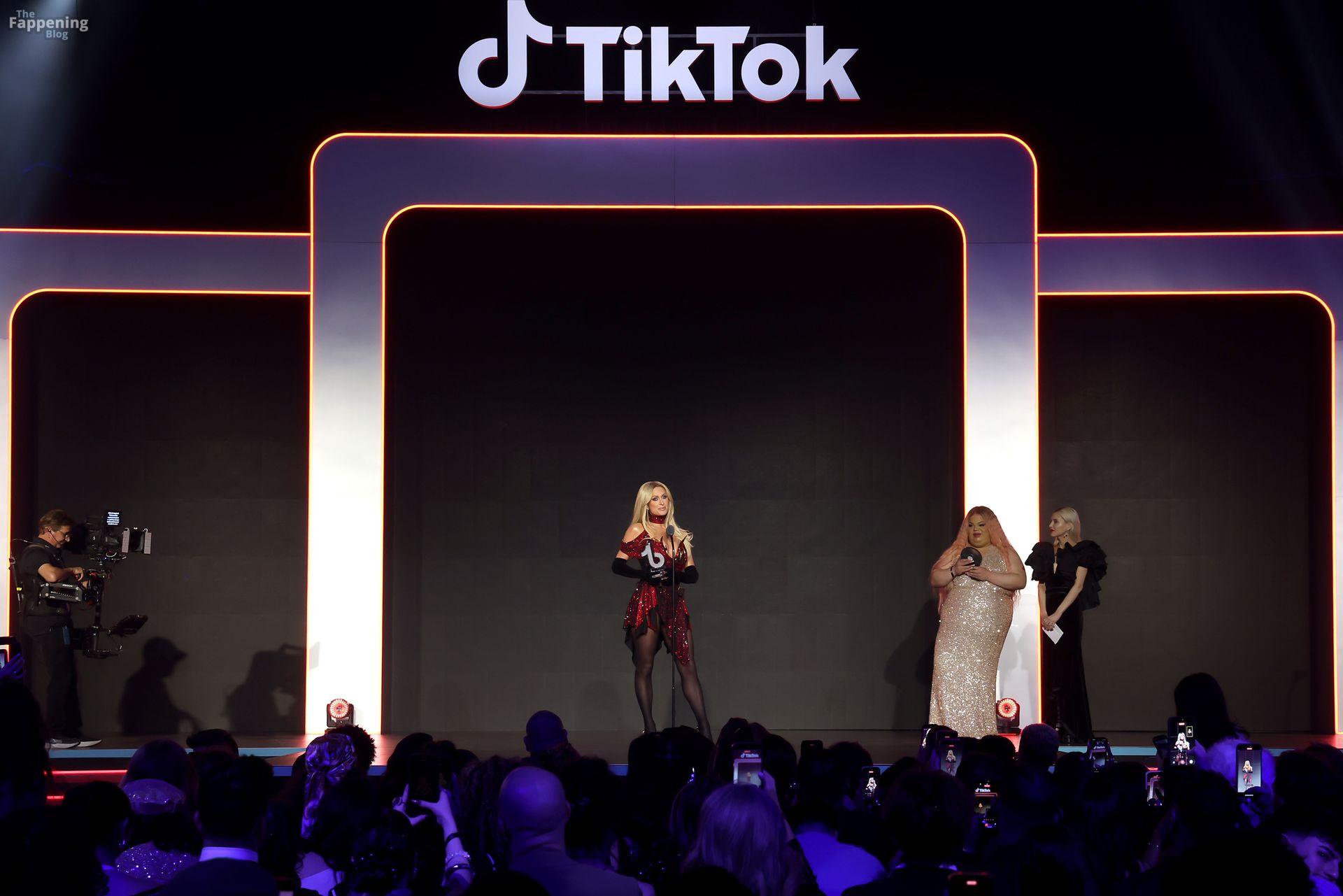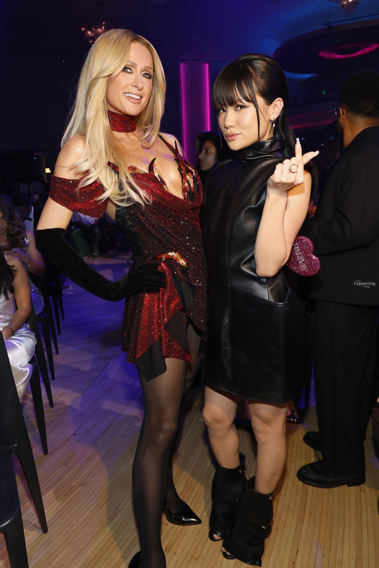 Пэрис Хилтон демонстрирует свои сексуальные ноги и грудь в огненно-красном платье на премии TikTok 2025.