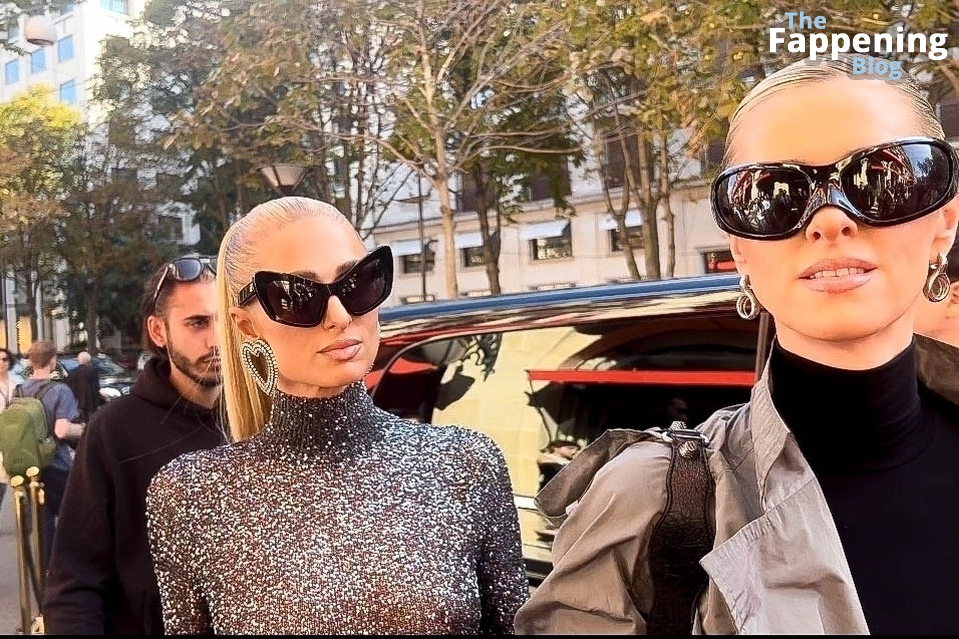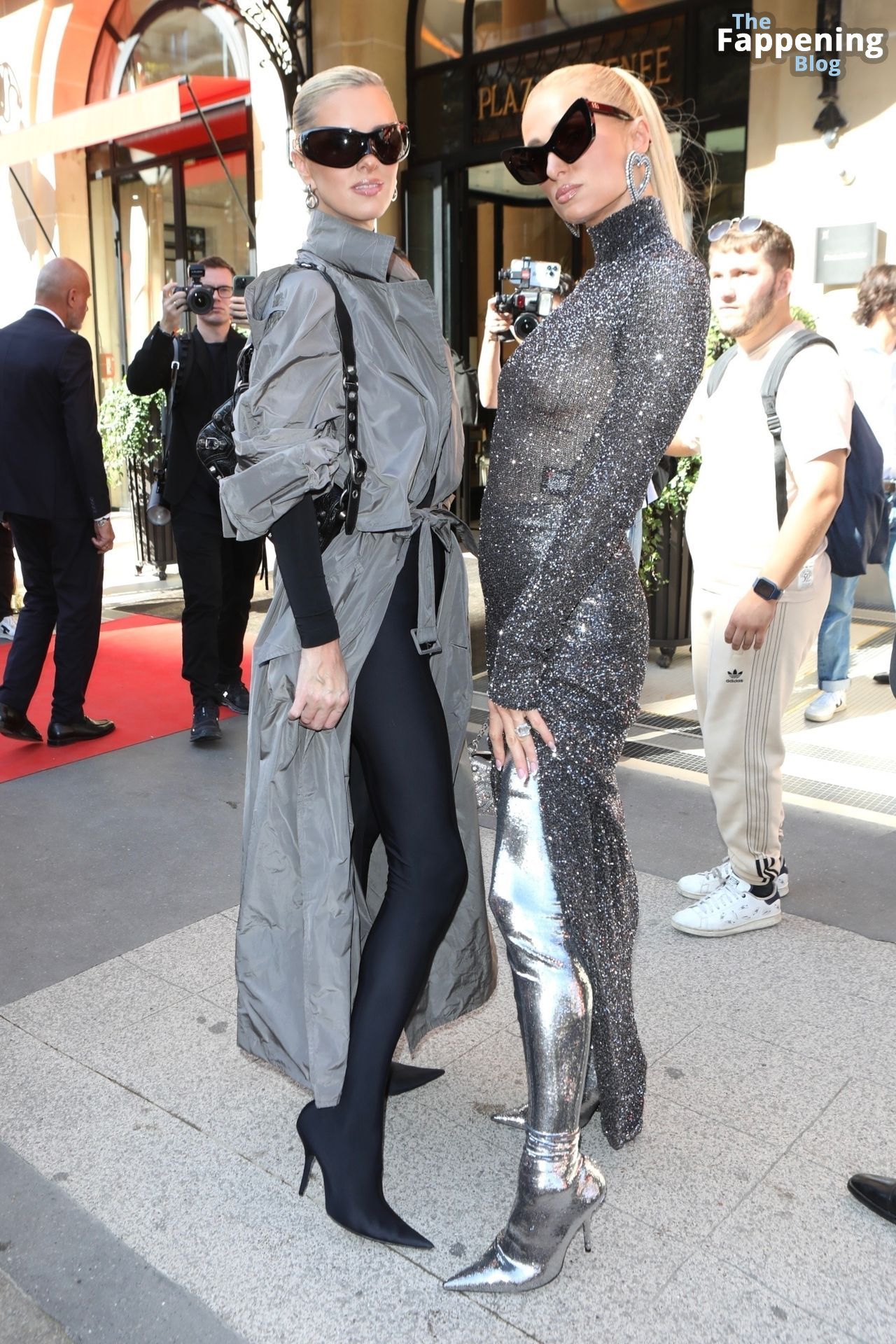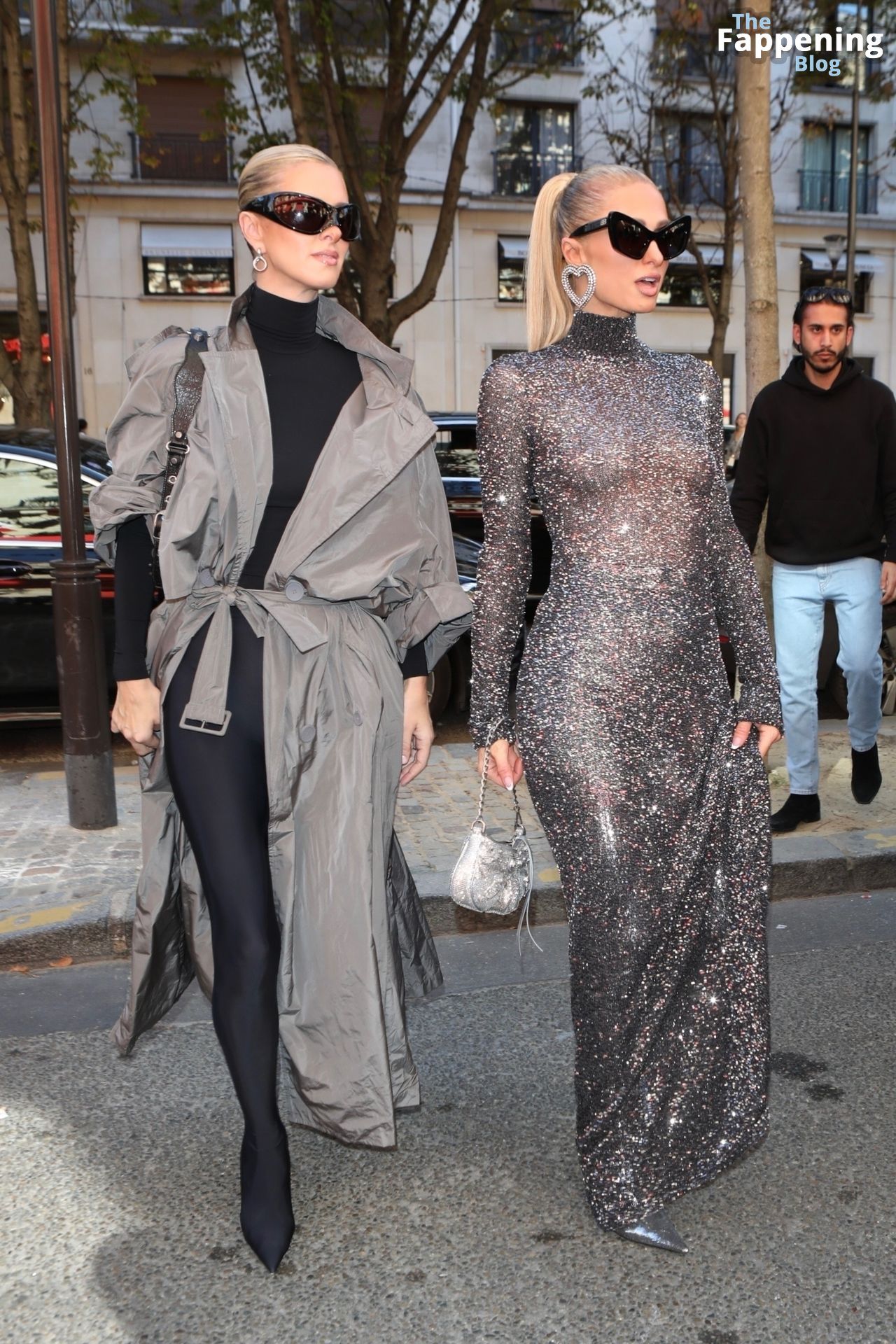 Стильные сестры, Пэрис Хилтон и Никки Хилтон Ротшильд, просто разрывают модную игру, выходя в Париже, Франция, после показа Balenciaga. Все оборачиваются направо и налево, без сомнений!