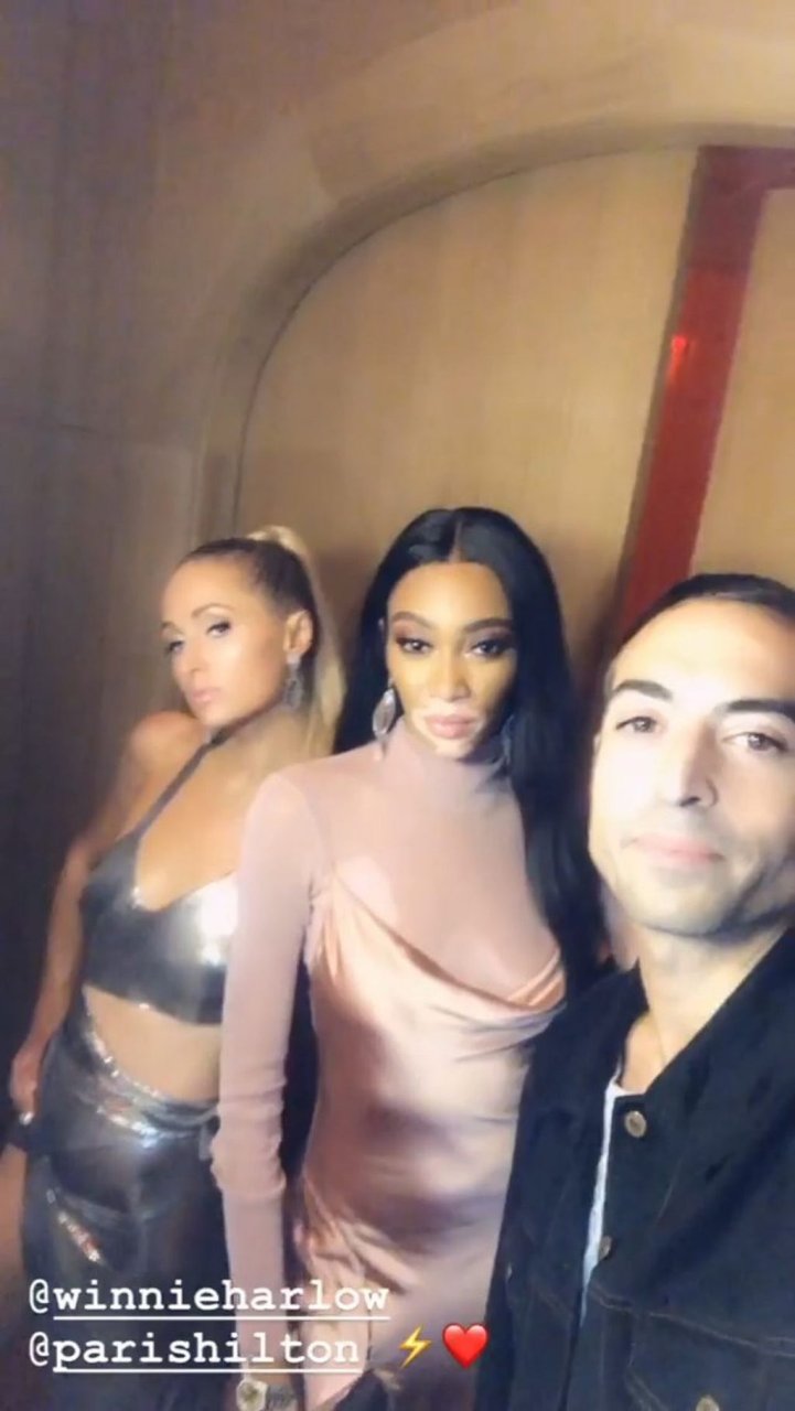 Пэрис Хилтон в металлическом платье на мероприятии по сотрудничеству в области красоты Ким Кардашьян и Винни Харлоу в L’Avenue в Saks Fifth Avenue в Нью-Йорке, 12.09.2019.