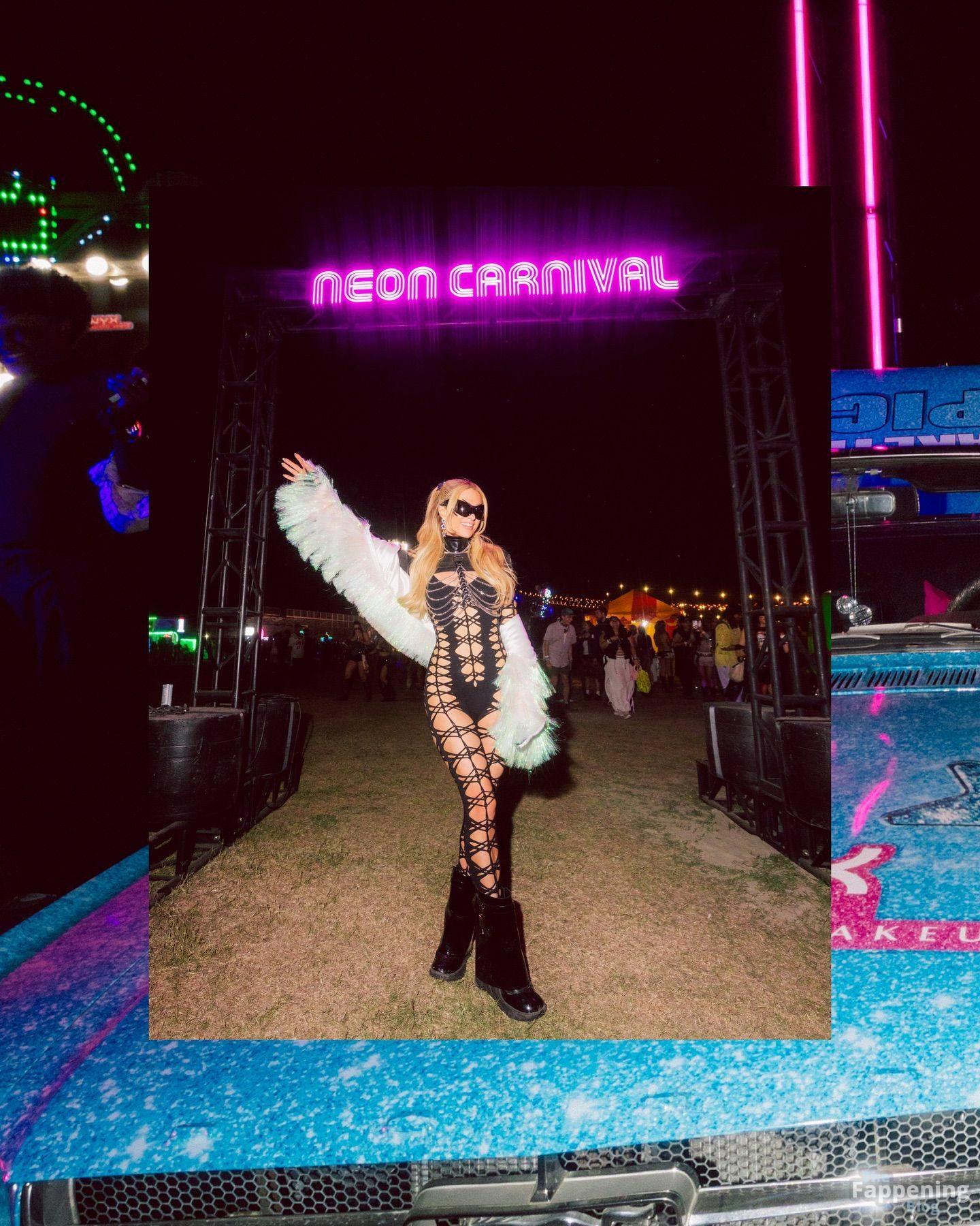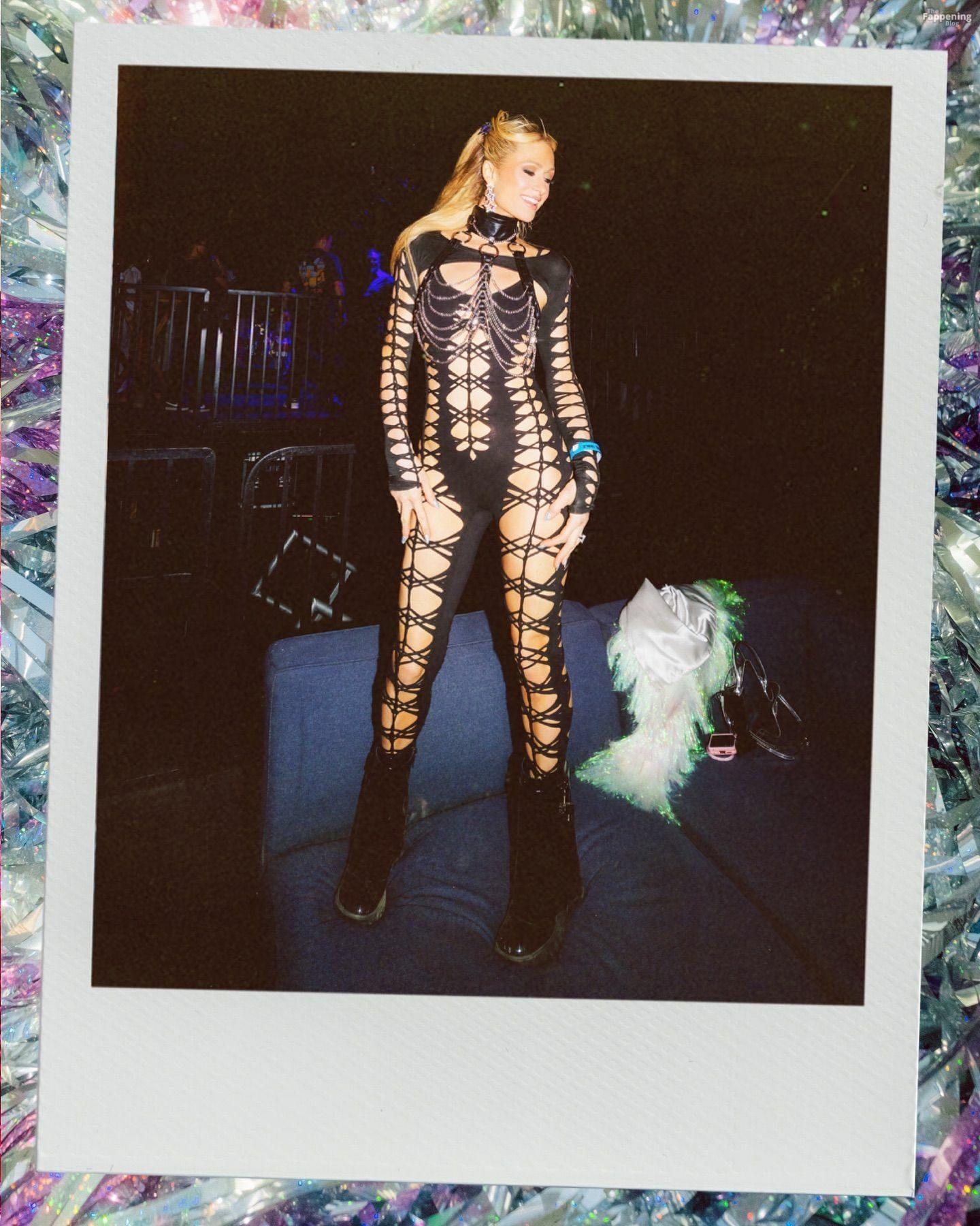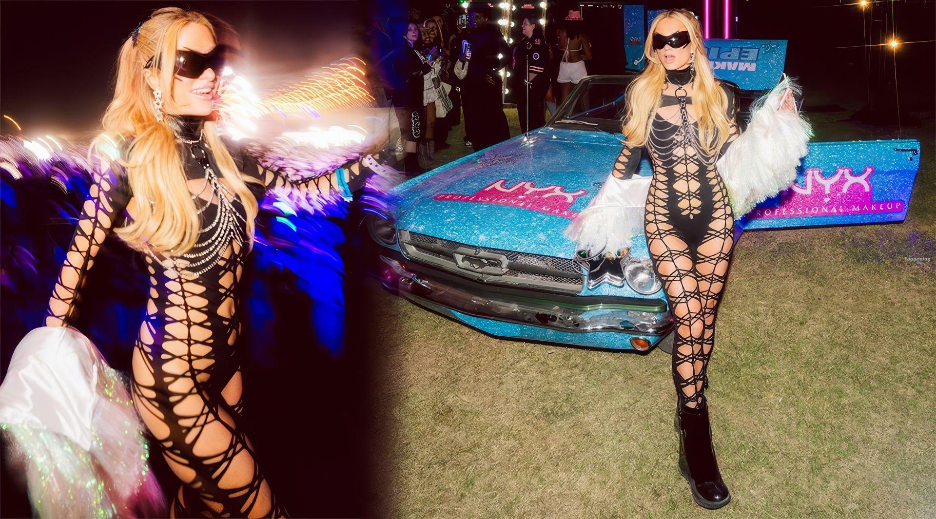 Пэрис Хилтон была на Neon Carnival фестиваля Coachella, блистая в бондажном боди с шнуровкой, которое подчеркивало её потрясающую фигуру.