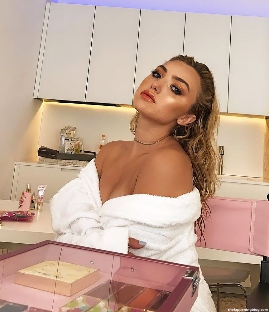 She posed in a sexy floral dress and a white jumpsuit! She also showed us her cleavage and her nice tits!