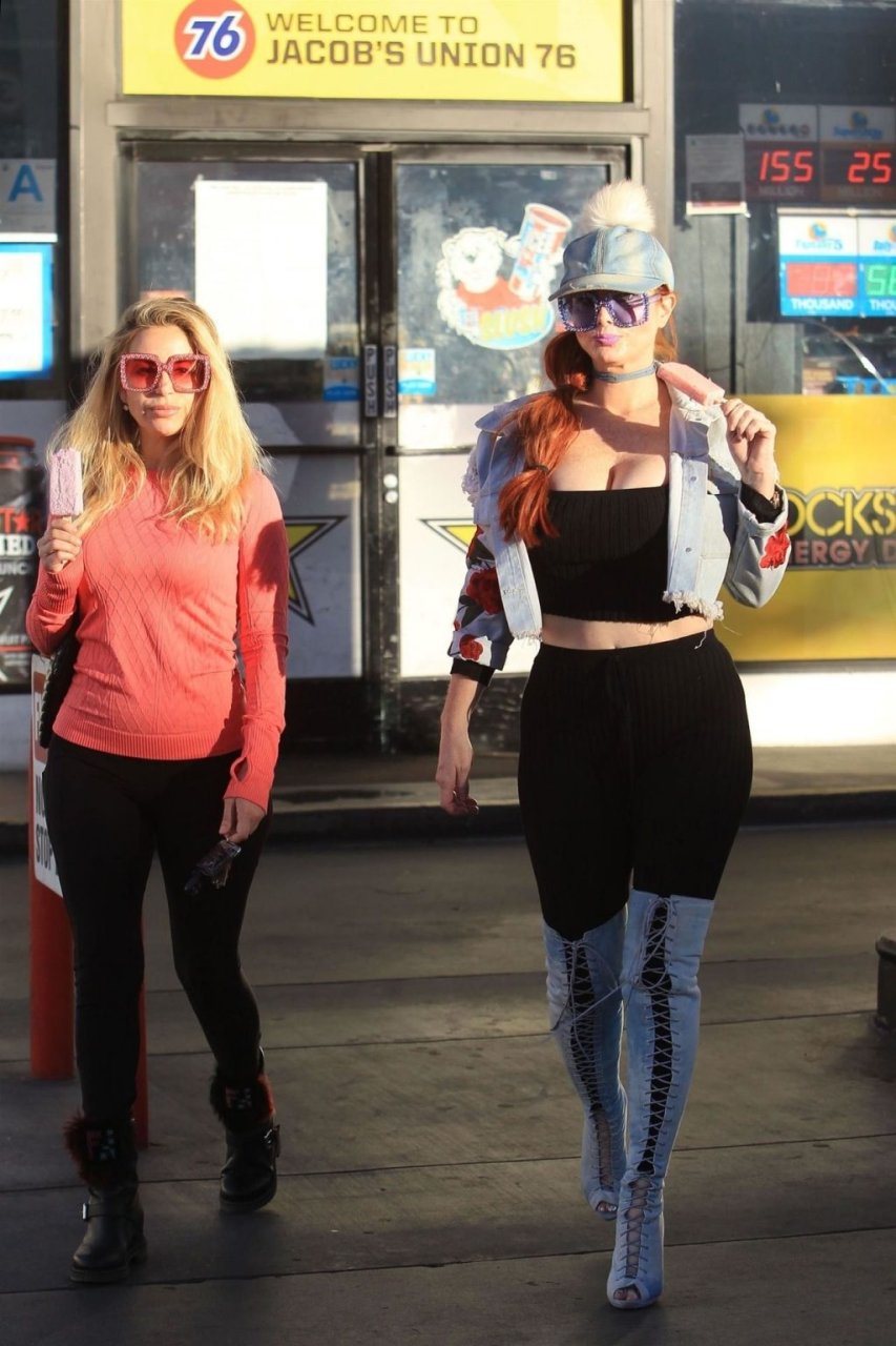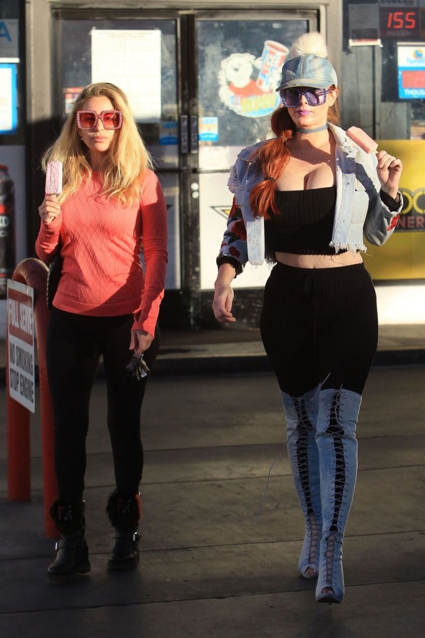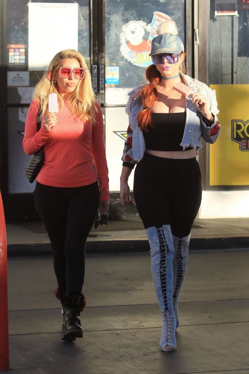 Фиби Прайс и Марсела Иглесиас зашли на заправку за мороженым в Лос-Анджелесе, 23.11.2018. Фиби, которая более десяти лет делает всё возможное, чтобы стать знаменитой, опустилась до нового низкого уровня, когда съела мороженое, которое уронила на землю во время заправки.