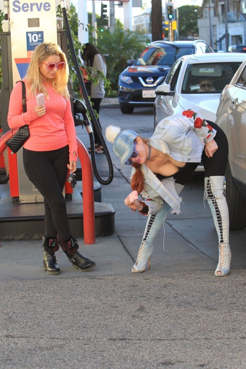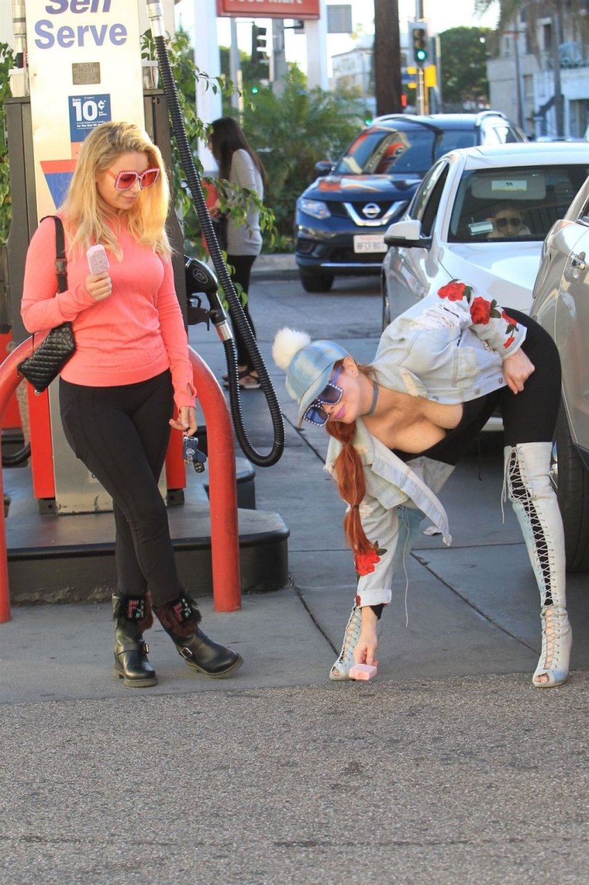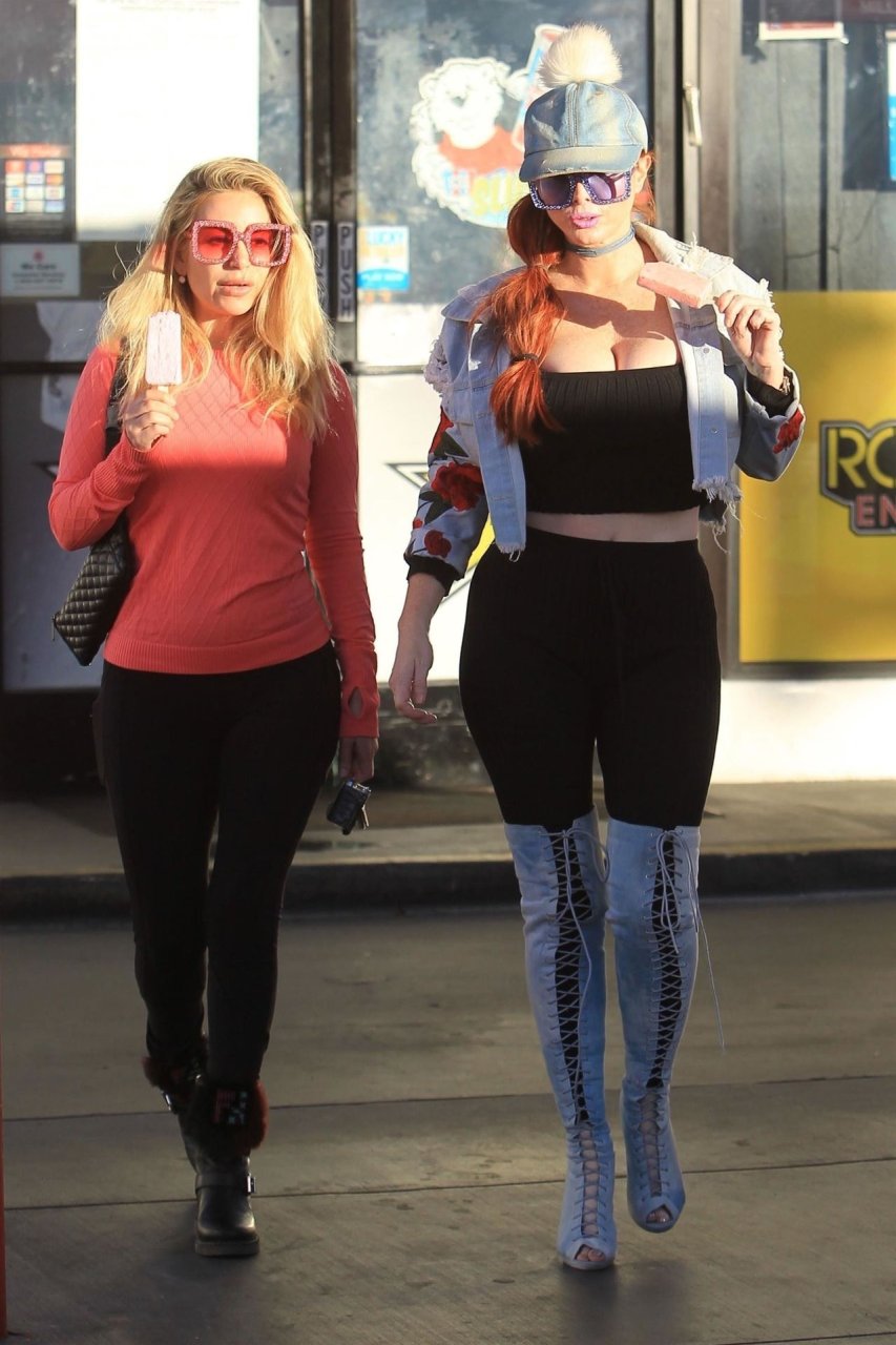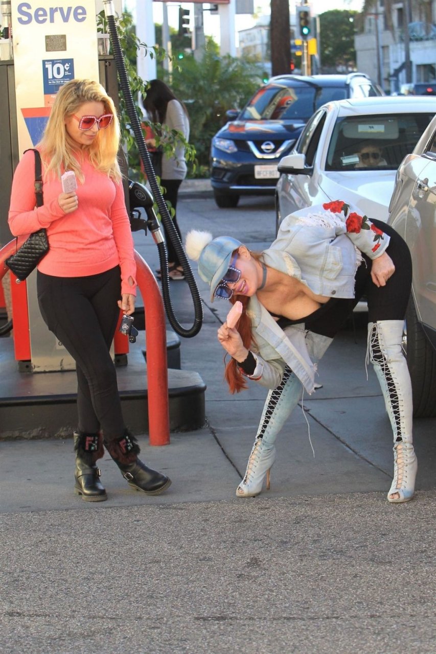 Фиби Прайс и Марсела Иглесиас зашли на заправку за мороженым в Лос-Анджелесе, 23.11.2018. Фиби, которая более десяти лет делает всё возможное, чтобы стать знаменитой, опустилась до нового низкого уровня, когда съела мороженое, которое уронила на землю во время заправки.