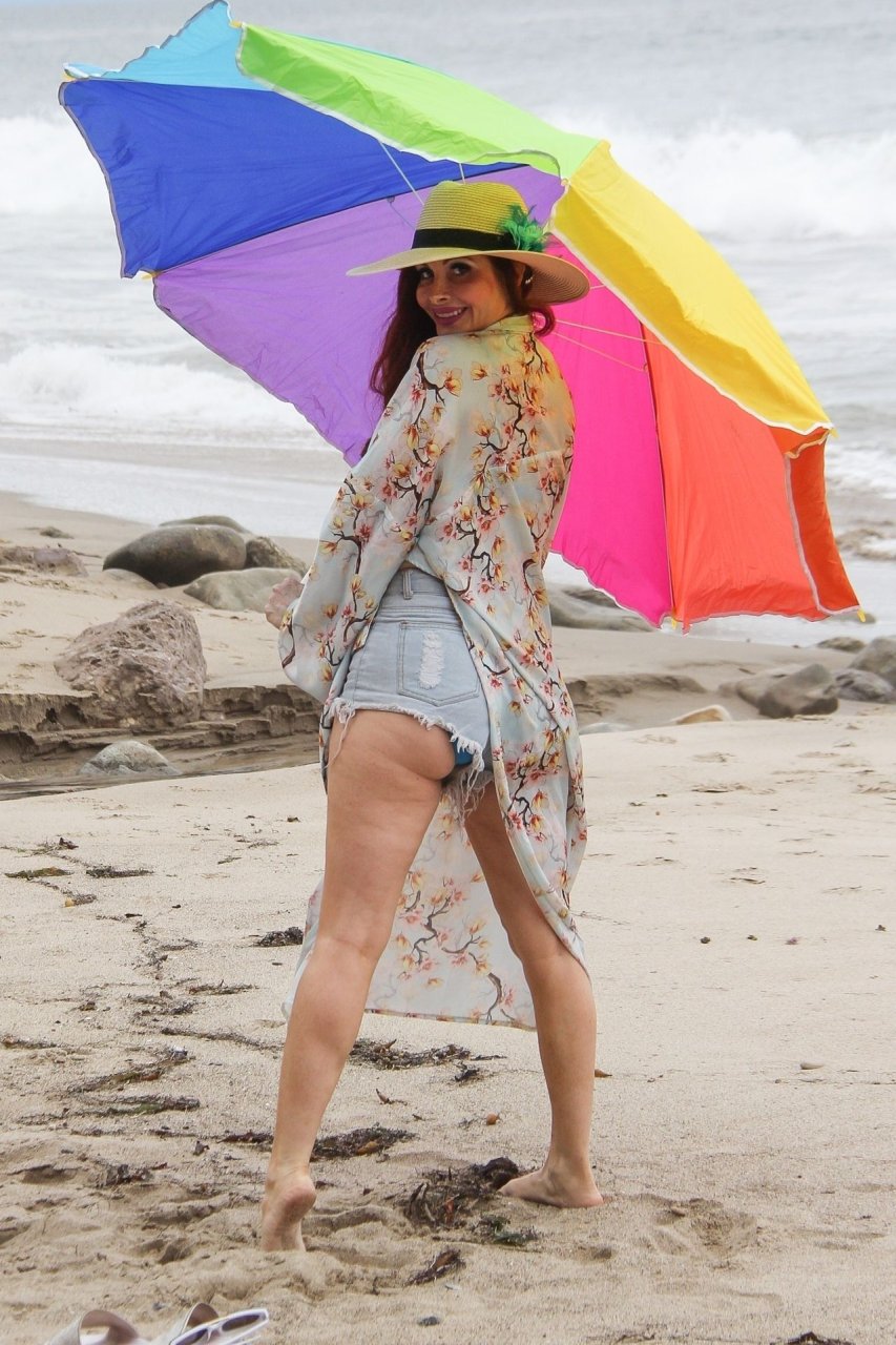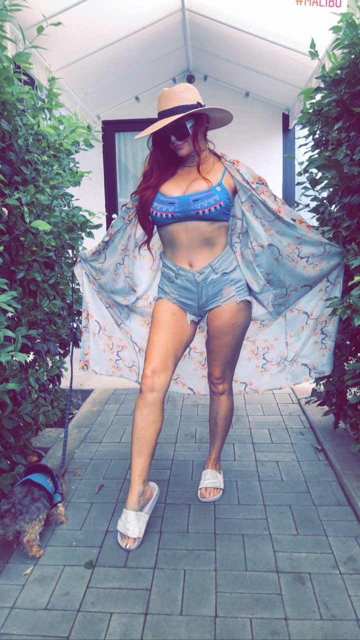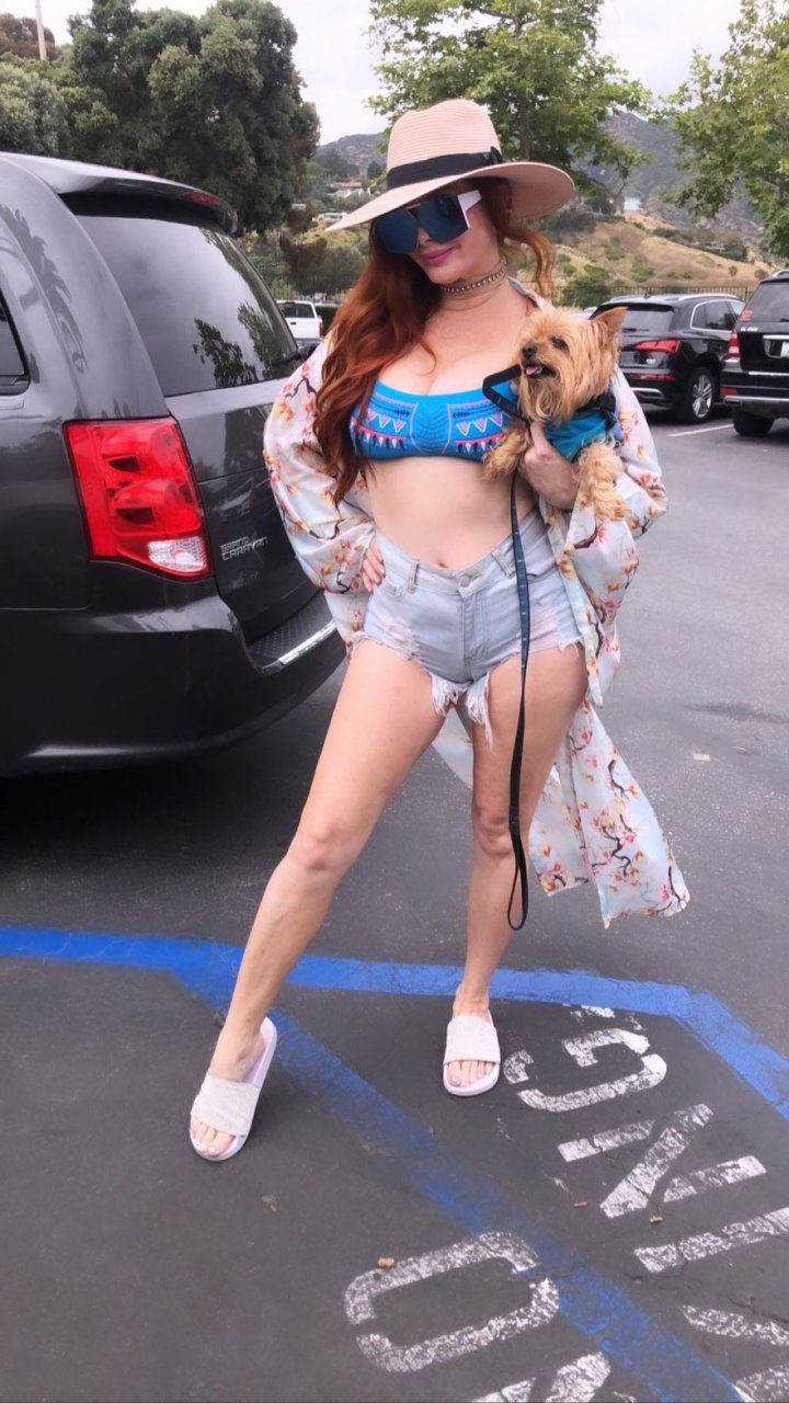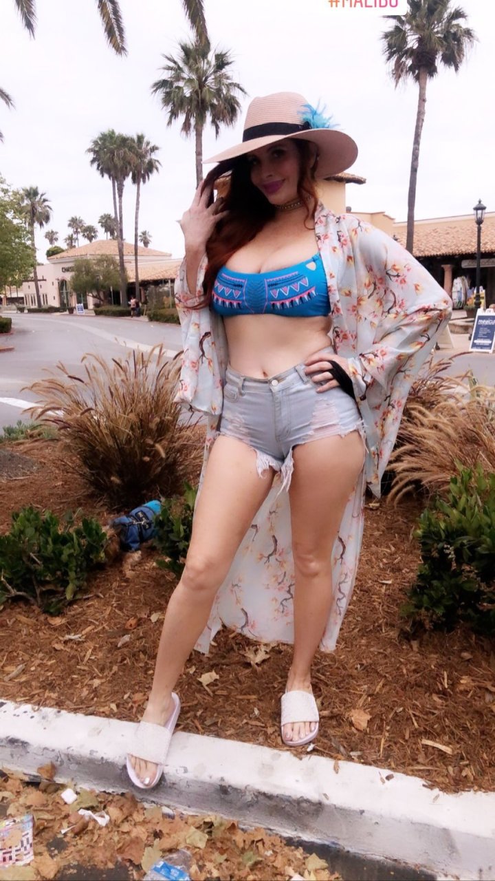 Фиби Прайс наслаждается летним днем на пляже в Малибу и позирует для фотографий в синем бикини, 21.06.2019.