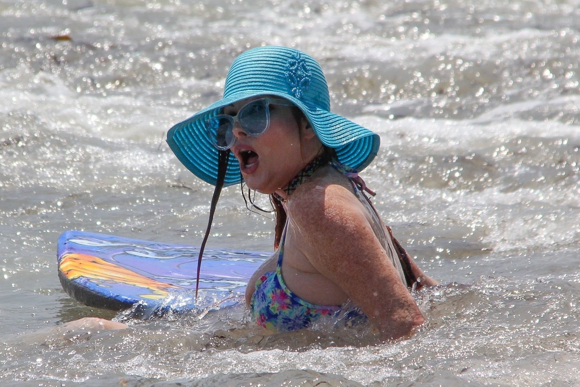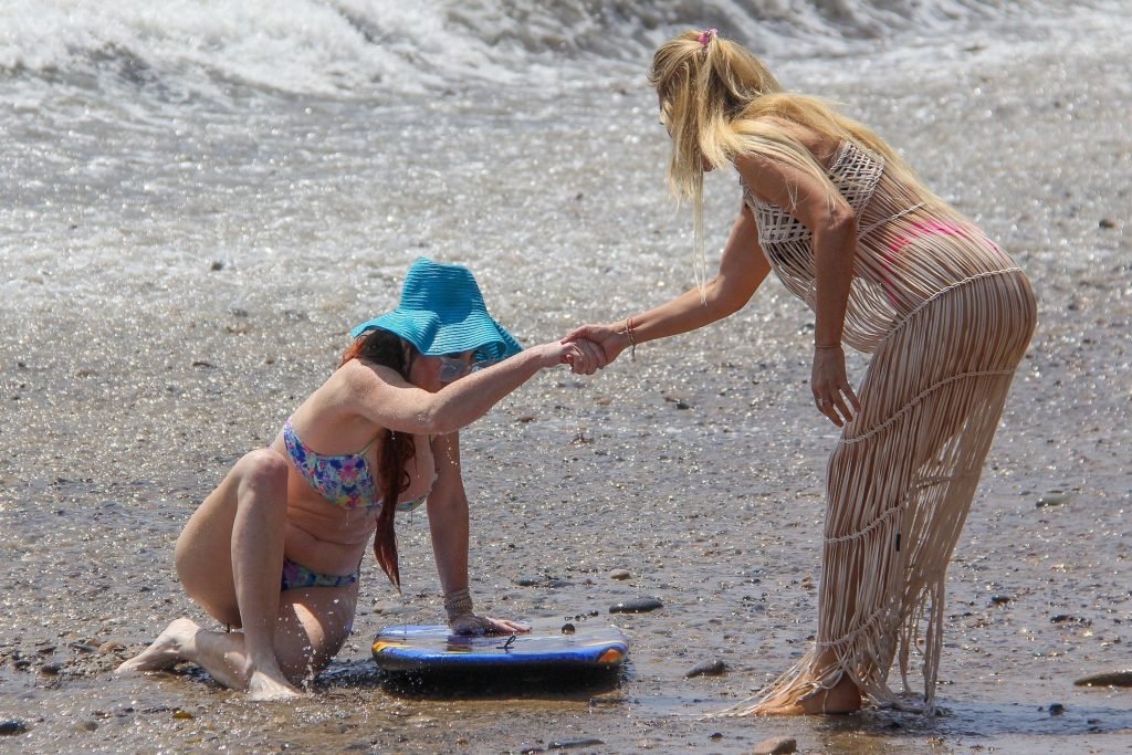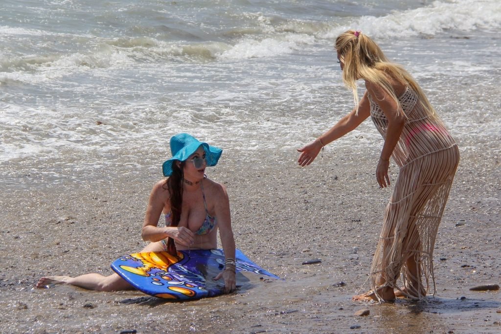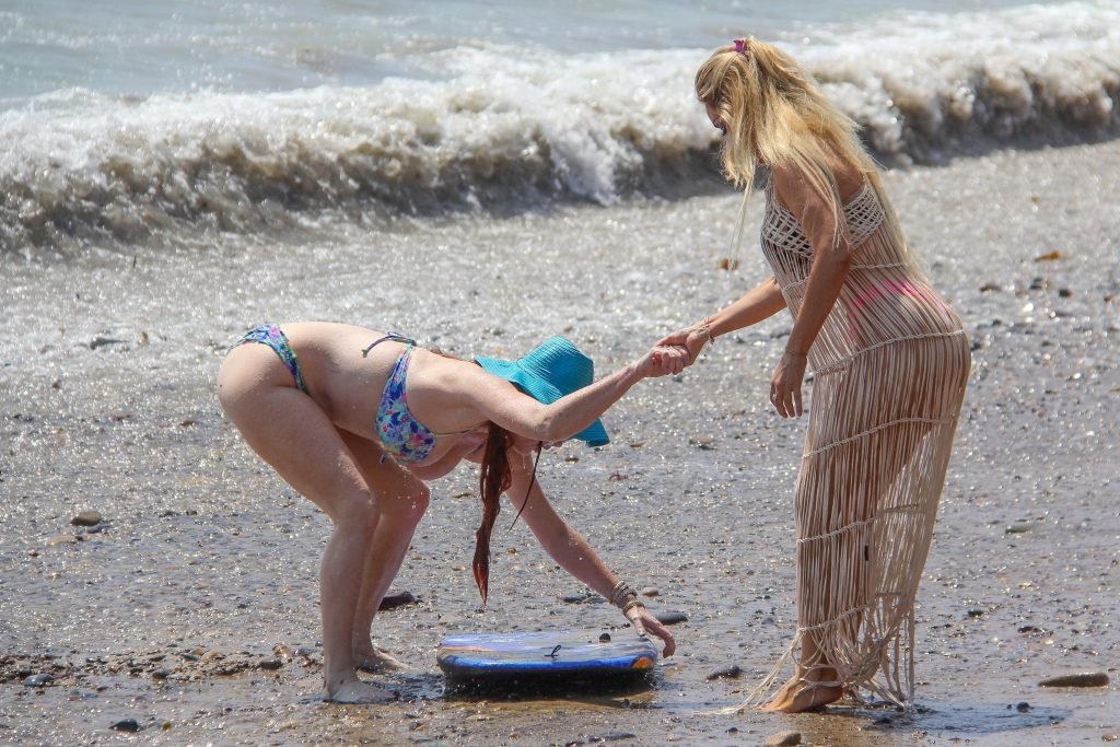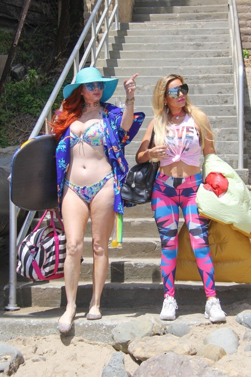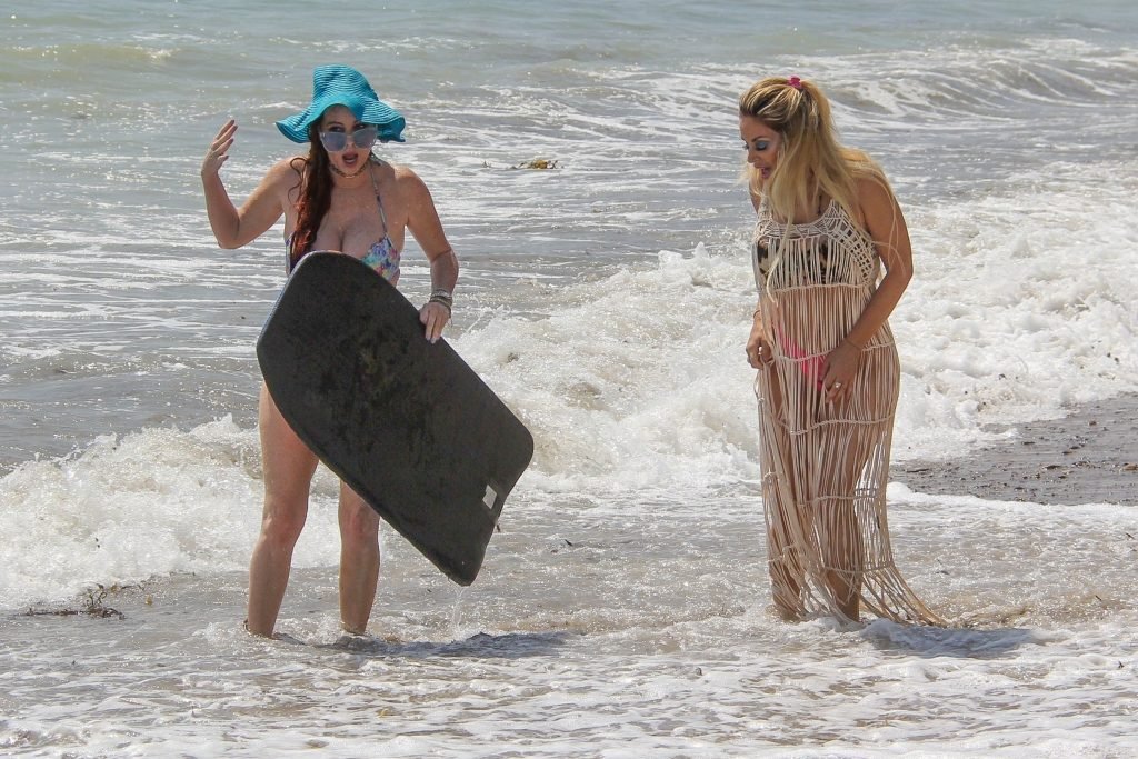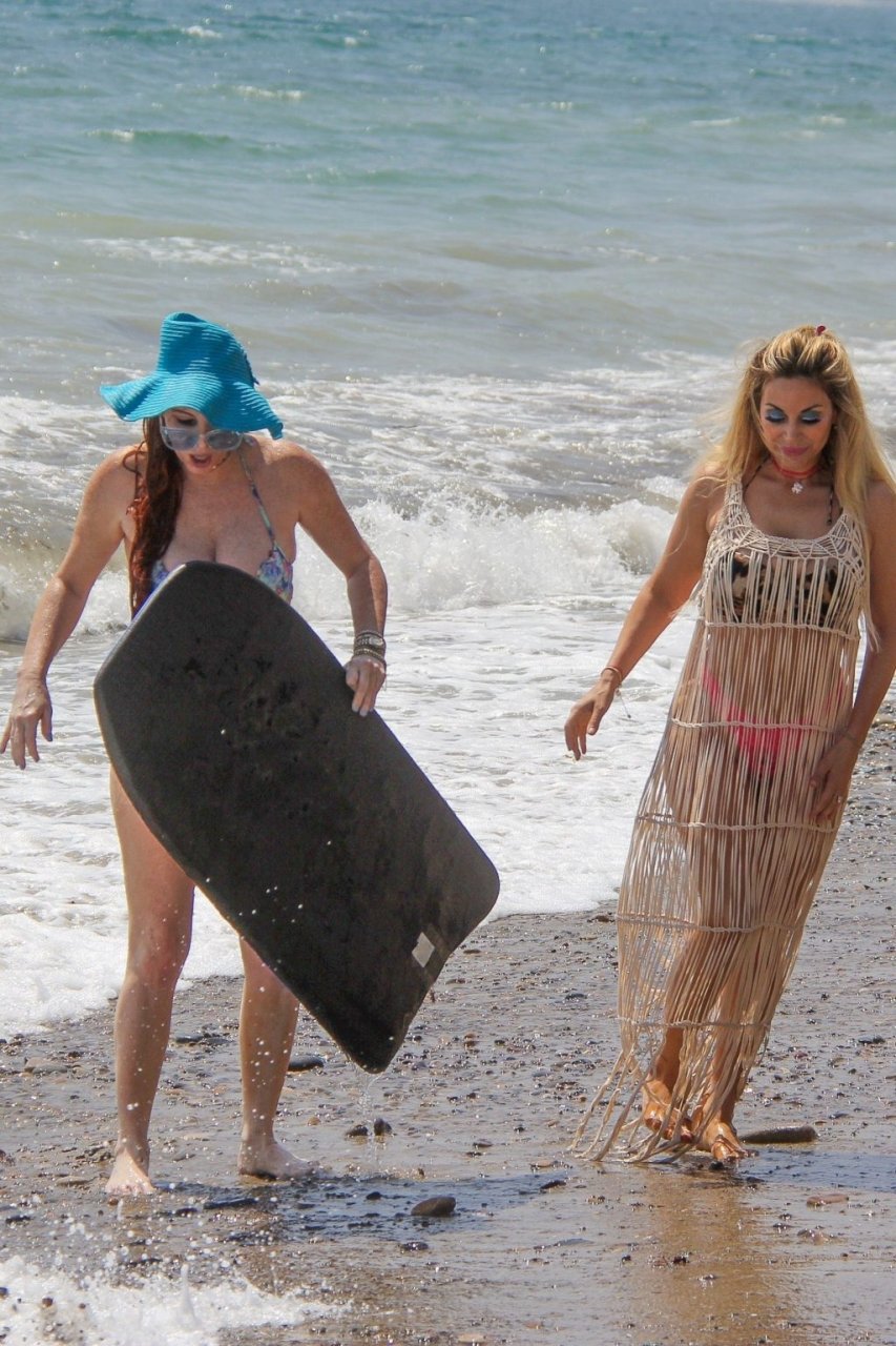 Пышногрудая MILF, бывшая актриса Фиби Прайс наслаждается остатком лета с хорошей подругой Марселой Иглесиас на пляже в Малибу, 21.08.2018.